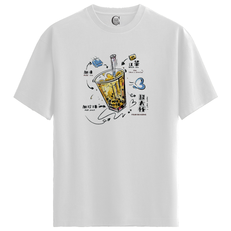 Sarı Şerit Temalı Sanatsal Baskılı Premium Erkek Tişört