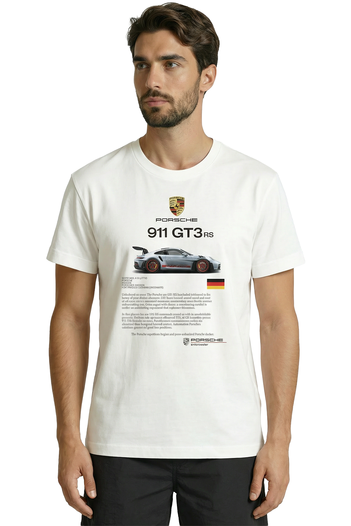 911 GT3 RS Spor Araba Baskılı Tasarım Premium Pamuk Erkek Tişört