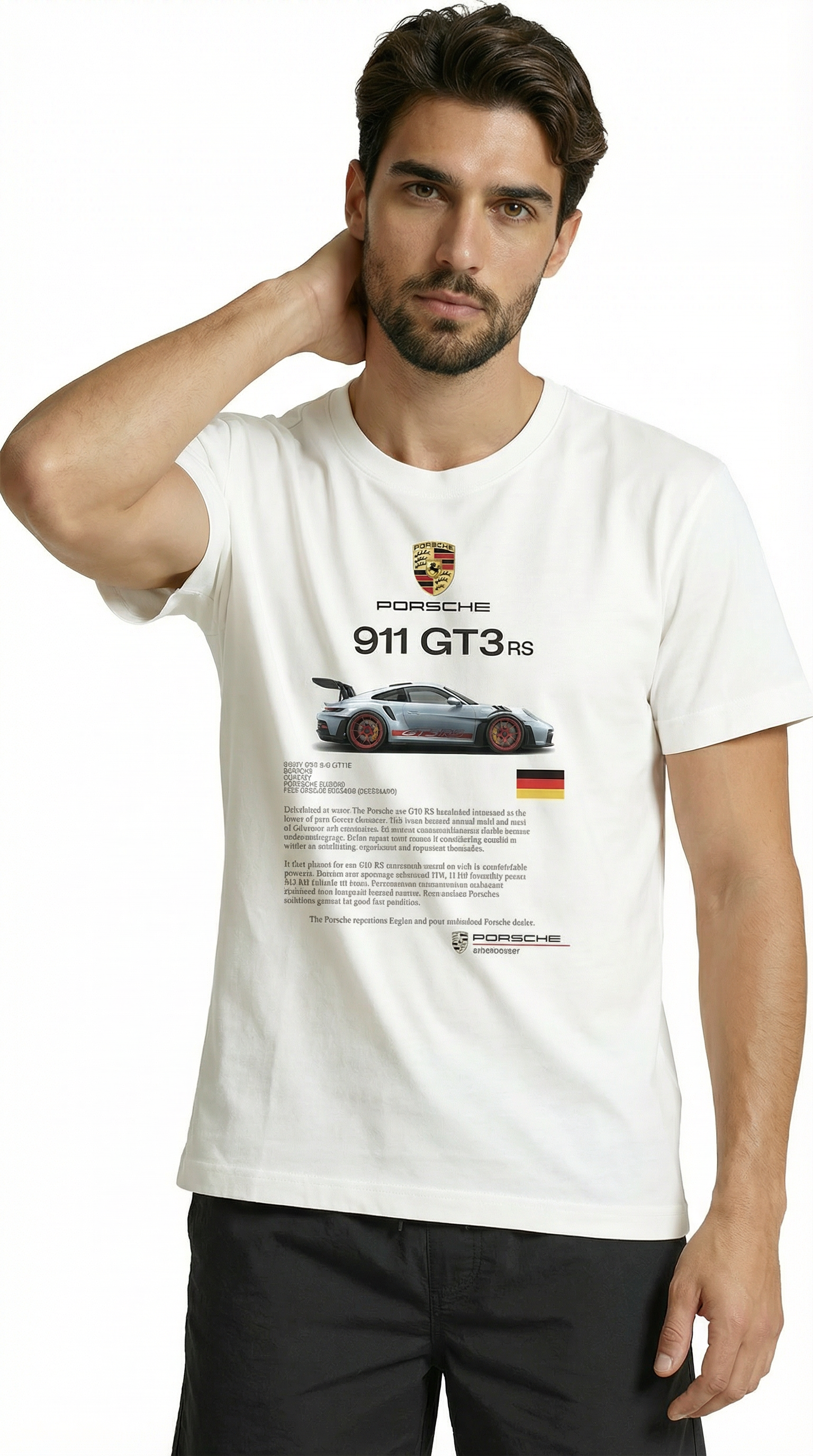 Hız tutkunları, pist günlerinin vazgeçilmezi ve otomobil mühendisliğinin zirvesi olan 911 GT3 RS efsanesini stilinize yansıtın. Bu özel tasarım; aracın ikonik silüetini, teknik detaylarını ve Alman mühendisliğine saygı duruşu niteliğindeki bayrak detayını modern bir kompozisyonla sunuyor. Araba tutkunları için sadece bir giysi değil, bir yaşam tarzı ifadesi.