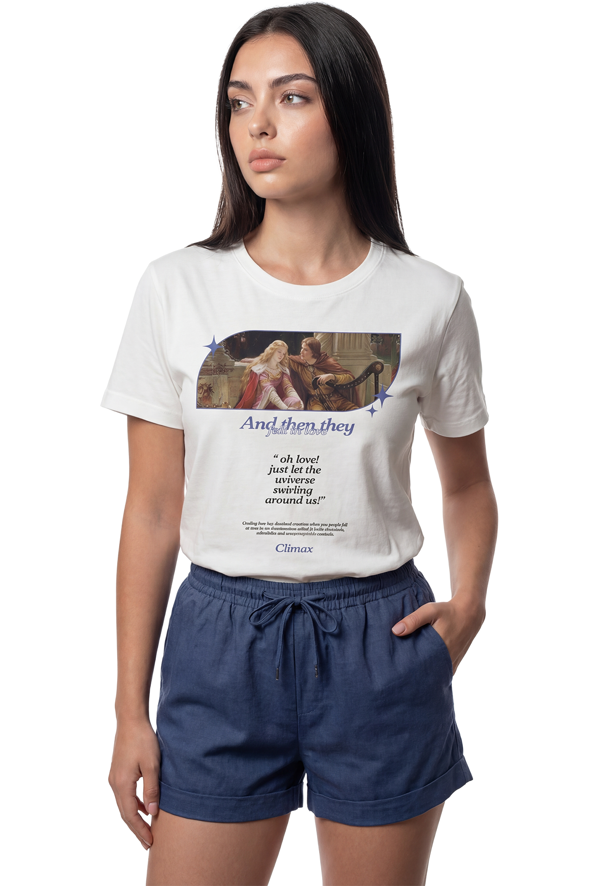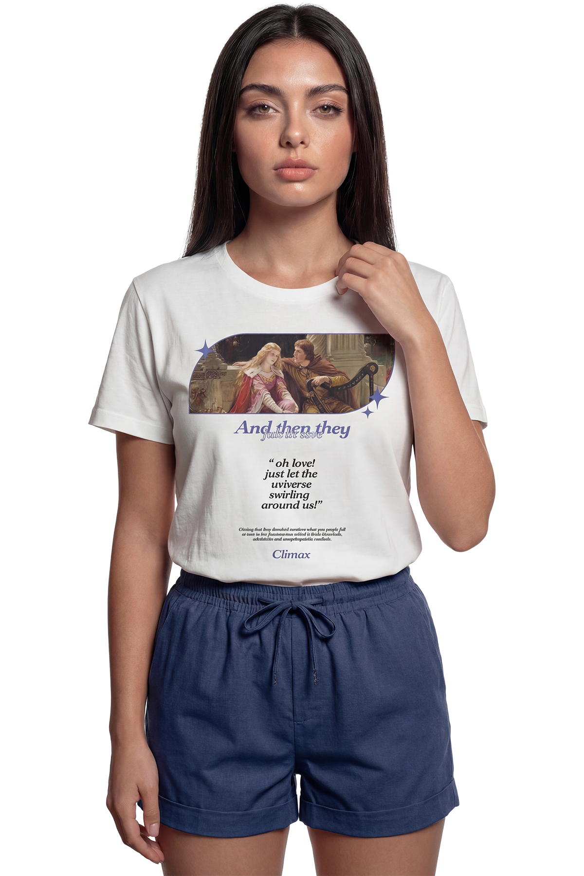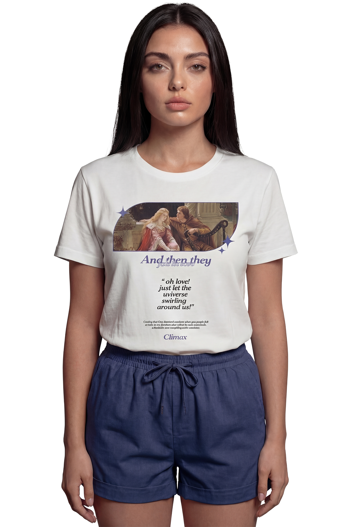 ''And Then They Fell In Love'' Sanatsal Baskılı %100 Pamuk Rahat Kesim Premium Kadın Tişört