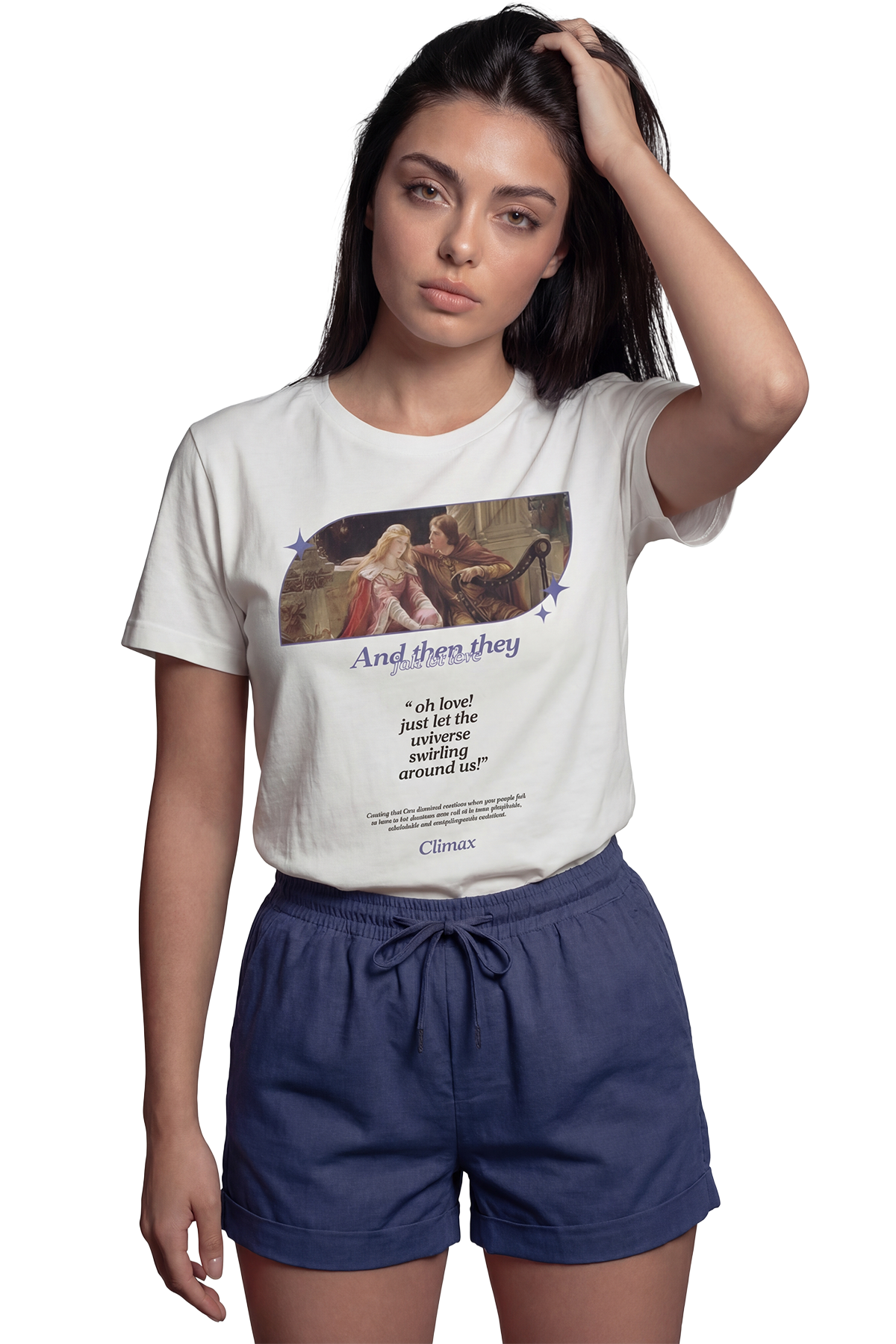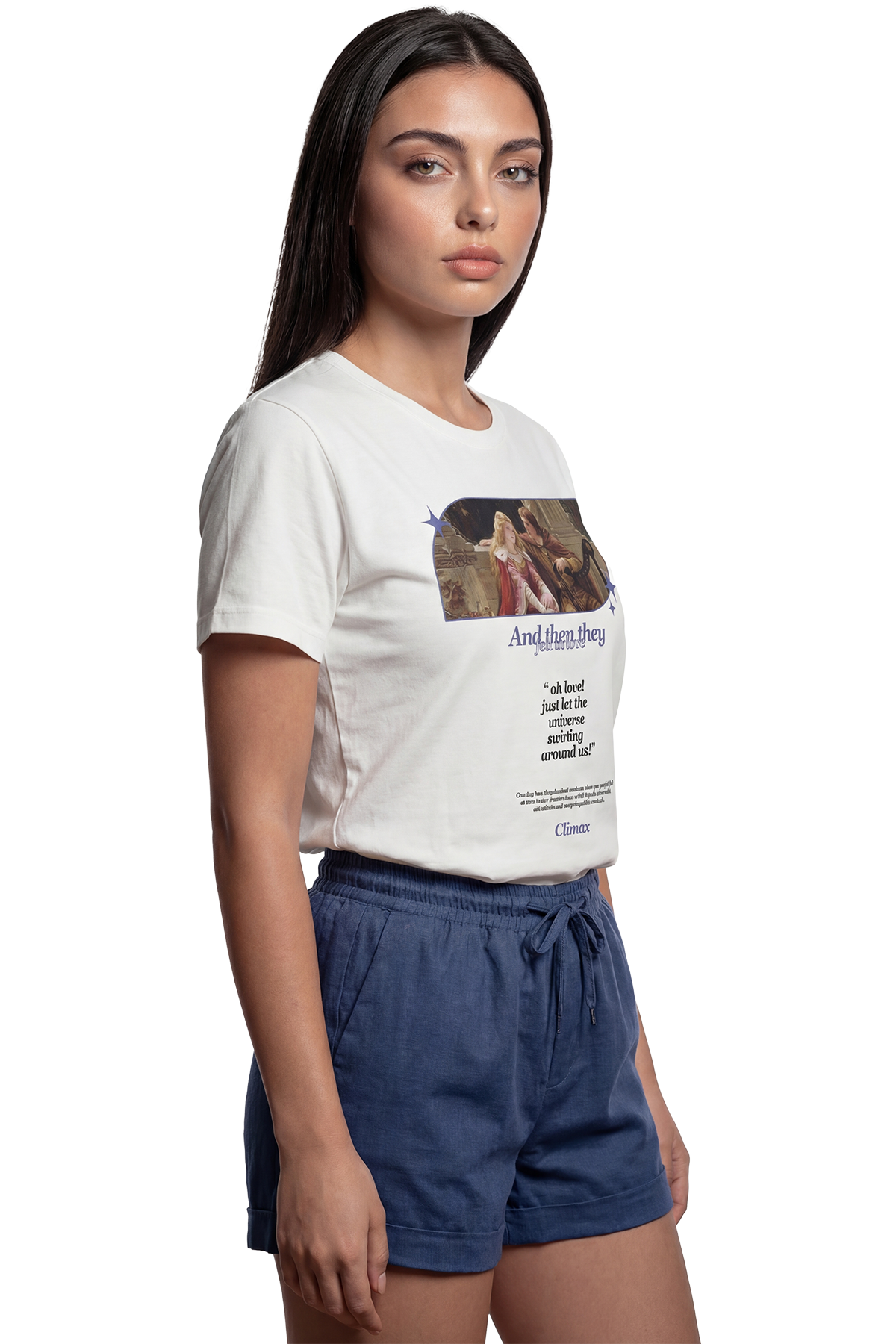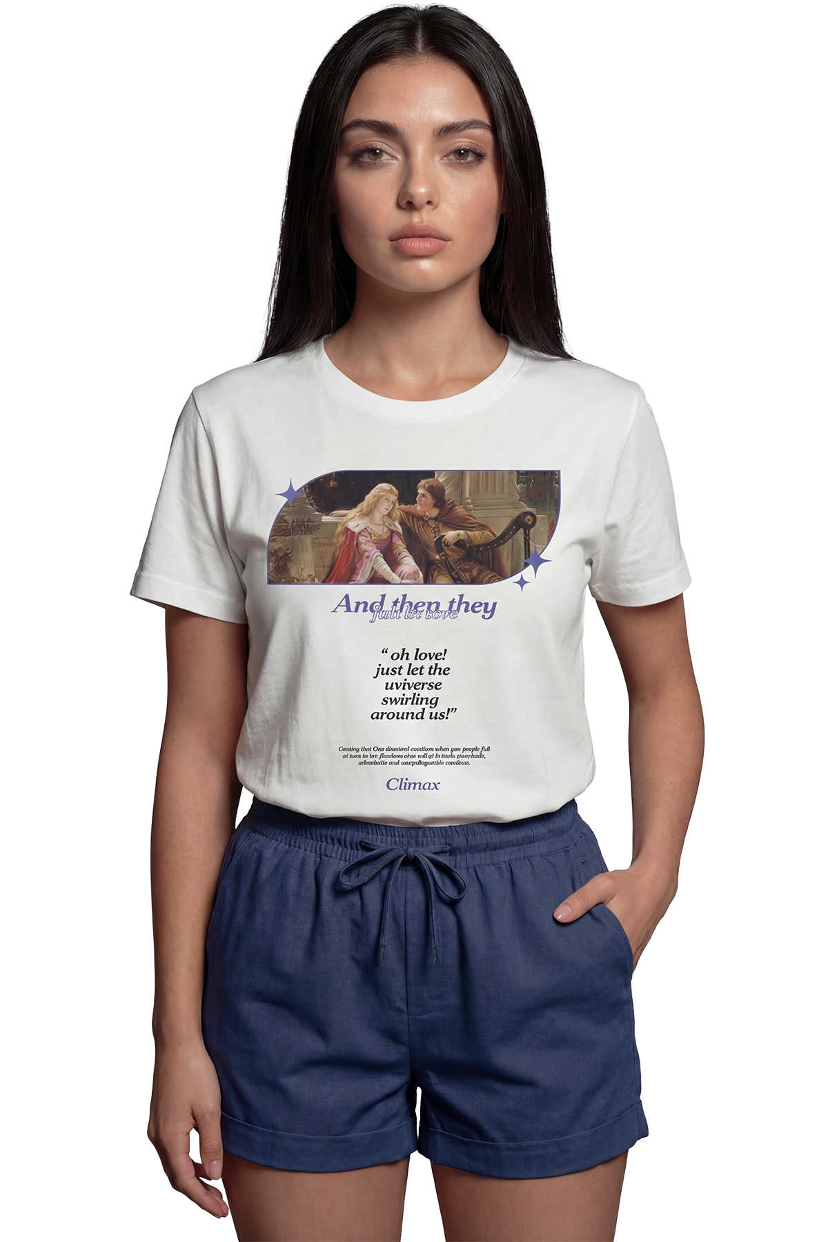''And Then They Fell In Love'' Sanatsal Baskılı %100 Pamuk Rahat Kesim Premium Kadın Tişört