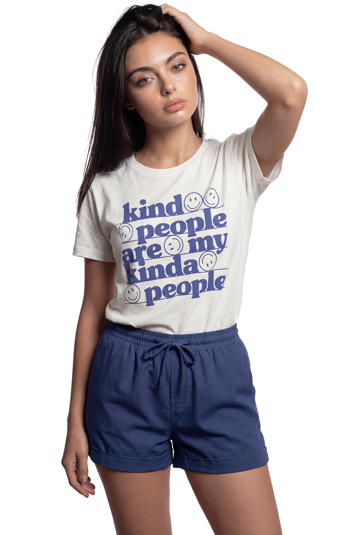 ''Kind People Are My Kinda People'' Yazılı Baskılı %100 Pamuk Rahat Kesim Premium Kadın Tişört