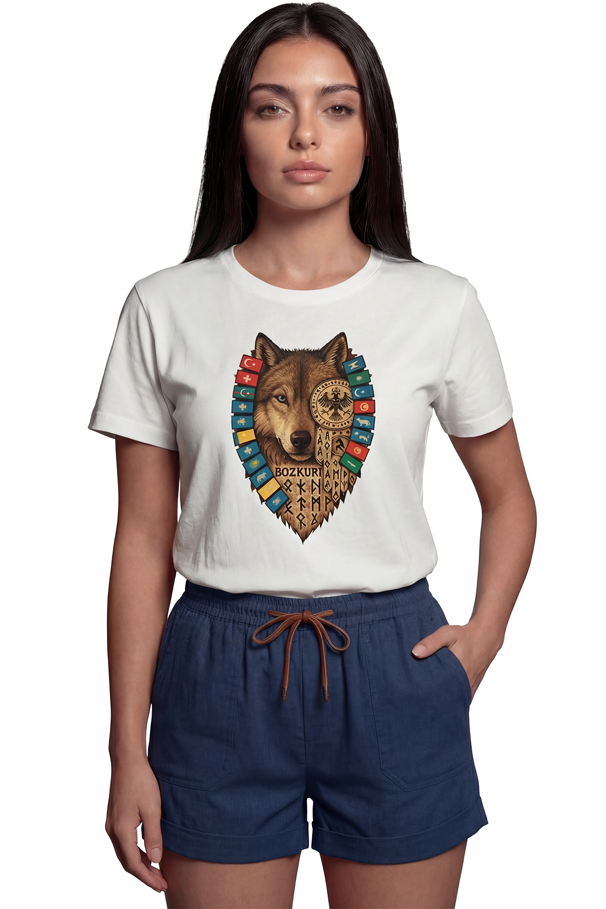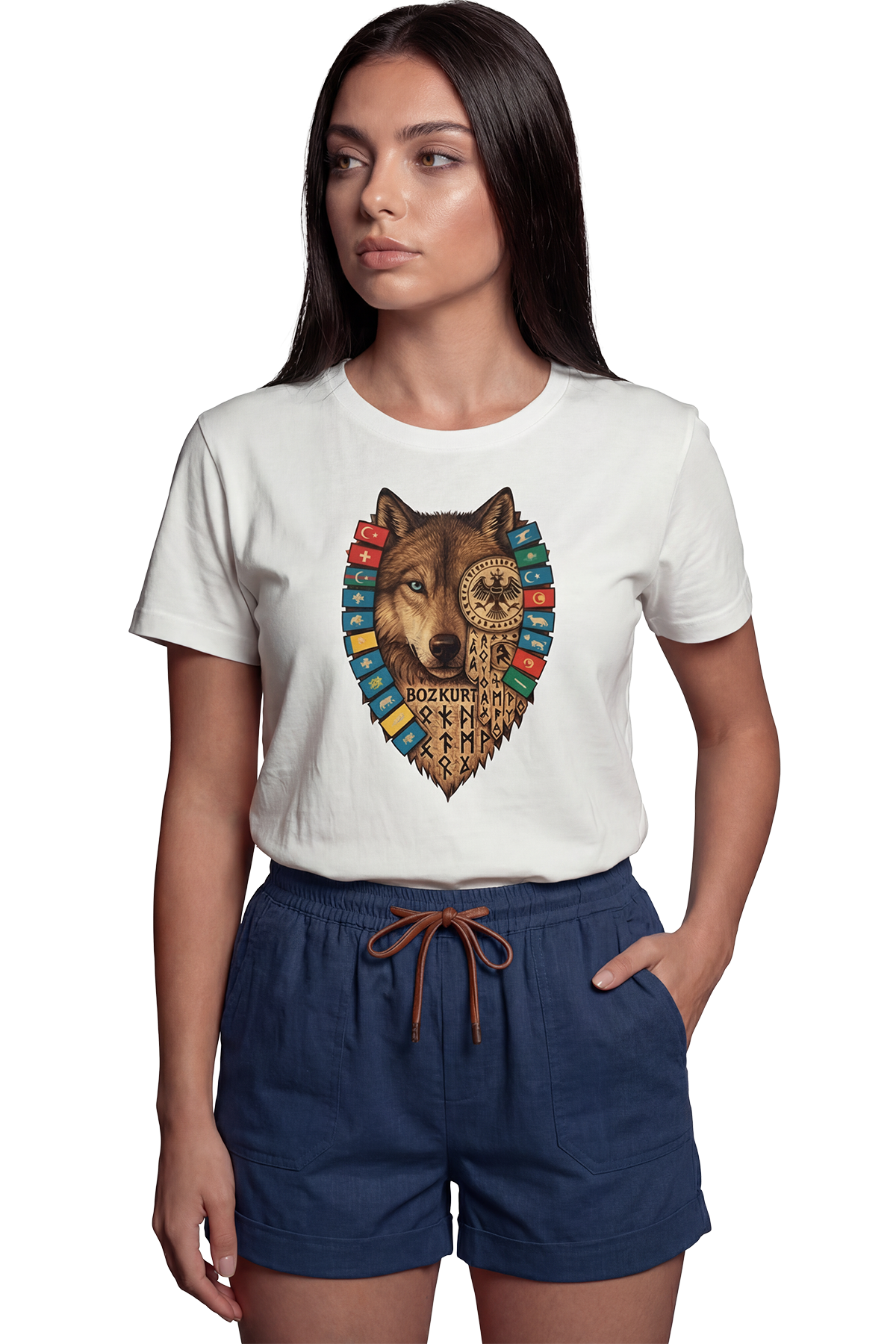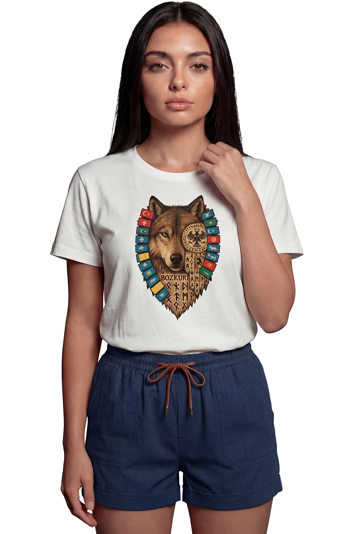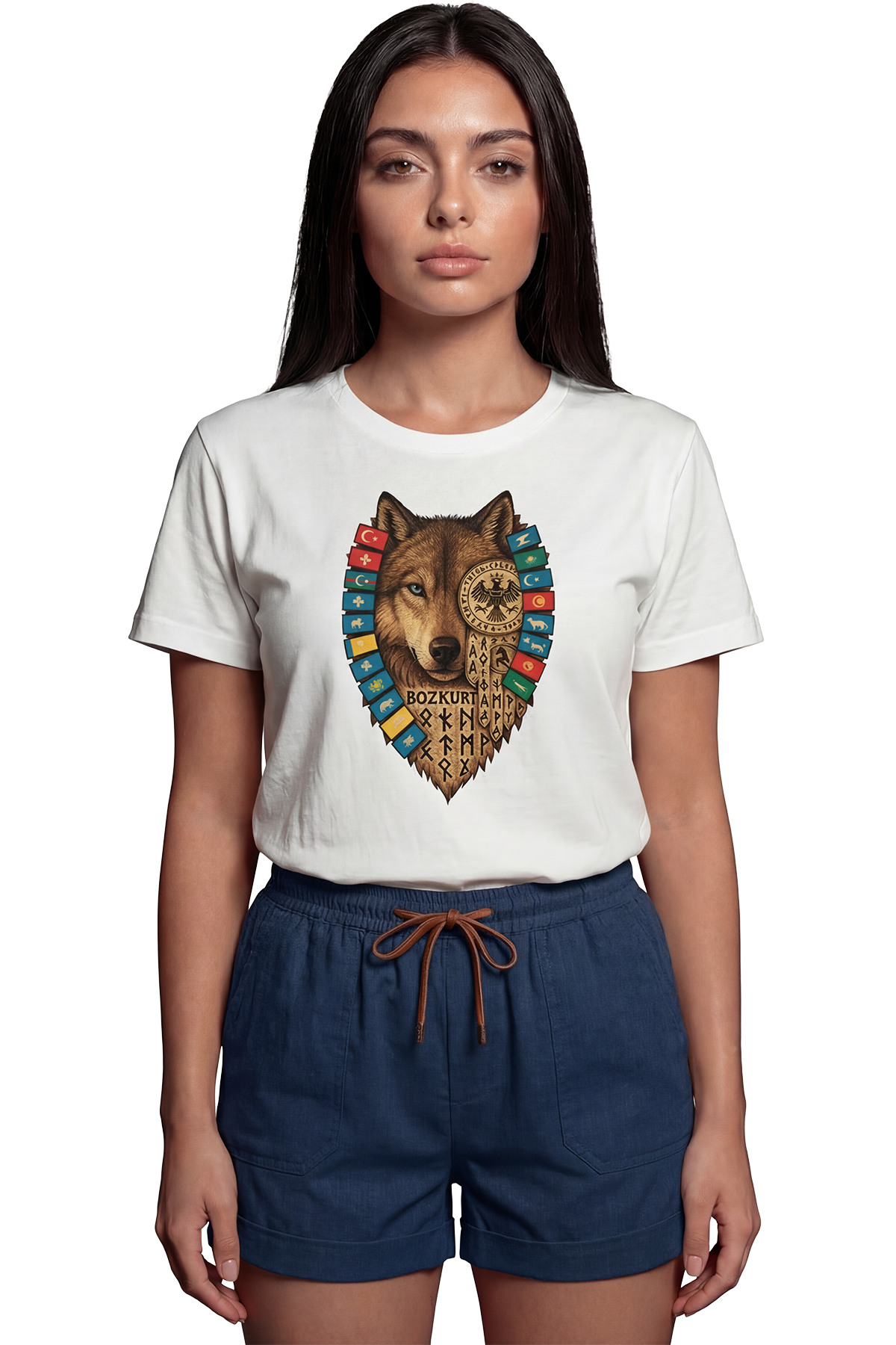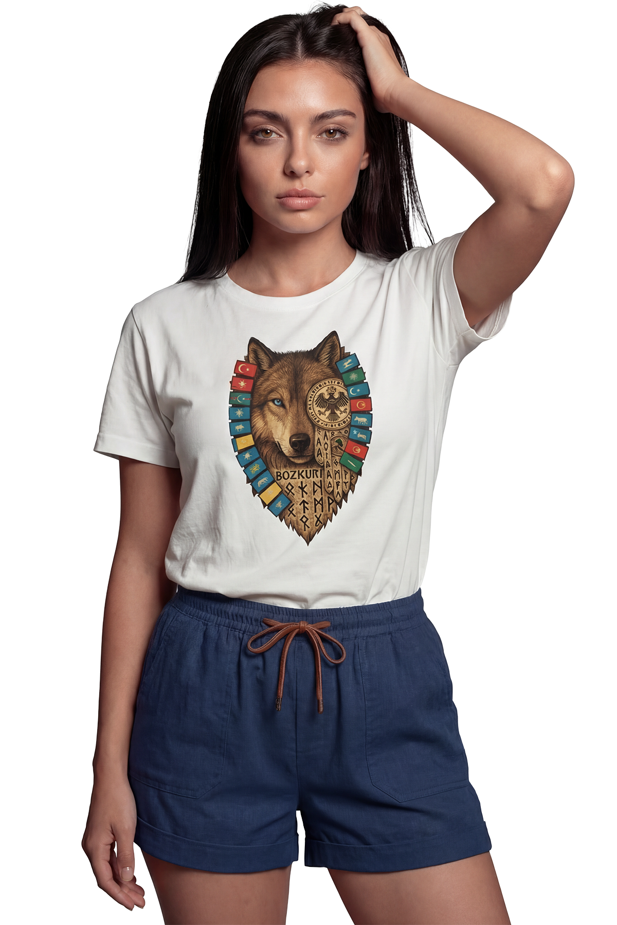 ''Bozkurt ve Türk Devletleri'' Armalı Baskılı %100 Pamuk Rahat Kesim Premium Kadın Tişört