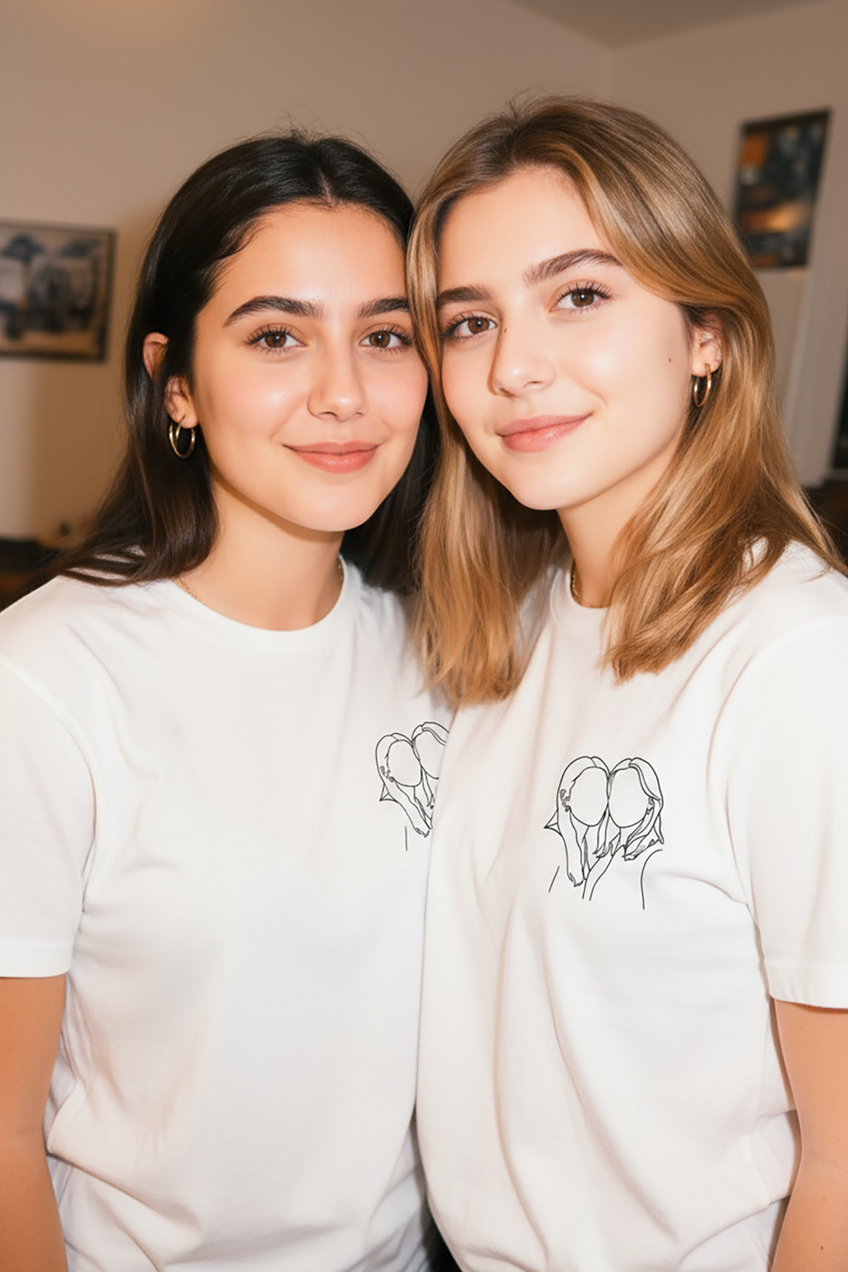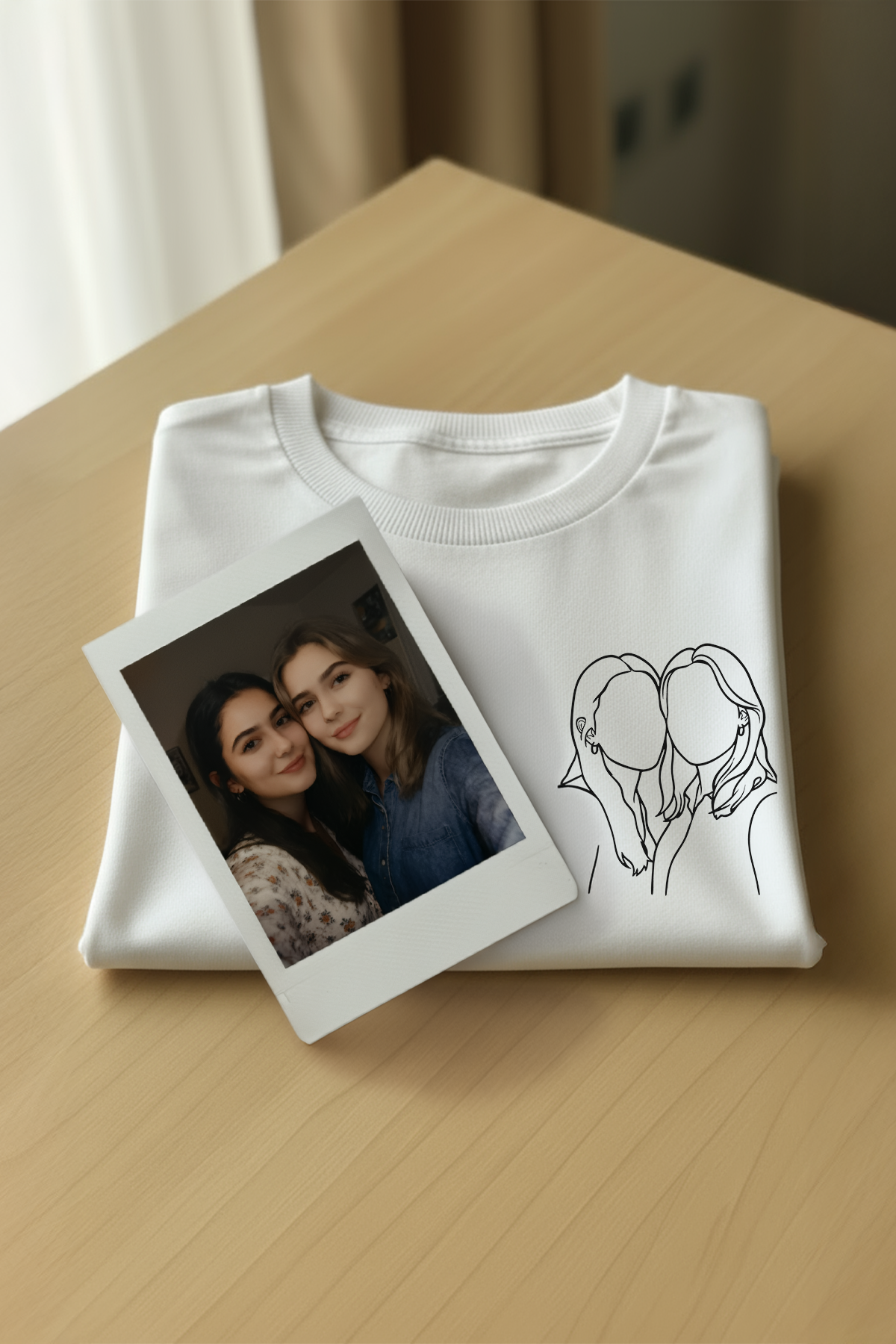 Çizgisel Kişiye Özel Fotoğraf Çizim Baskılı T-Shirt