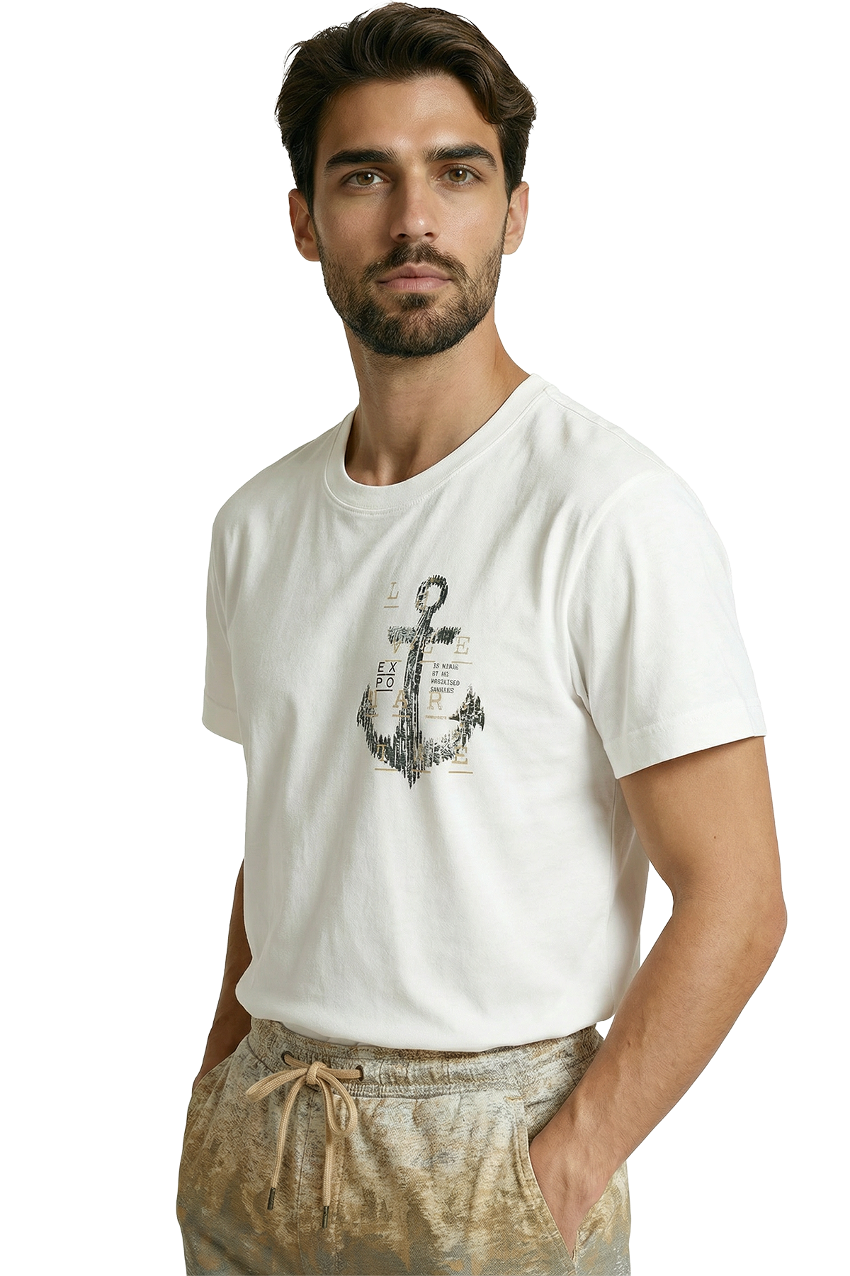 Sanatsal Baskı (DTG): "Yapıştırma" hissi veren naylon baskıları unutun. Kullandığımız son teknoloji DTG (Direct to Garment) yöntemiyle boya, kumaş liflerine işler. Bu sayede, eskitme efektli çapa çiziminin dokusu kumaşla bütünleşir, baskı hava alır ve plastik hissi vermez.