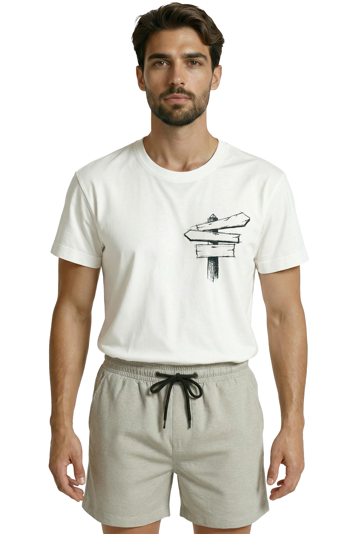 Her yol ayrımı yeni bir hikayenin başlangıcıdır. Maceracı ruhlar ve gezginler için tasarlanan bu minimalist tişört; göğüs kısmındaki eskiz "Ahşap Yön Tabelası" baskısı ile bilinmeze duyulan merakı simgeliyor. Nereye gideceğinize rüzgarın karar verdiği o özgür anları anımsatan bu tasarım, sade çizgileriyle hem şehirde hem de doğada stilinizi tamamlayacak.