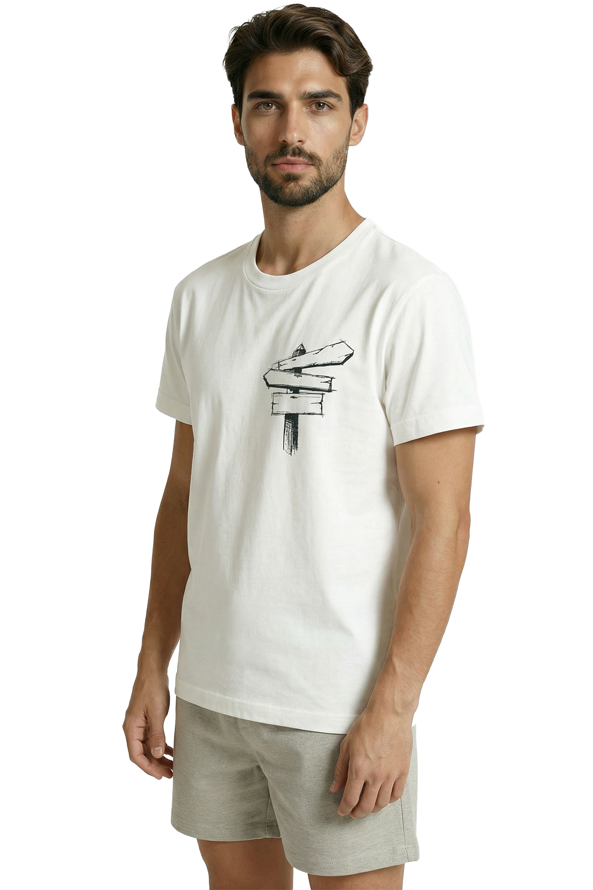 Eskiz Ahşap Yön Tabelası Baskılı Minimalist Tasarım Premium Erkek Tişört