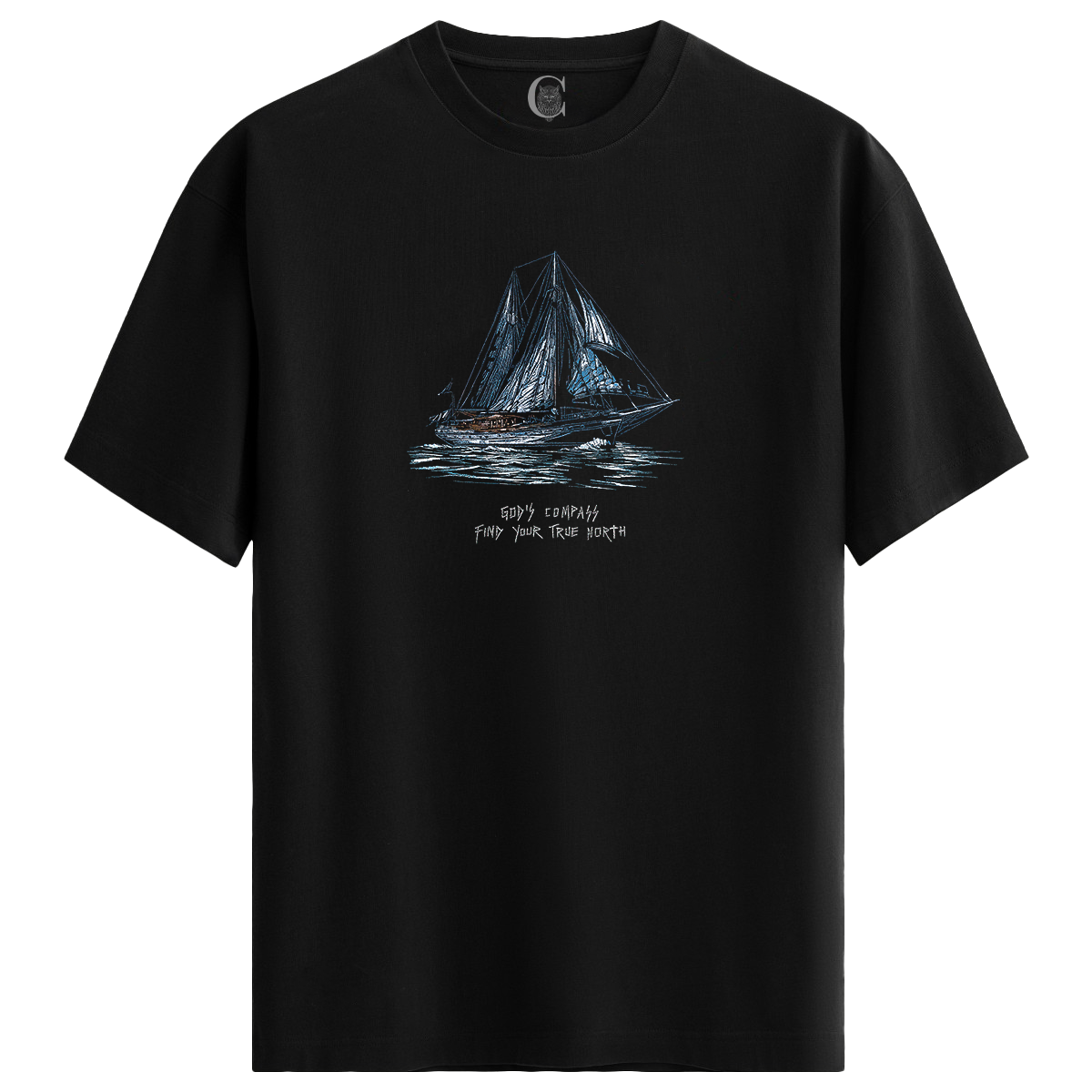 God's Compass %100 Pamuklu Kadın Siyah Tişört - Premium Quality