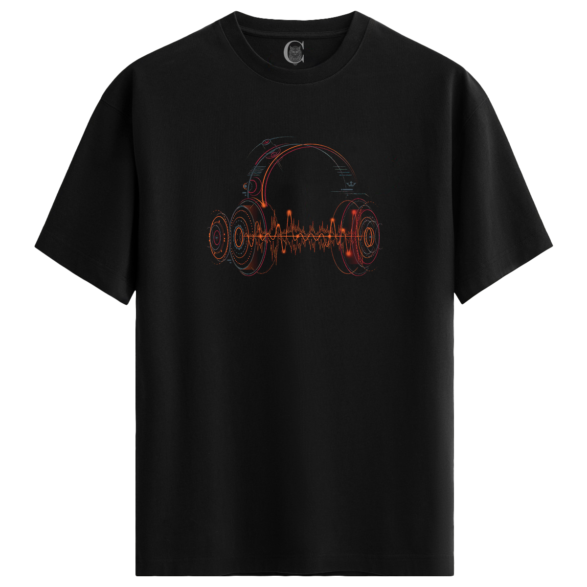 Headphones Lines %100 Pamuklu Kadın Siyah Tişört - Premium Quality