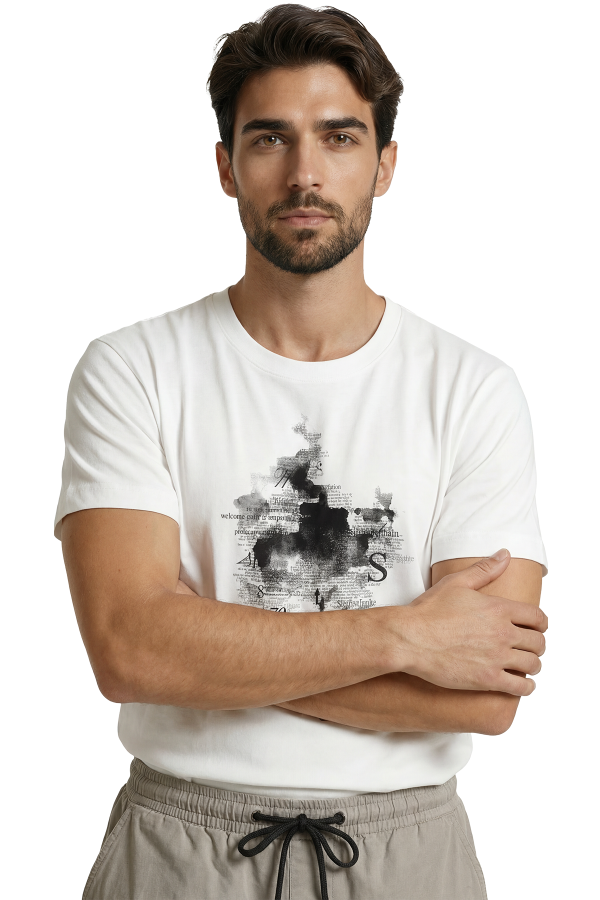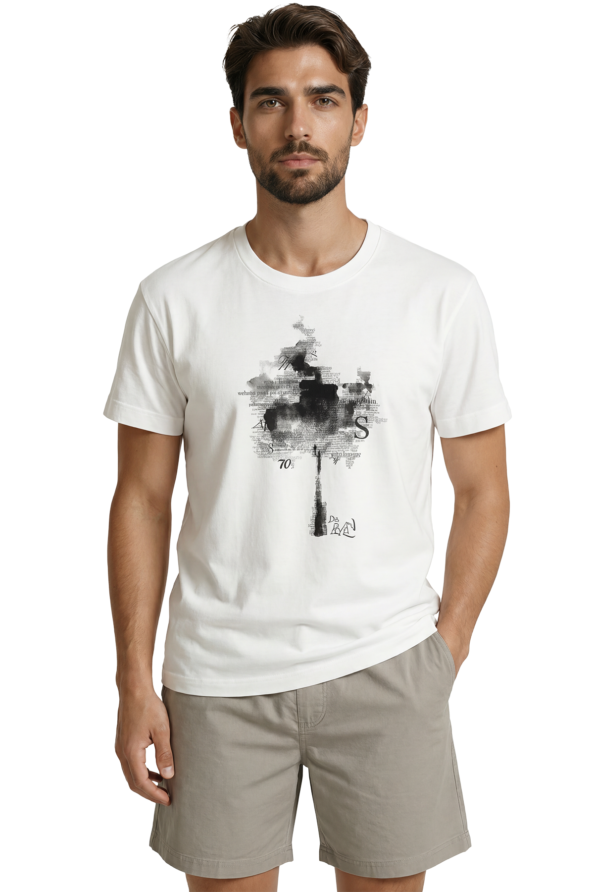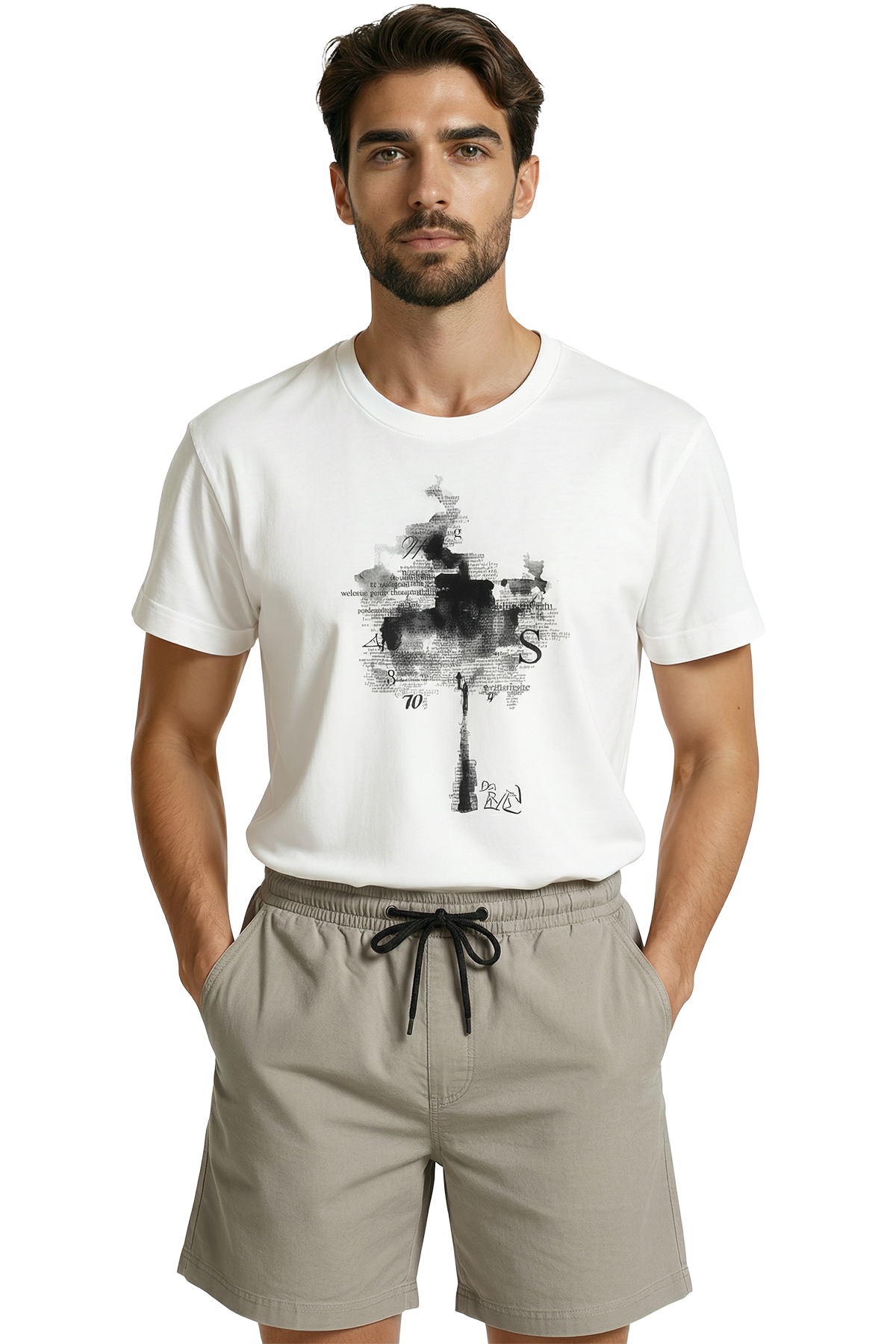 Sıradan bir ağaç figüründen çok daha fazlası. Mürekkep lekelerinin rastgele dağılımı ve aralarına gizlenmiş tipografik öğelerle (harfler ve rakamlar) oluşturulan bu soyut ağaç tasarımı; doğanın organik yapısını, insanın entelektüel dünyasıyla birleştiriyor. "Grunge" ve "Avant-garde" sanat akımlarından izler taşıyan bu siyah-beyaz çalışma; derinliği olan, düşündüren ve stilinde sanatsal bir gizem arayan erkekler için tasarlandı.