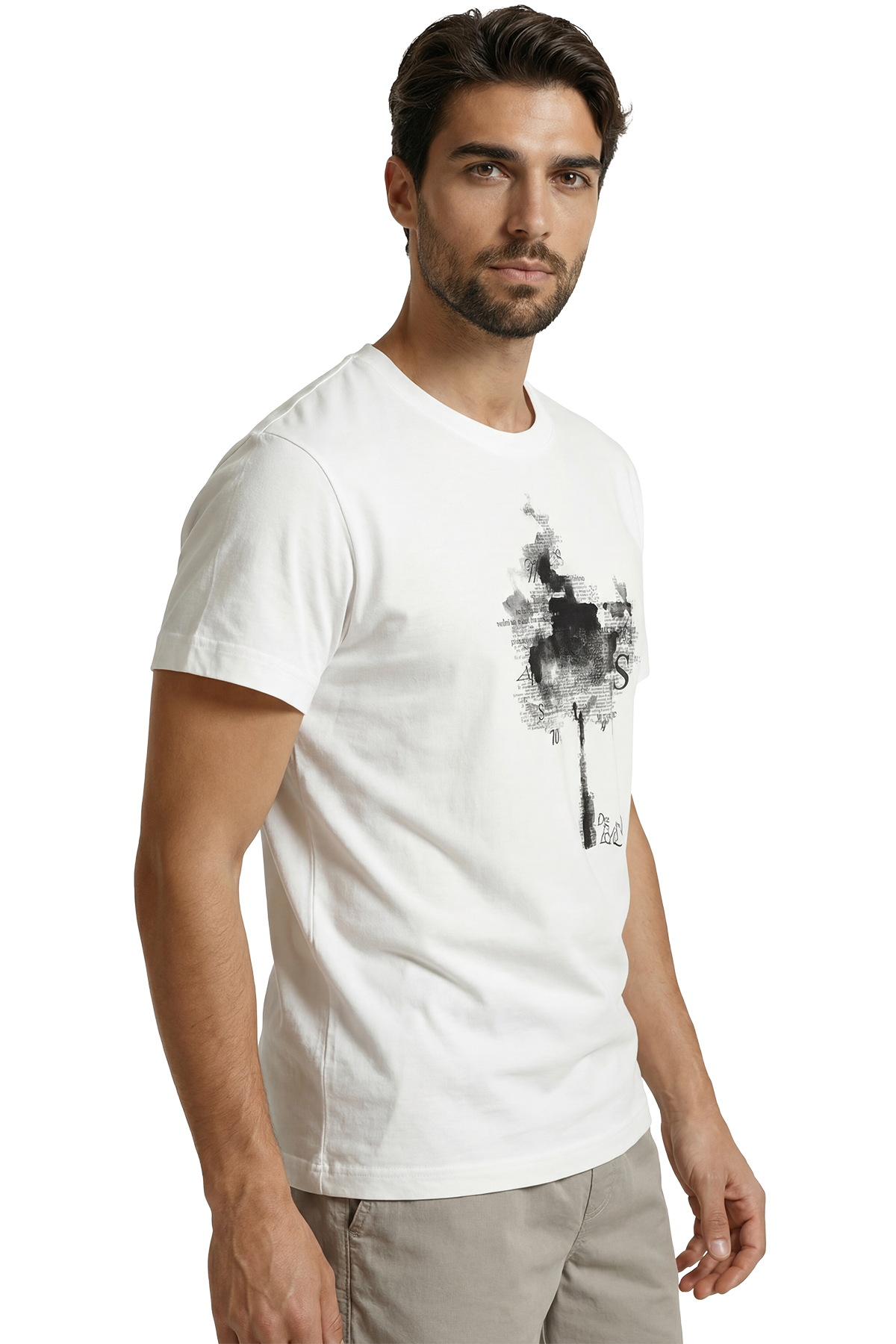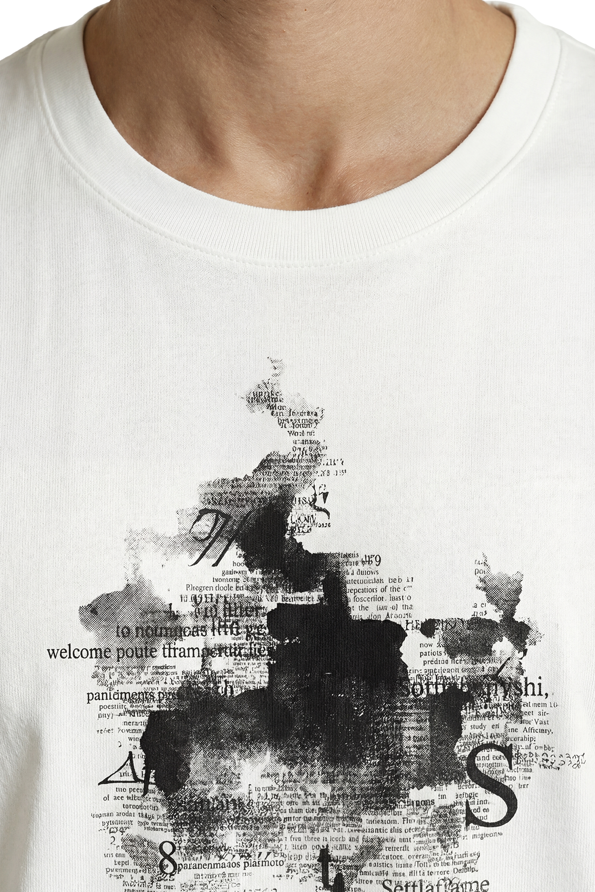 Soyut Mürekkep Lekesi ve Tipografik Ağaç Baskılı Tasarım Premium Erkek Tişört