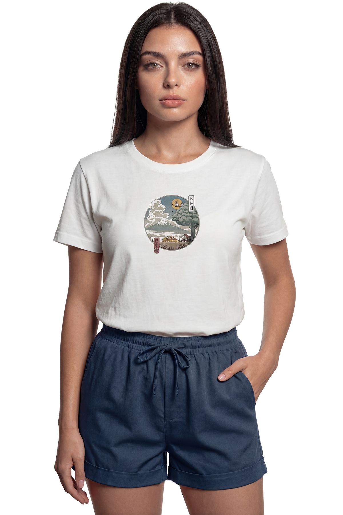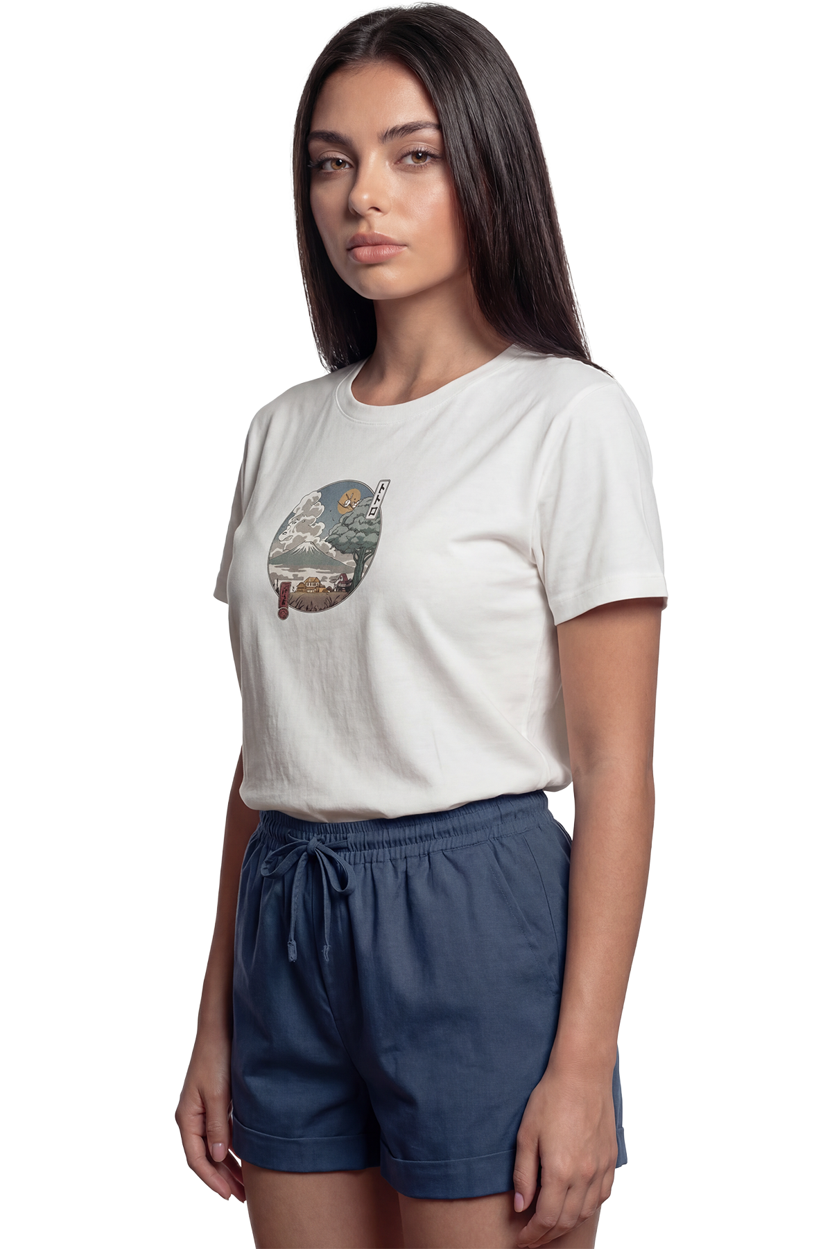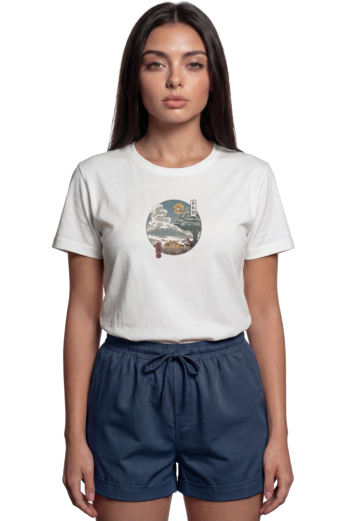''Japanese Scenery'' Japon Manzaralı Sanatsal Baskılı %100 Pamuk Rahat Kesim Premium Kadın Tişört