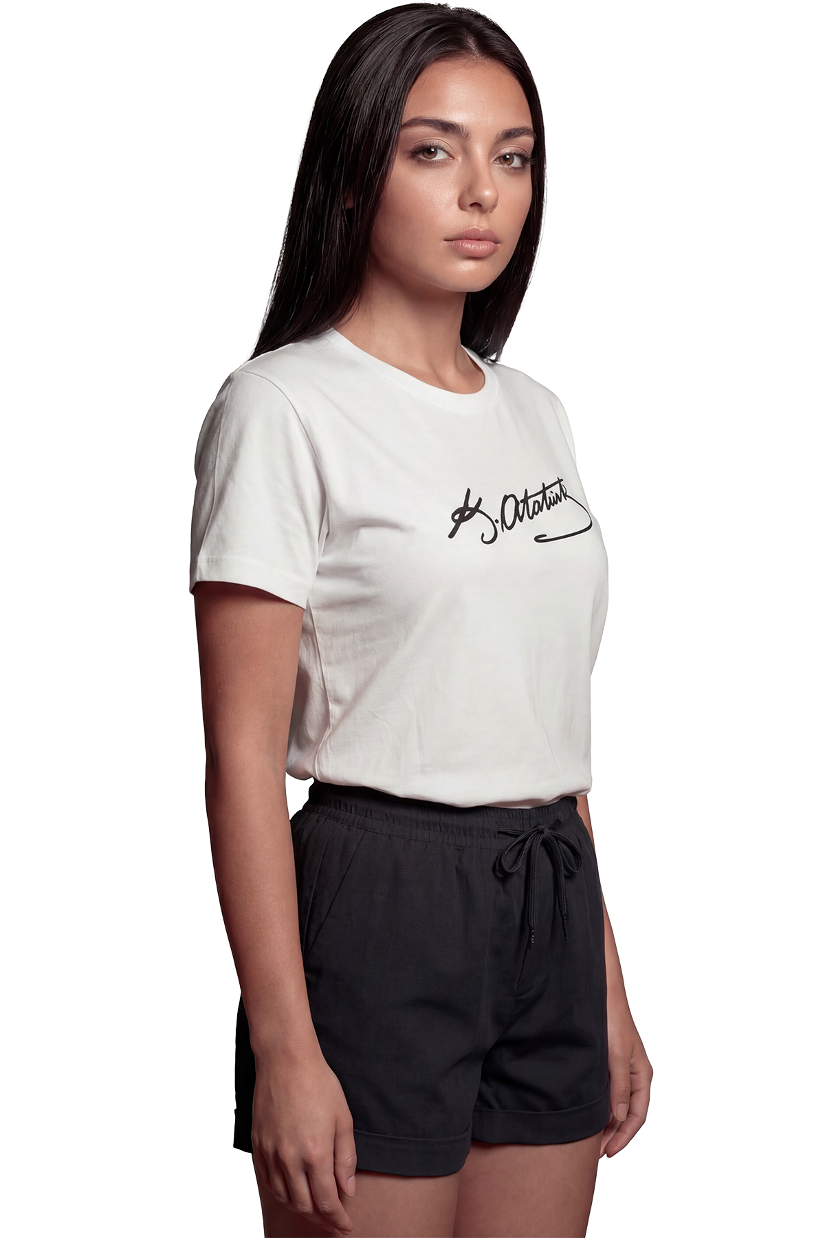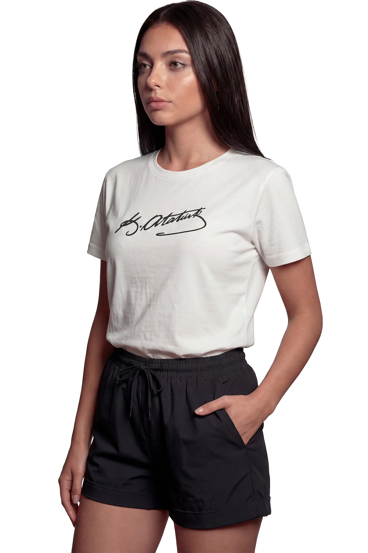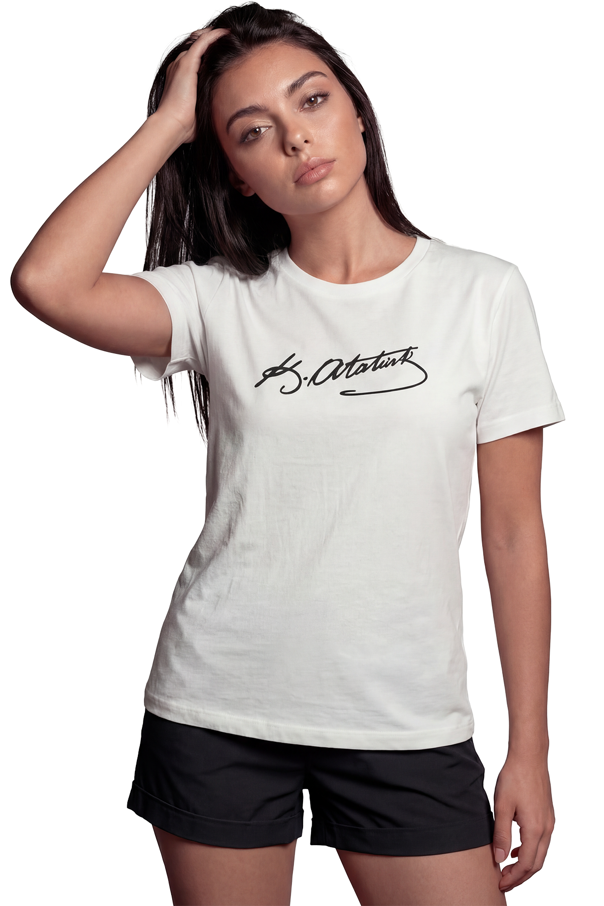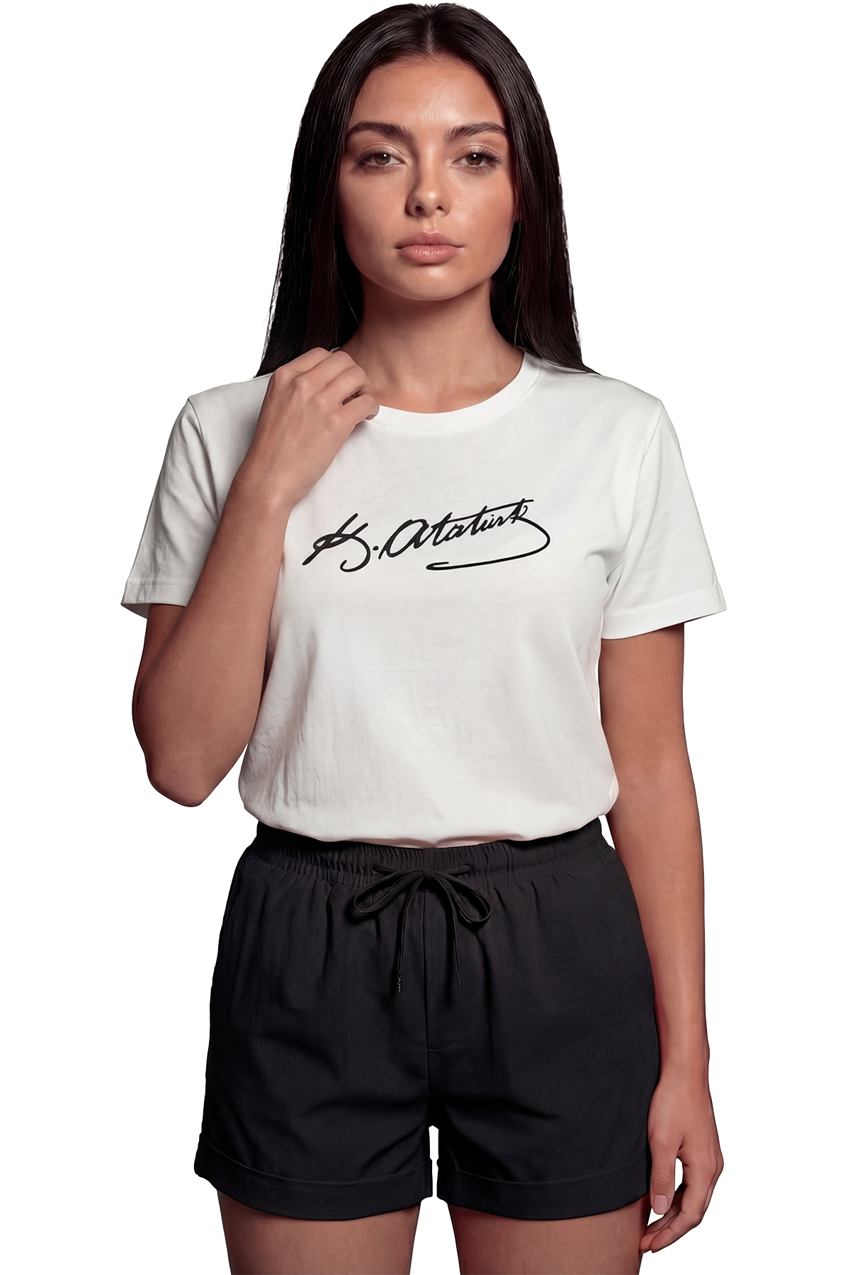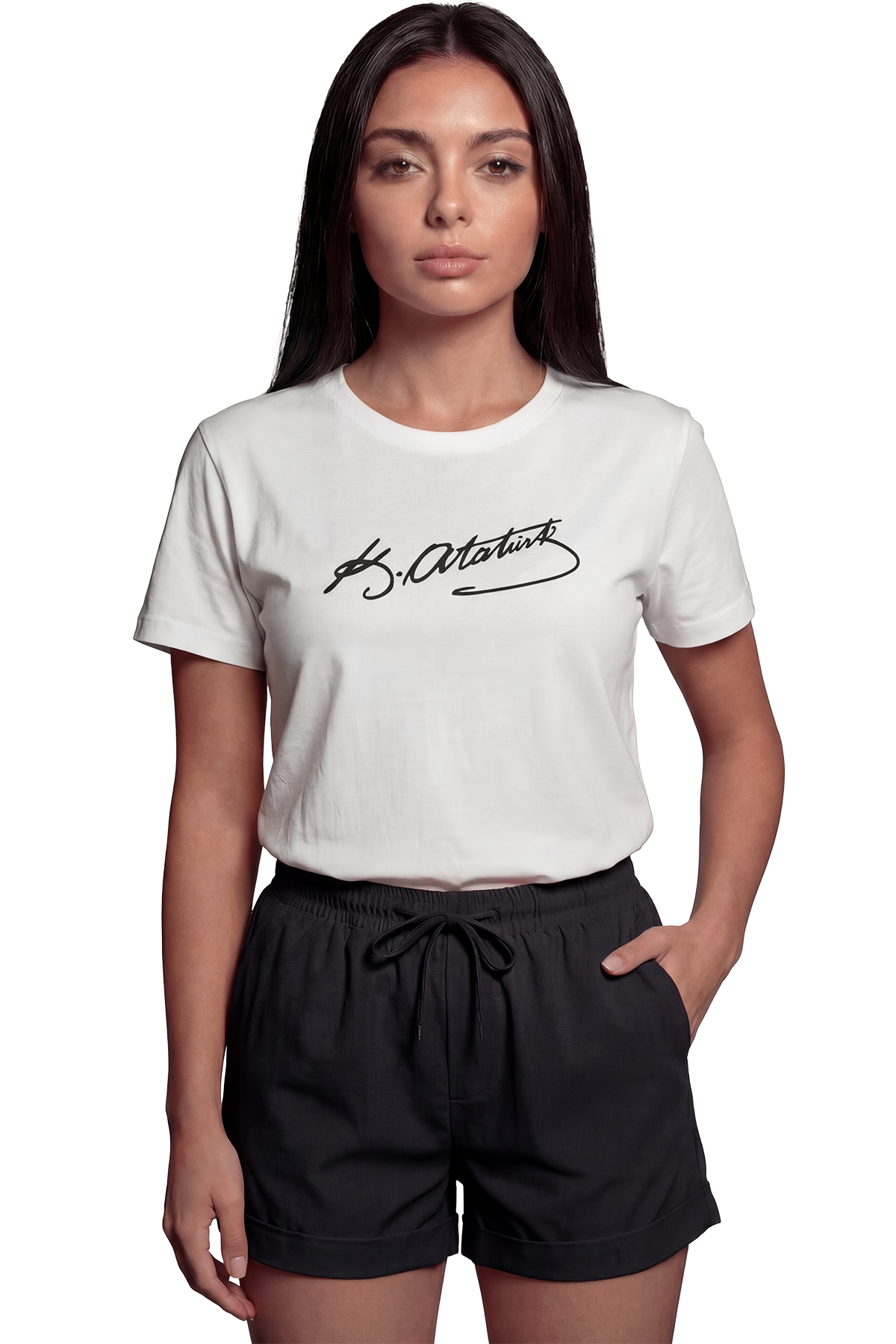 ''K. Atatürk'' İmzalı Minimalist Baskılı %100 Pamuk Rahat Kesim Premium Kadın Tişört