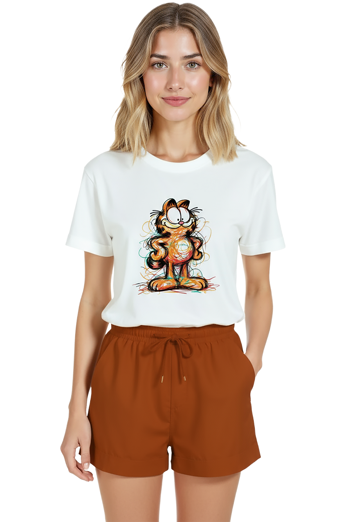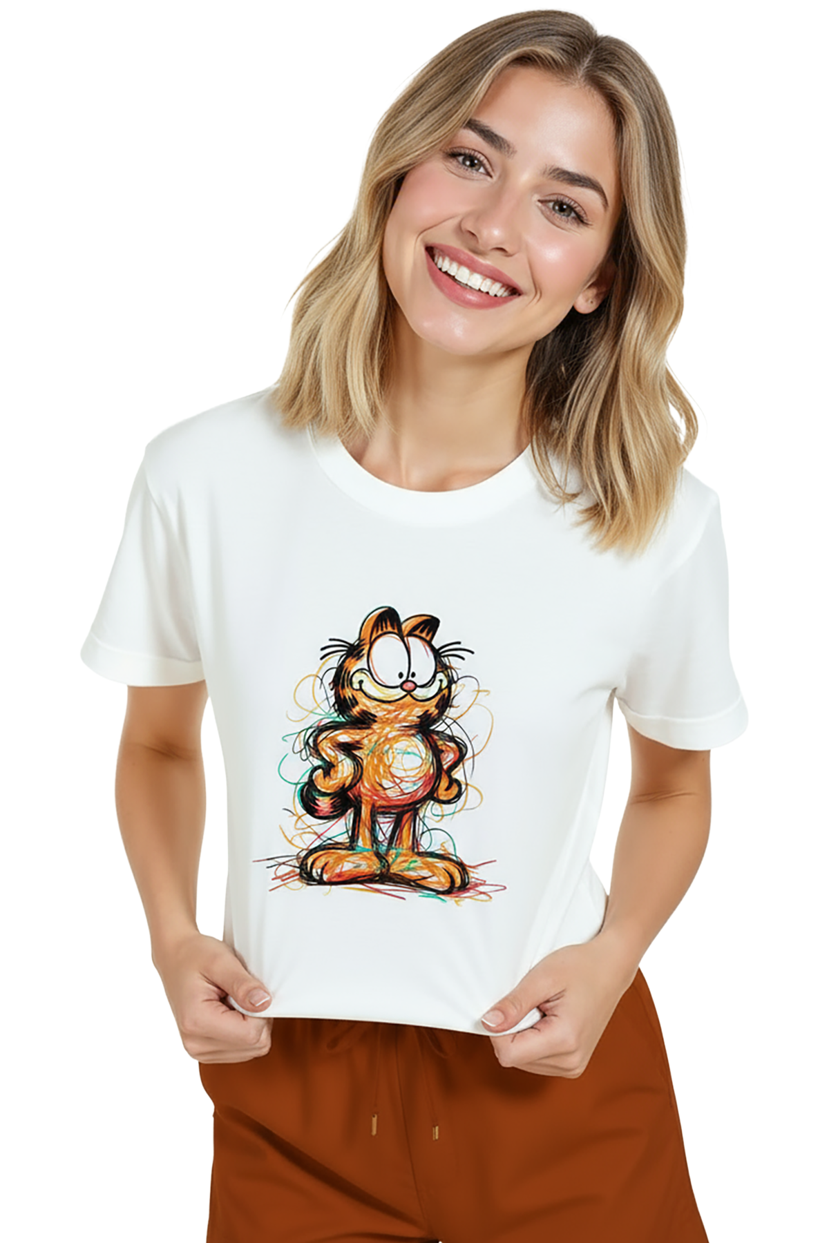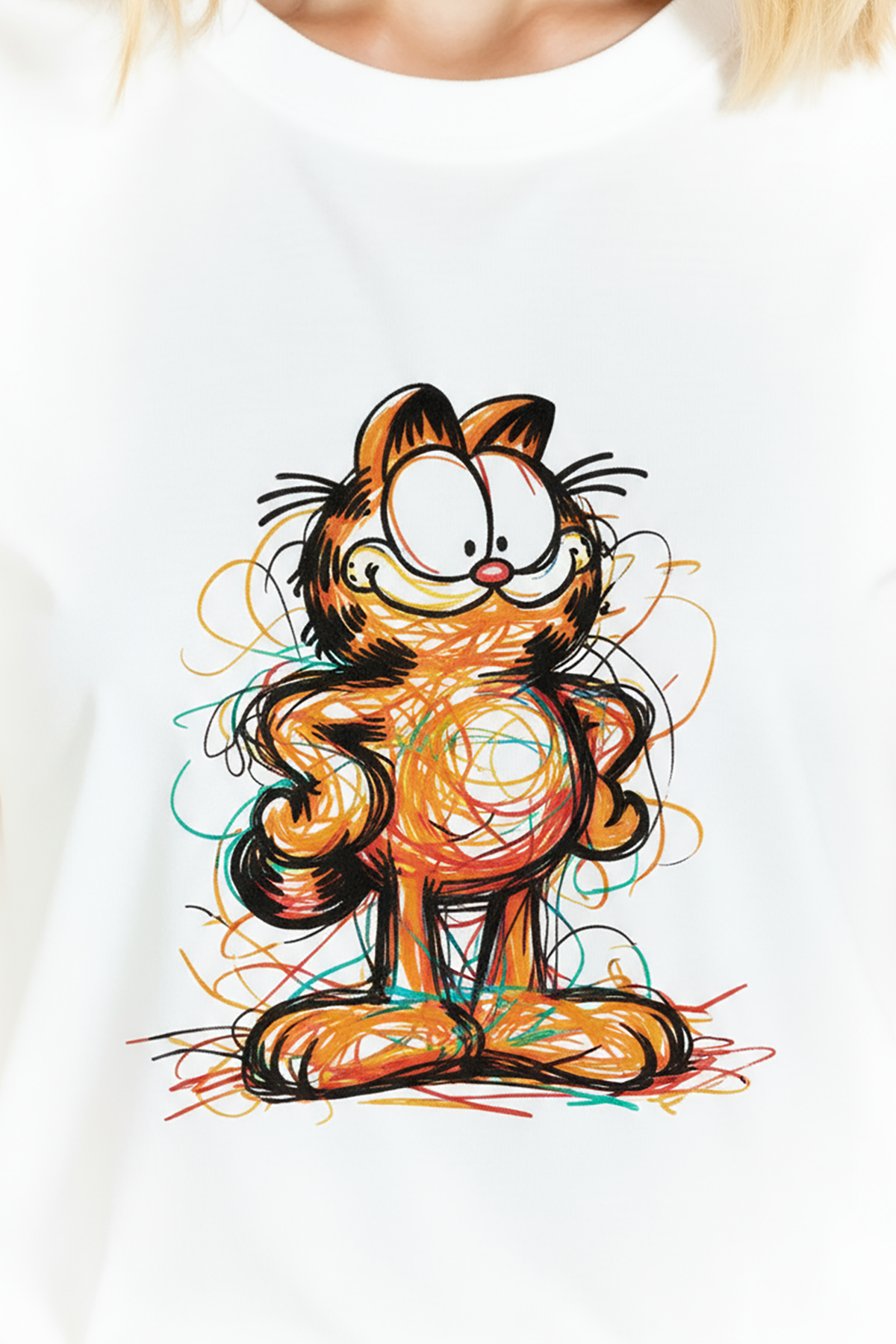 Eğlenceli ve sanatsal bir dokunuş sunan kadın tişörtü. Bu beyaz relaxed fit kadın tişört, ön göğüste yer alan renkli çizgisel karalama kedi illüstrasyonu ile dikkat çeker; dinamik fırça darbeleri ve canlı renk geçişleri tasarıma çağdaş bir hava katar. Ürün %100 pamuk kumaştan üretilmiştir ve relaxed fit kadın kesim sayesinde gün boyu konfor, nefes alabilirlik ve rahat hareket sağlar. Grafik yüksek çözünürlüklü dijital baskı ile uygulanmış olup detaylar uzun süre korunur. Günlük şehir kombinleri, kafe‑stil ve smart‑casual kullanımlar için ideal bir parça.