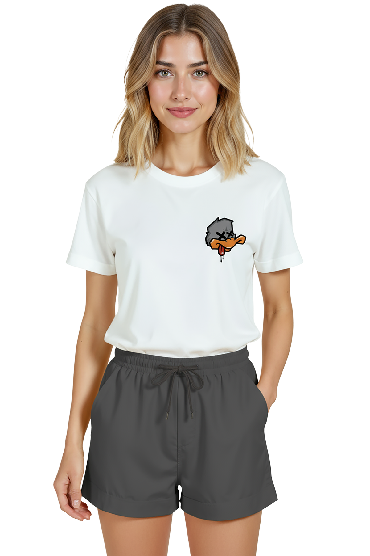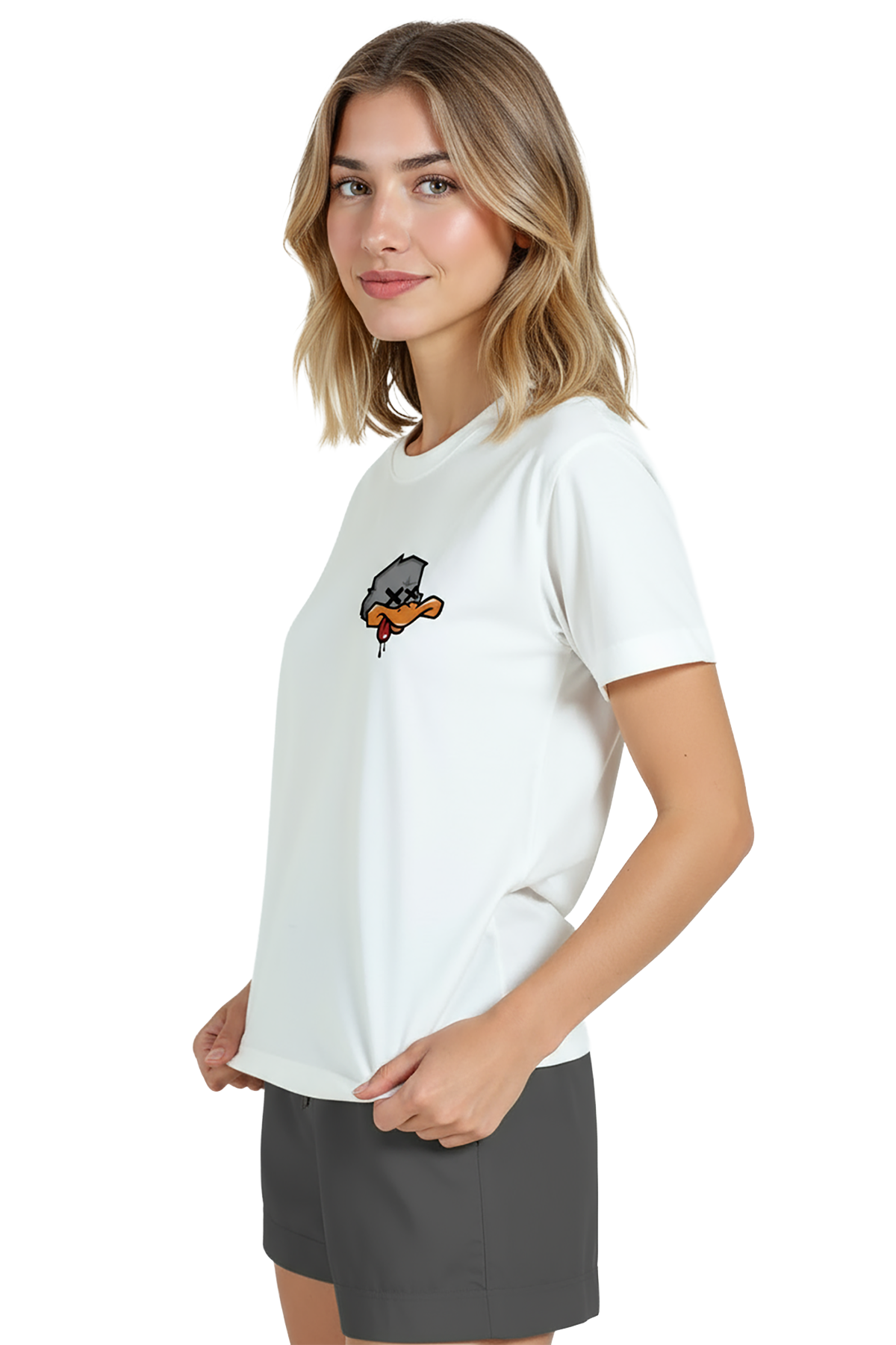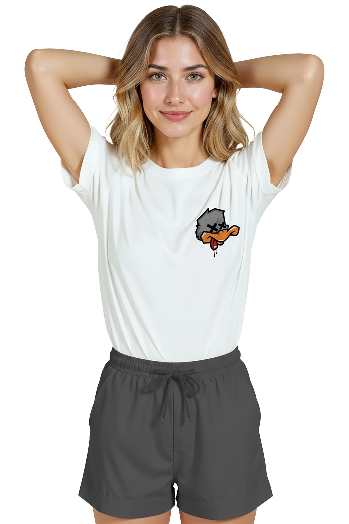 Sanat ve sokak estetiğini bir arada sunan enerjik kadın tişörtü. Bu beyaz relaxed fit kadın tişört, ön göğüs üstünde yer alan minimal grafiti‑stil ördek kafa illüstrasyonu ile modern ve dikkat çekici bir görsel sunar; küçük chest‑print konumu günlük kombinlerde şık bir vurgu sağlar. Ürün %100 pamuk kumaştan üretilmiş olup relaxed fit kadın kesim sayesinde gün boyu konfor, nefes alabilirlik ve rahat hareket sunar. Baskı yüksek çözünürlüklü dijital baskı ile uygulanmış; canlı renk kontrastları ve siyah kontur çizgileri uzun süre net kalır. Streetwear, casual ve smart‑casual kombinlere uyumlu, genç ve dinamik gardıroplar için ideal bir parça.
