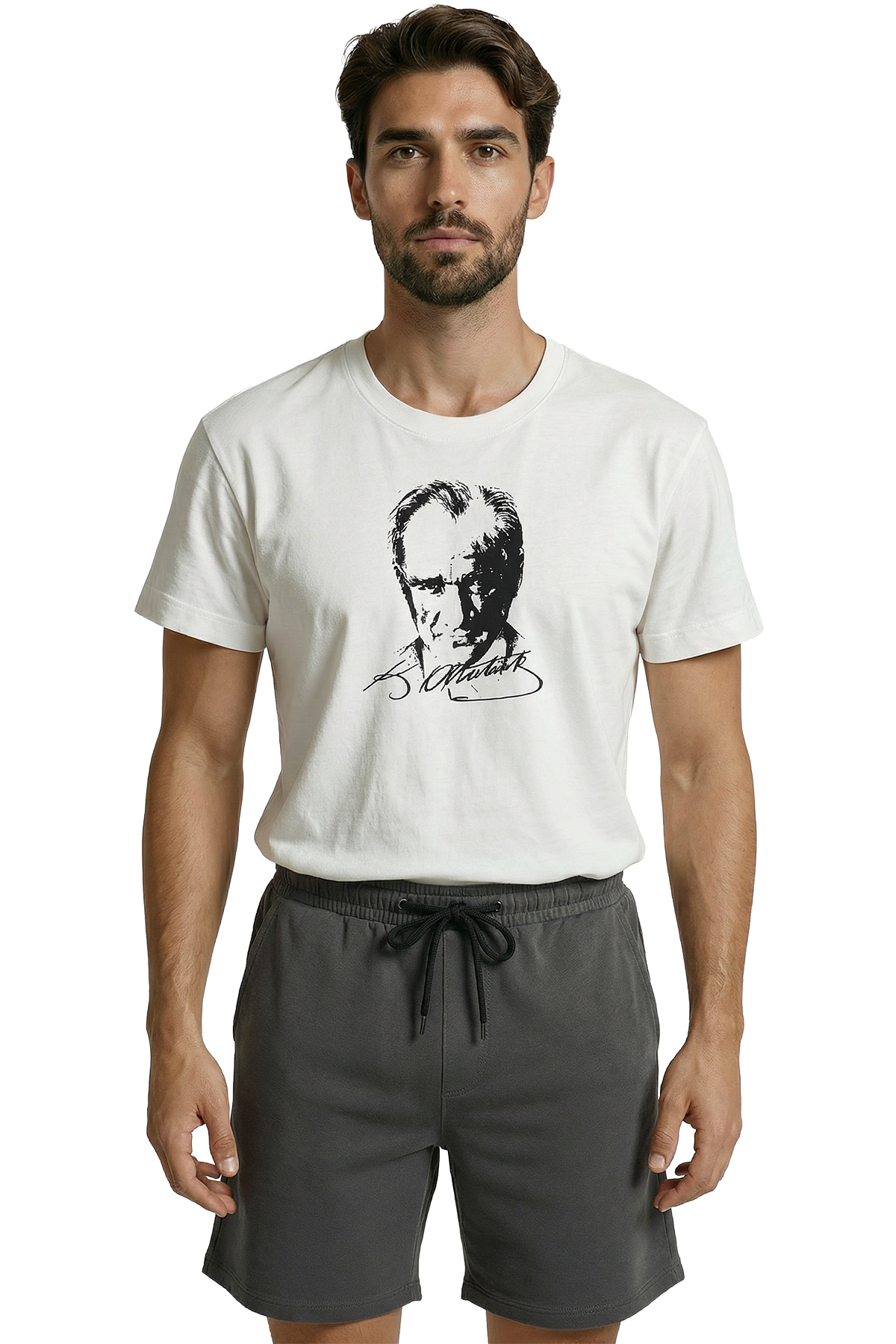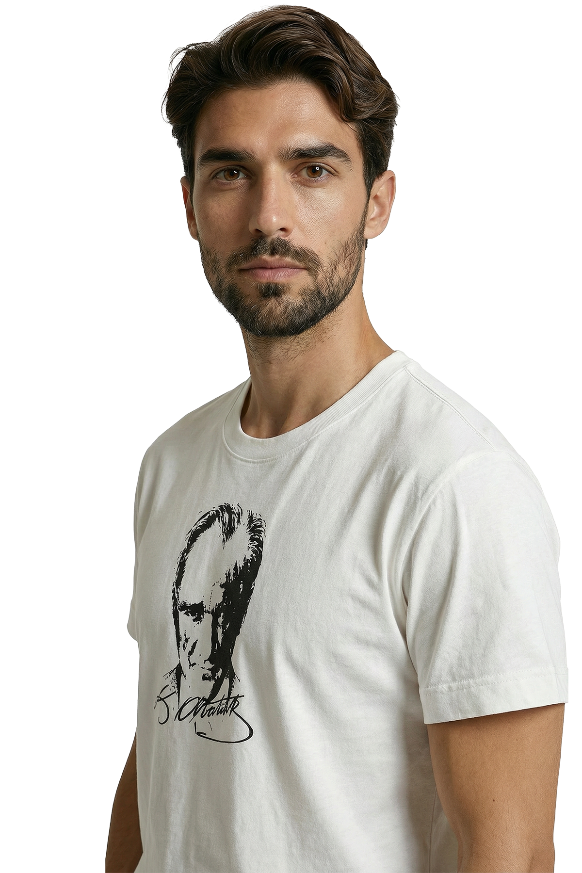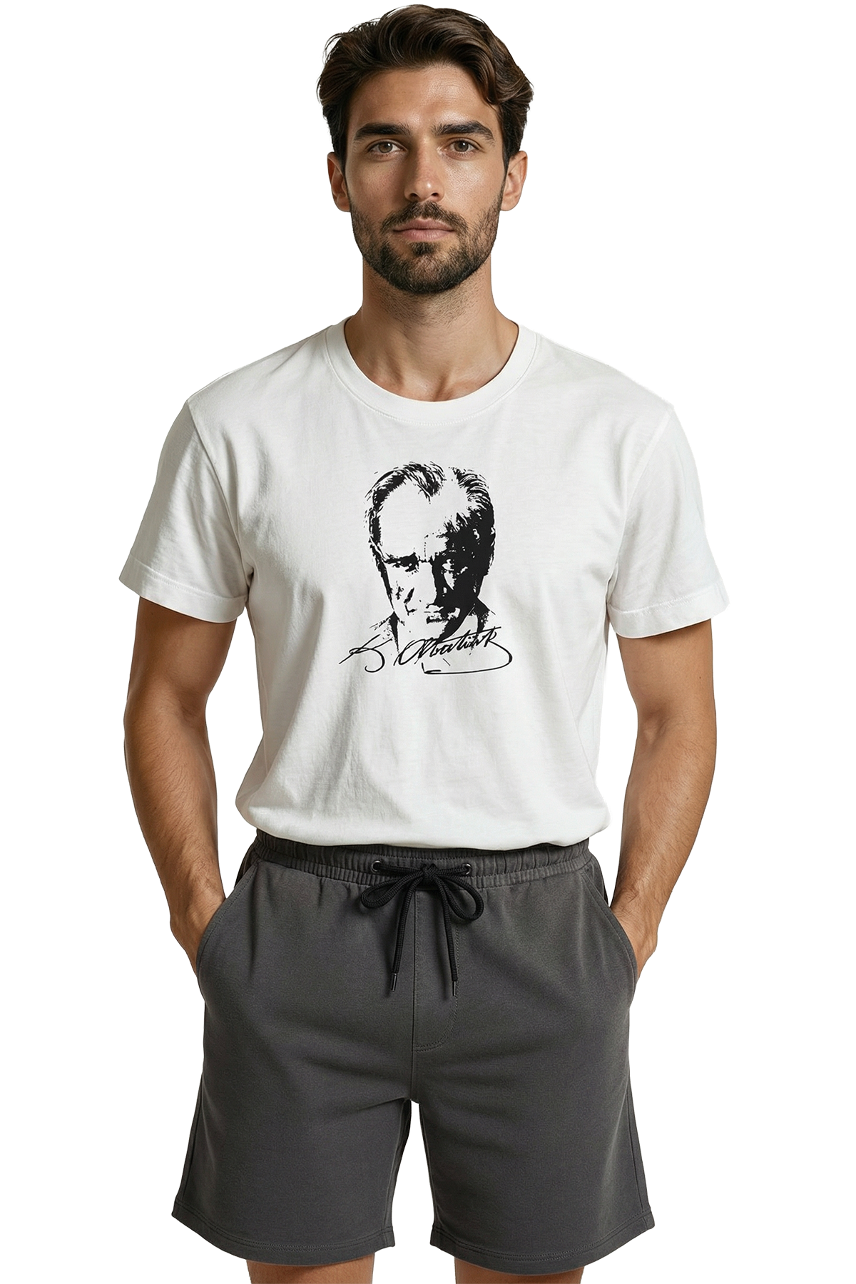 Ulu Önder Mustafa Kemal Atatürk’ün asaletini ve kararlılığını yansıtan bu özel tasarım; kara kalem sanatının zarafetiyle hayat buluyor. Siyahın ve beyazın zamansız uyumuyla tasarlanan portre ve imza detayı, abartıdan uzak, net ve güçlü bir duruş sergiliyor. Hem milli bayramlarda hem de günlük hayatta, Atamıza olan sevginizi göğsünüzde gururla taşıyacağınız klasik bir parça.