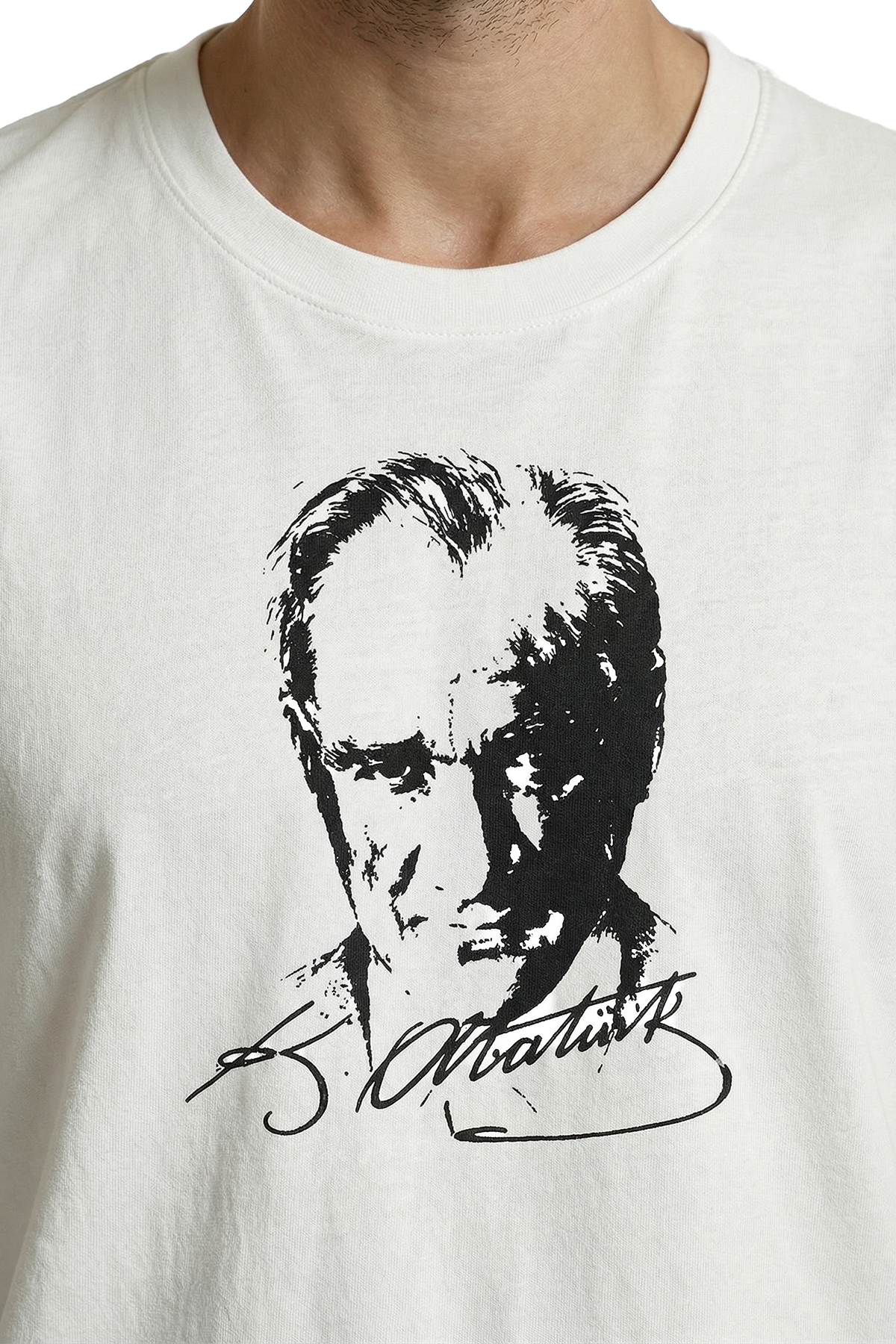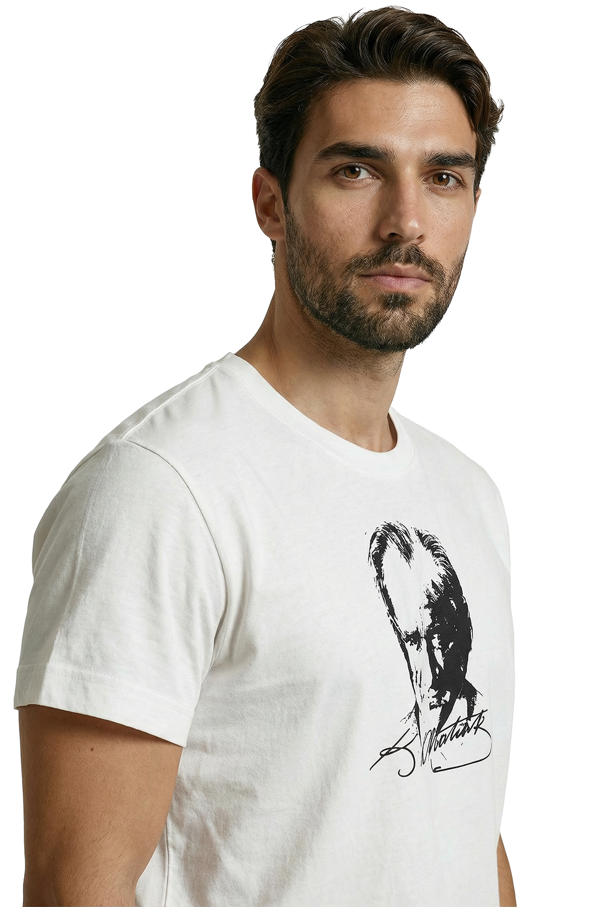 Kara Kalem Efektli Atatürk Portreli ve İmzalı Premium Erkek Tişört