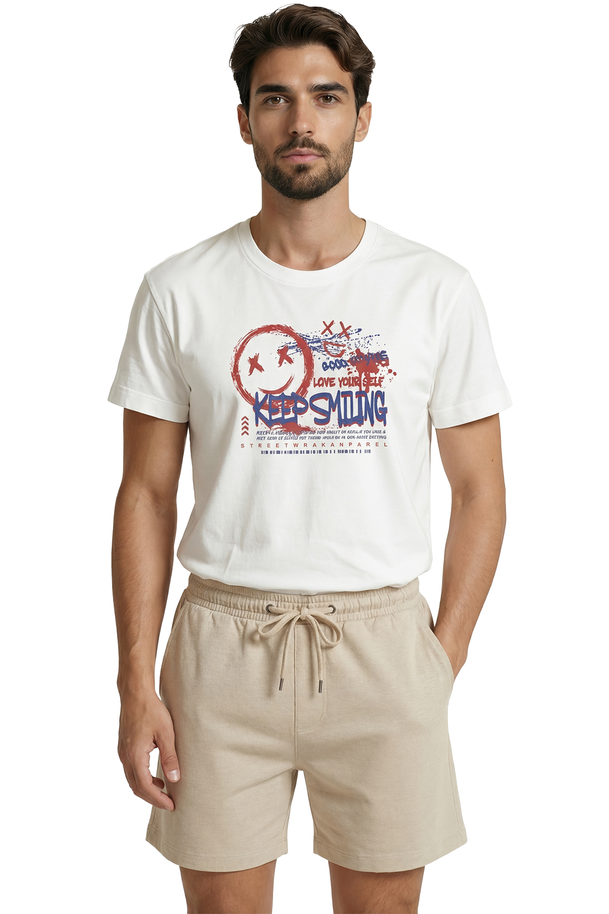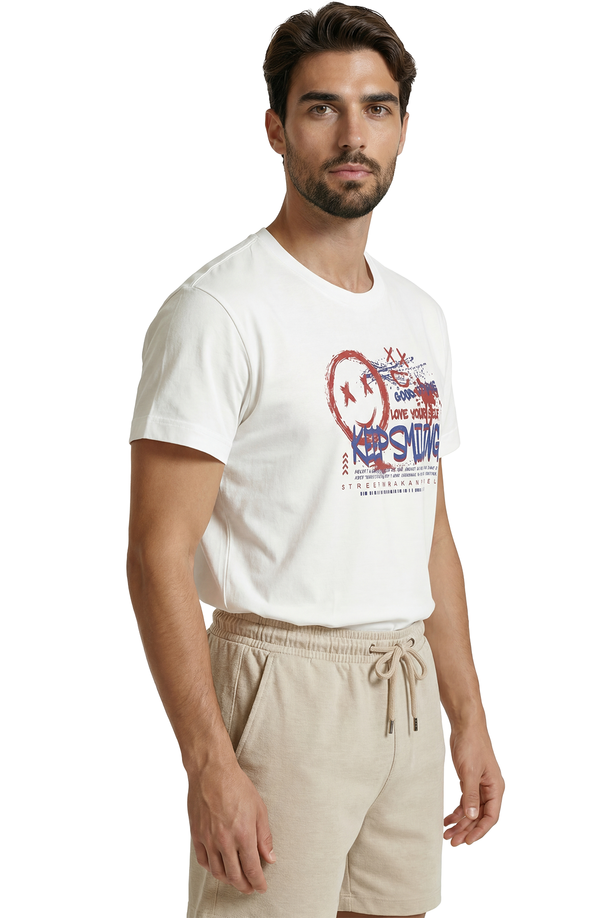 Graffiti Tarzı ''Keep Smiling'' ve Gülen Yüz Baskılı Streetwear Premium Erkek Tişört