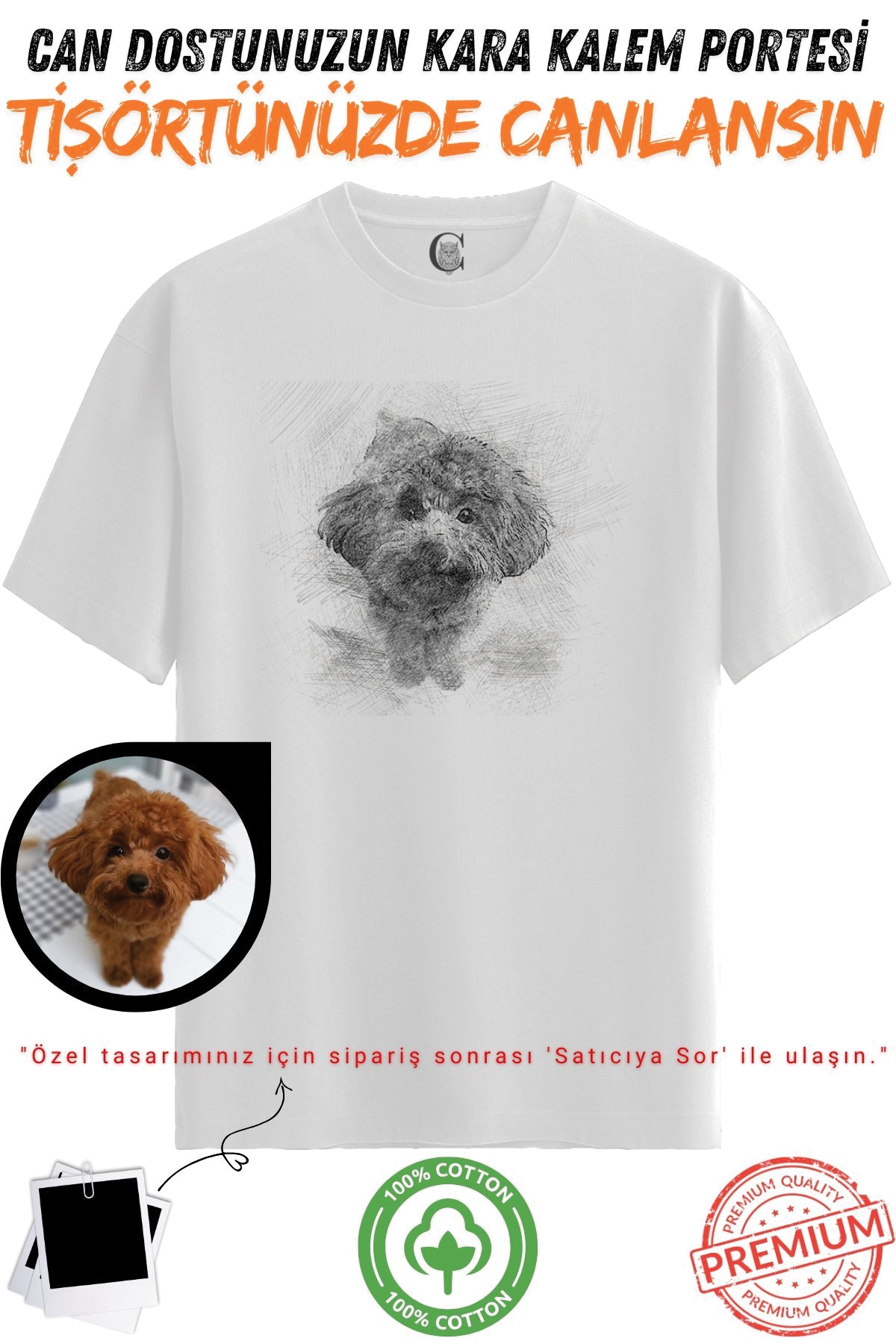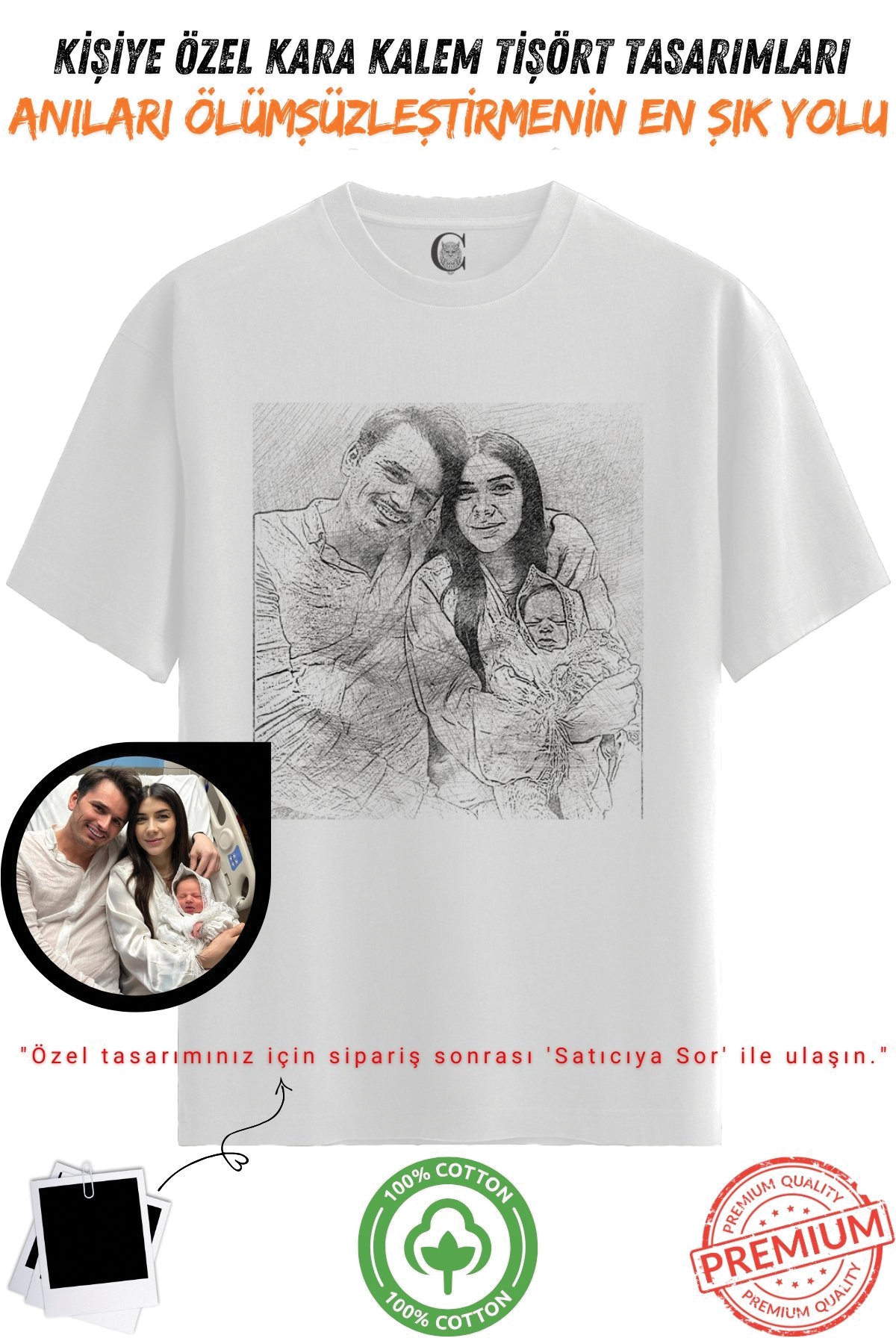 Kişiye Özel Karakalem Tişört | Fotoğraftan Baskı | Aile Evcil Hayvan Tasarım | %100 Pamuk Unisex v8
