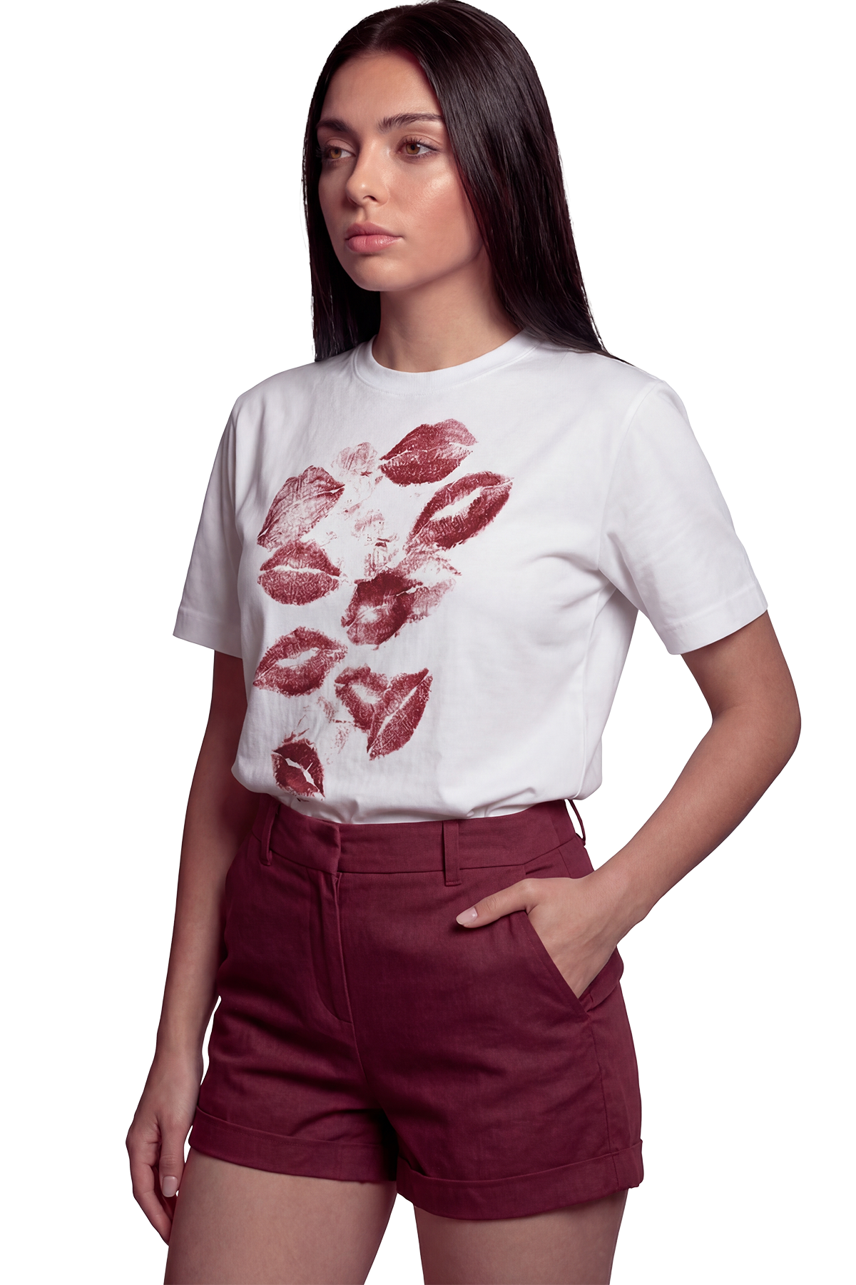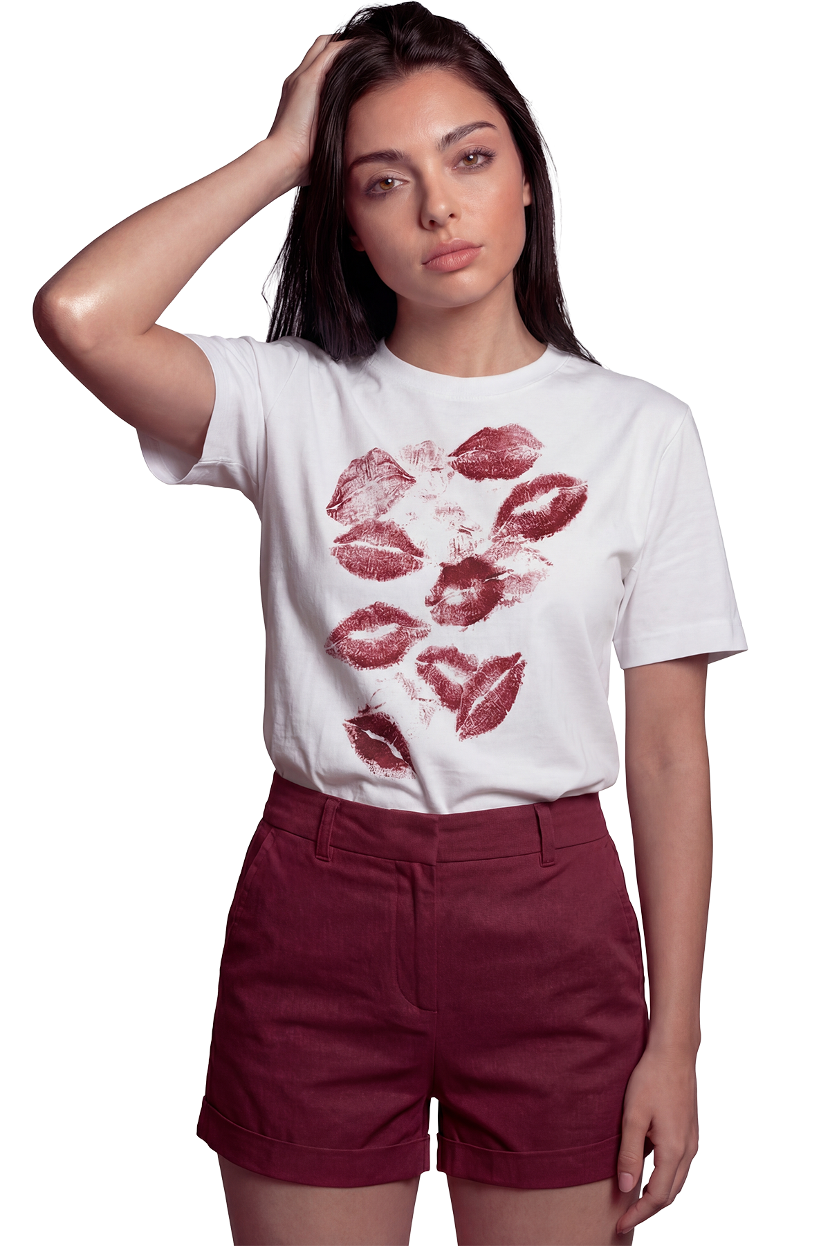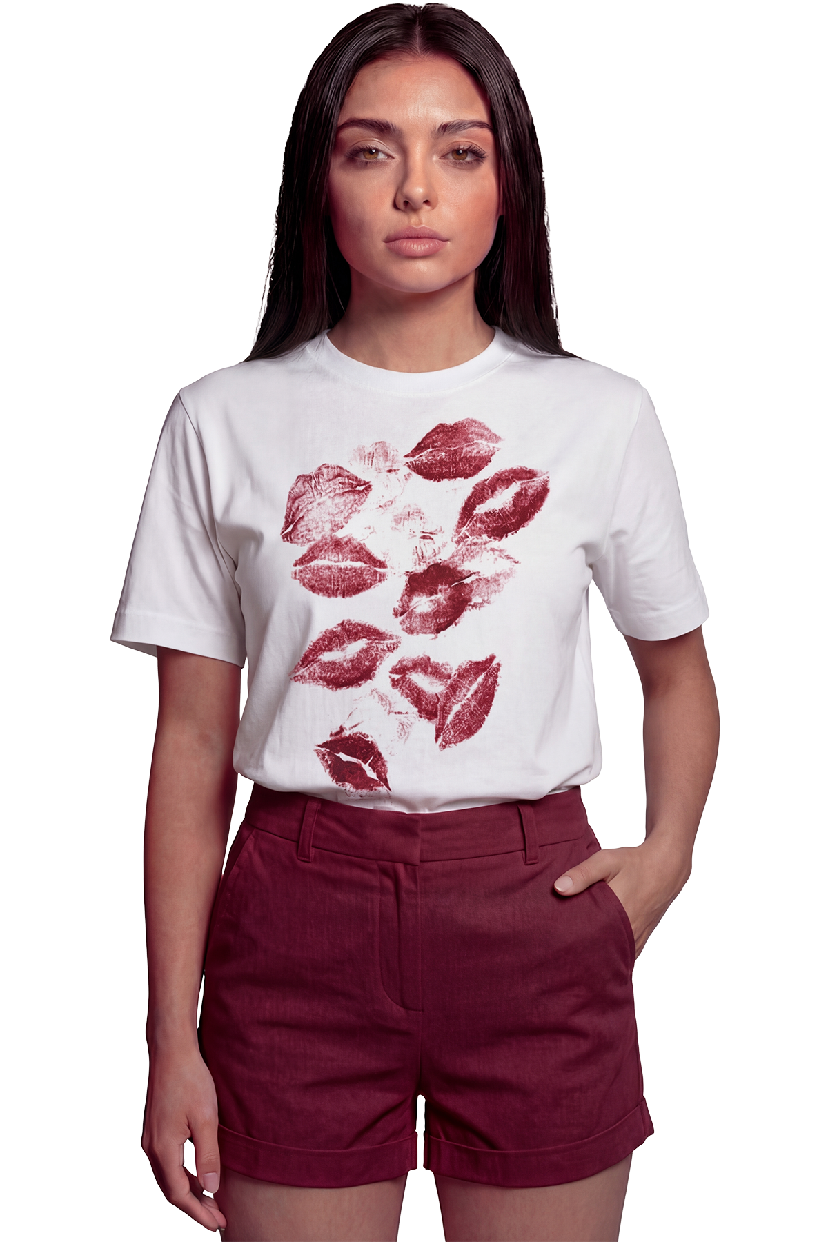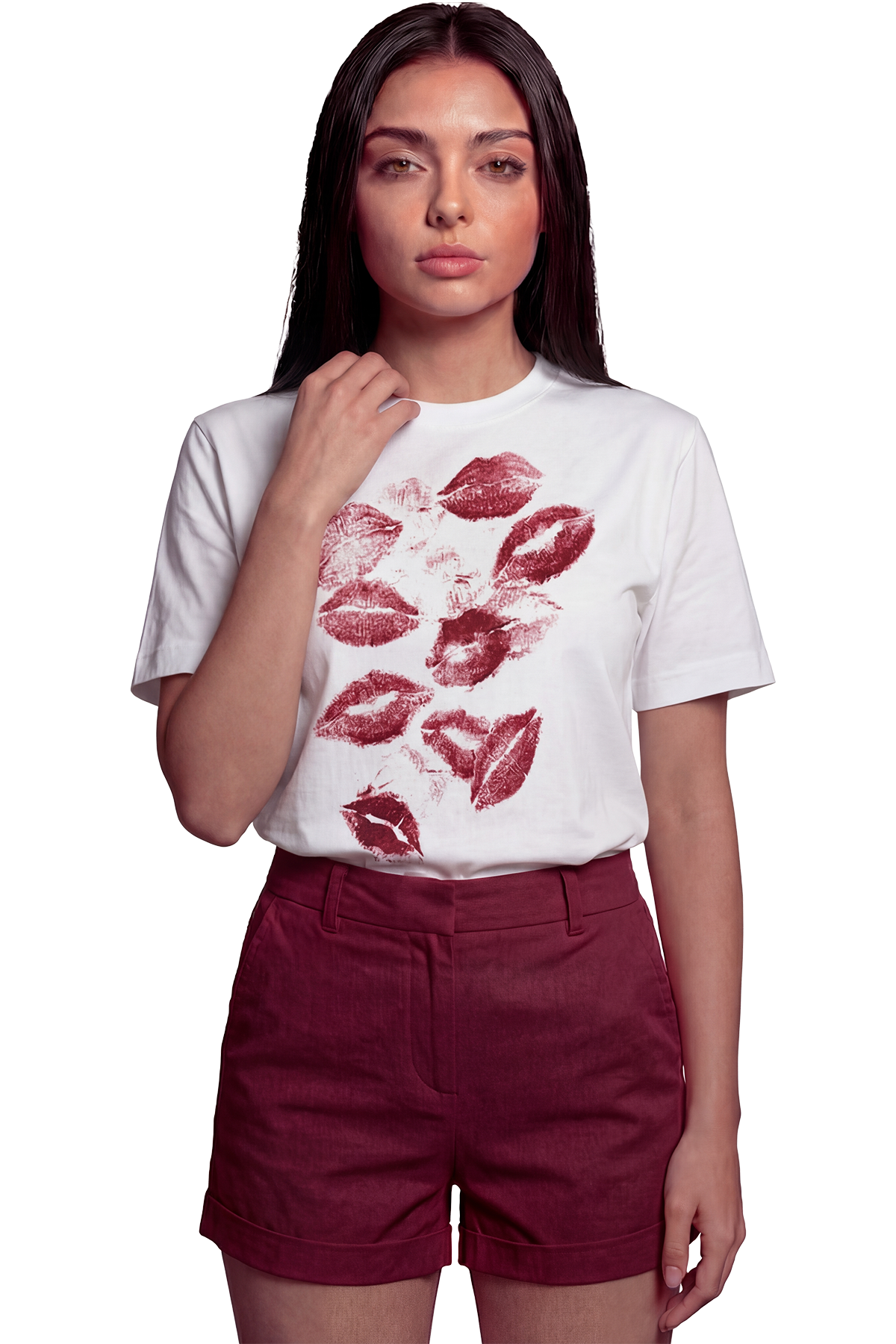 ''Kiss Me'' Öpücük Baskılı %100 Pamuk Rahat Kesim Premium Kadın Tişört