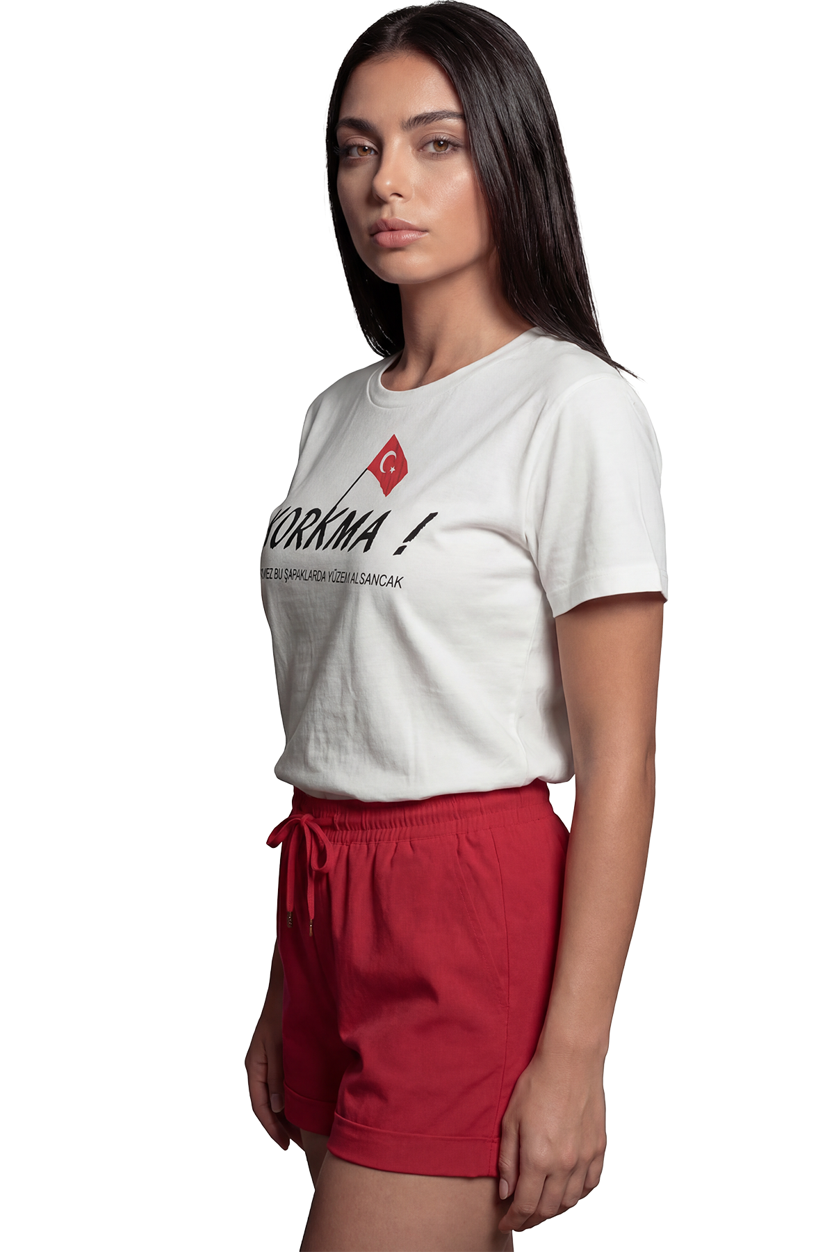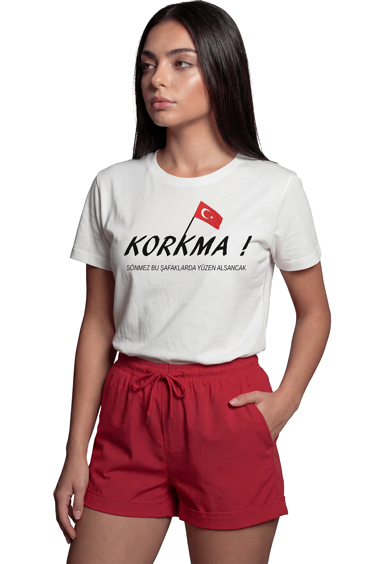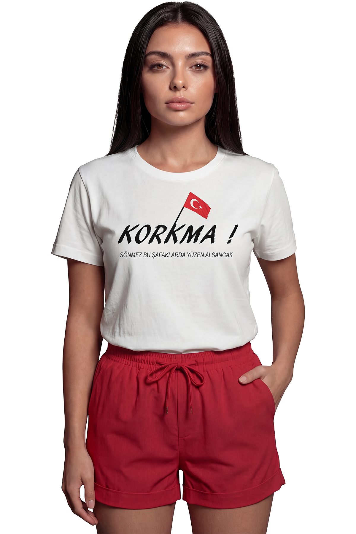 Stil: Kırmızı şortlar, beyaz pantolonlar veya jeanlerle kombinleyerek Cumhuriyet Bayramı, Zafer Bayramı gibi milli günlerde veya günlük hayatta gururlu ve şık bir duruş sergileyebilirsiniz.