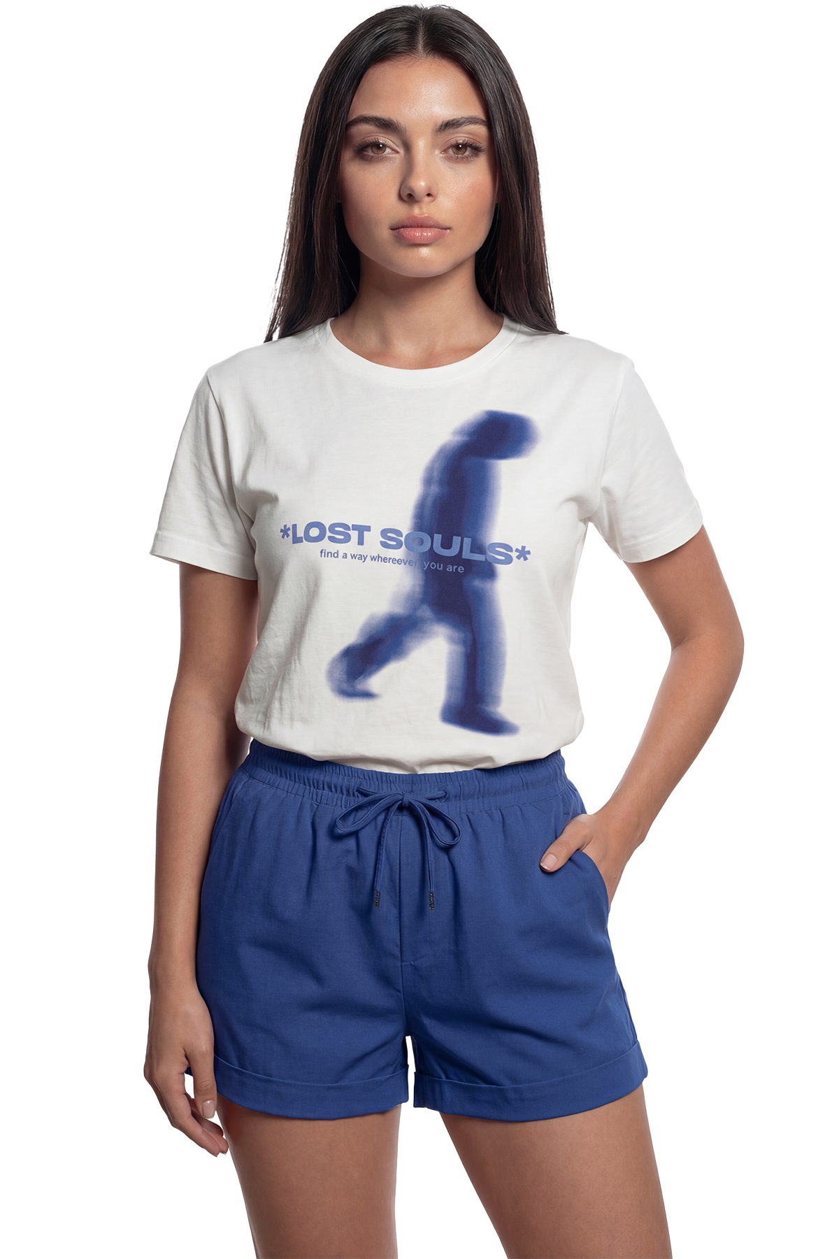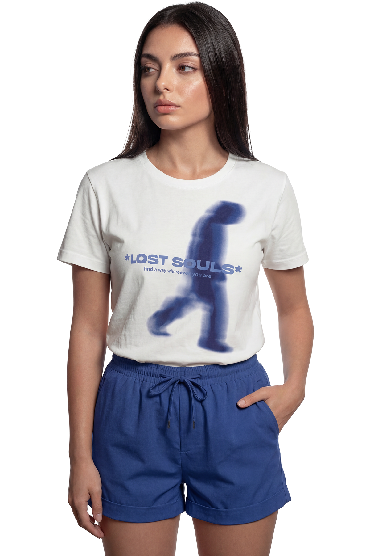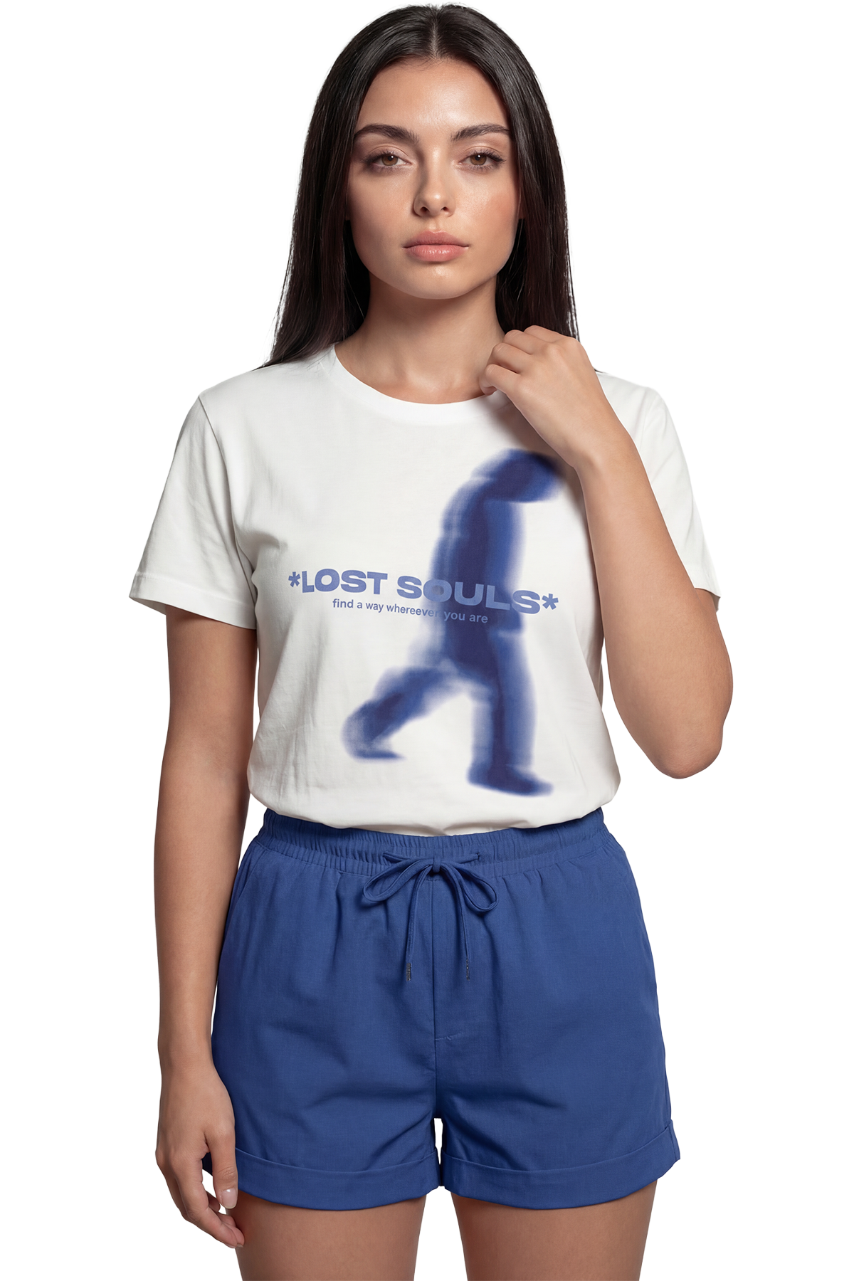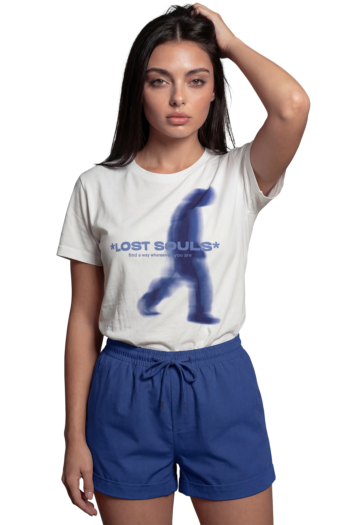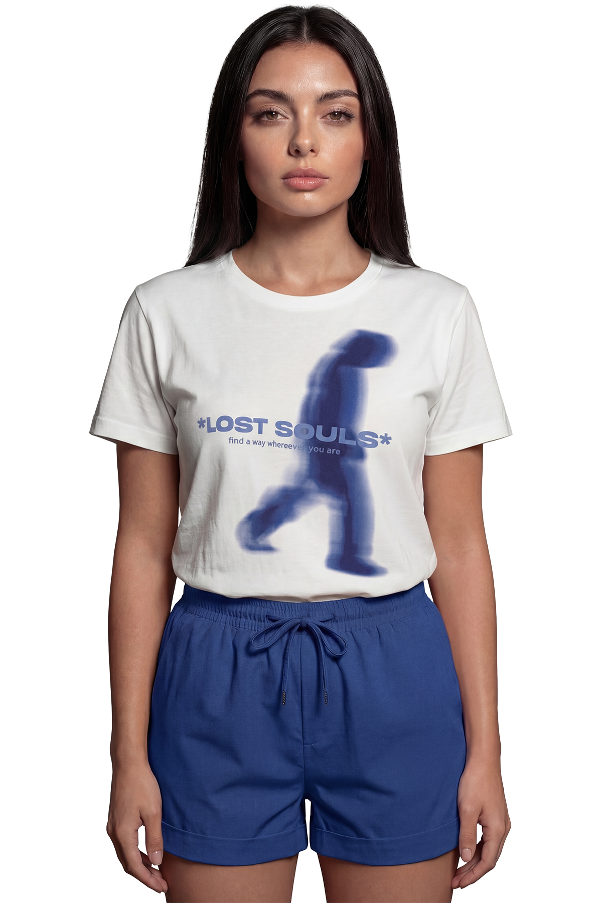 ''Lost Souls'' Blur Efektli Baskılı %100 Pamuk Rahat Kesim Premium Kadın Tişört