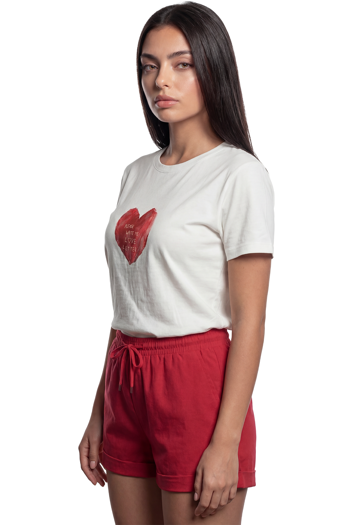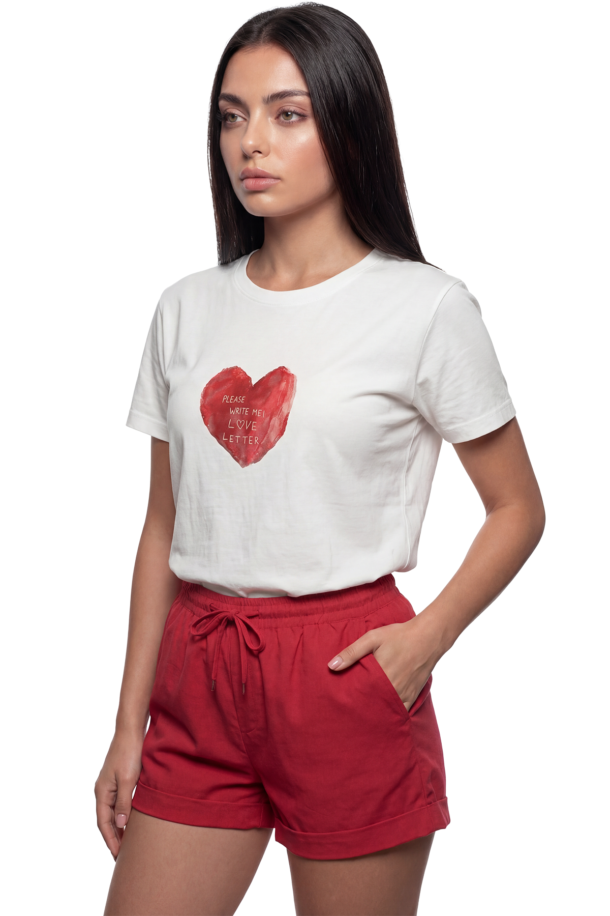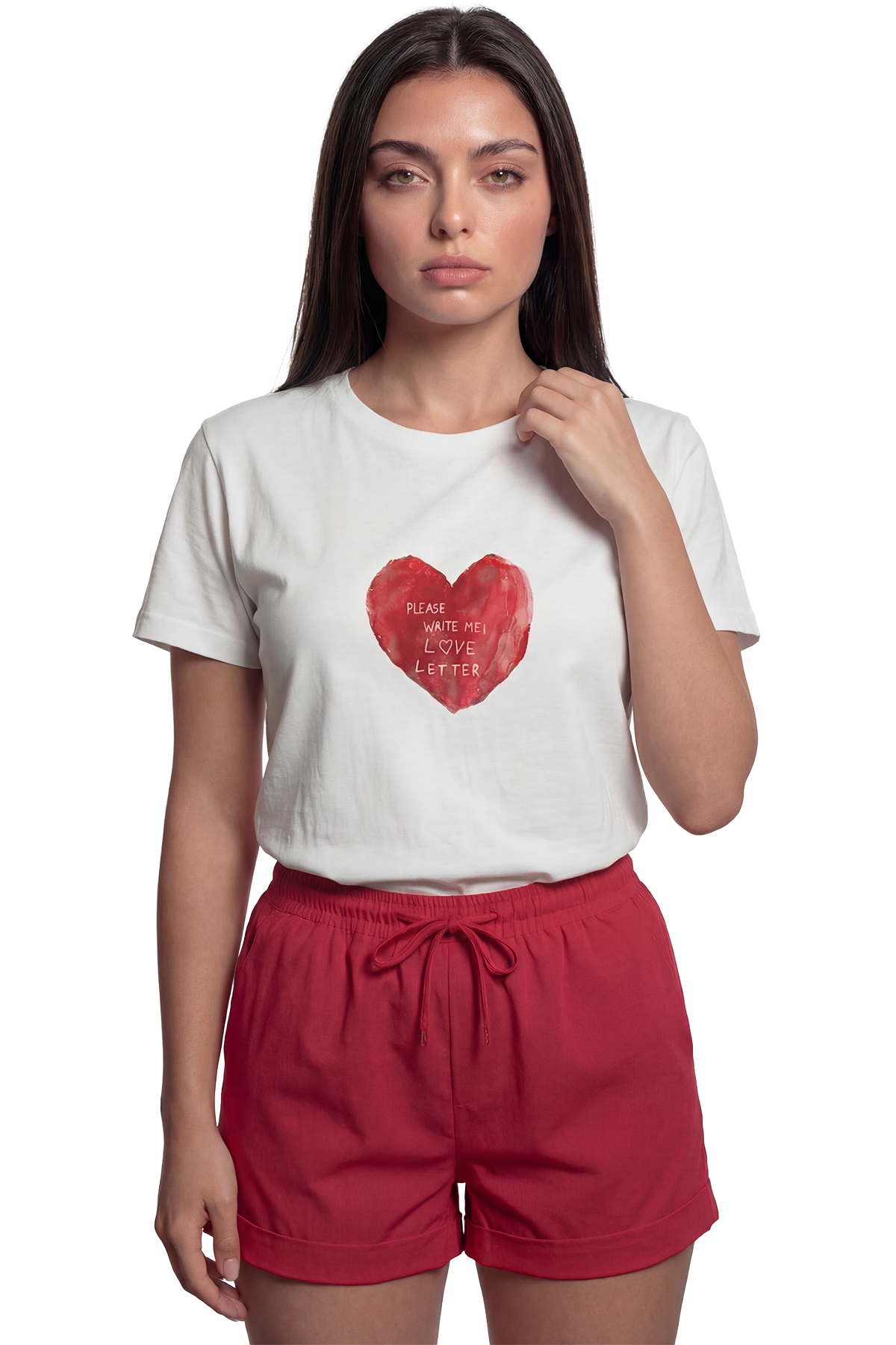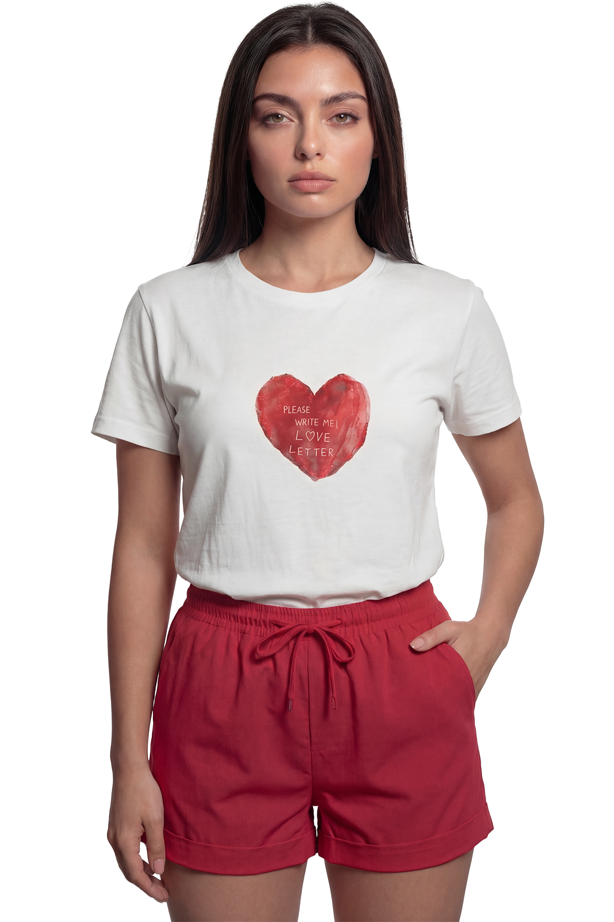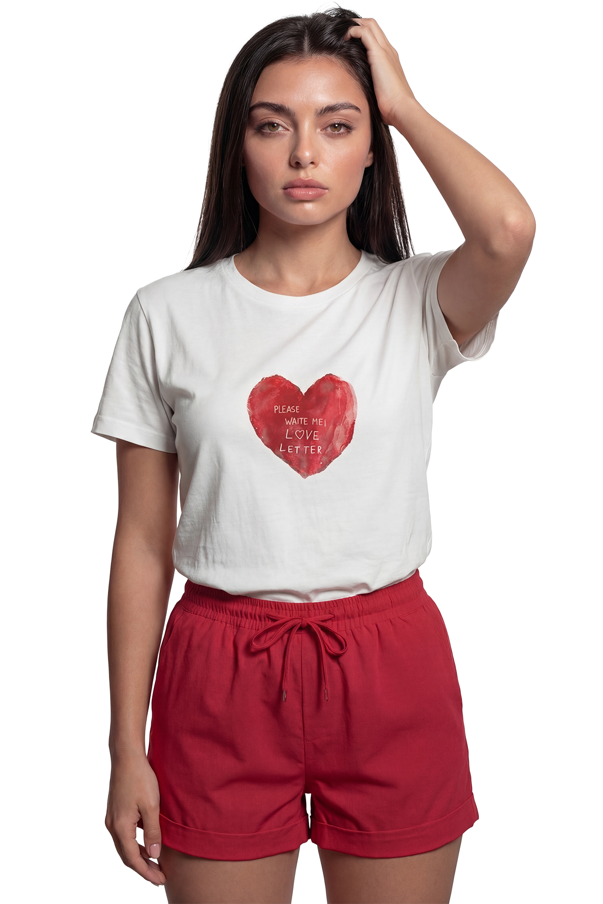 ''Love Letter Heart'' Kalp Baskılı Romantik %100 Pamuk Rahat Kesim Premium Kadın Tişört
