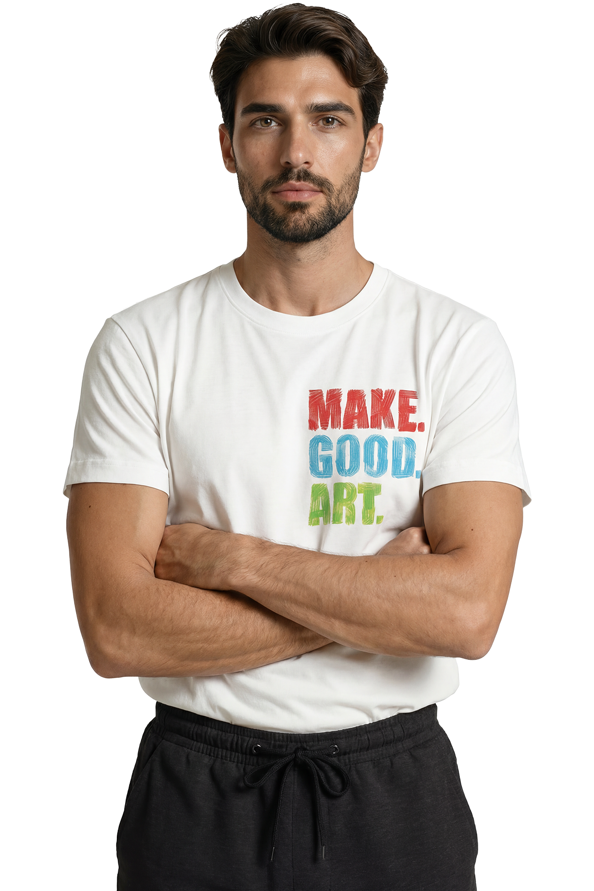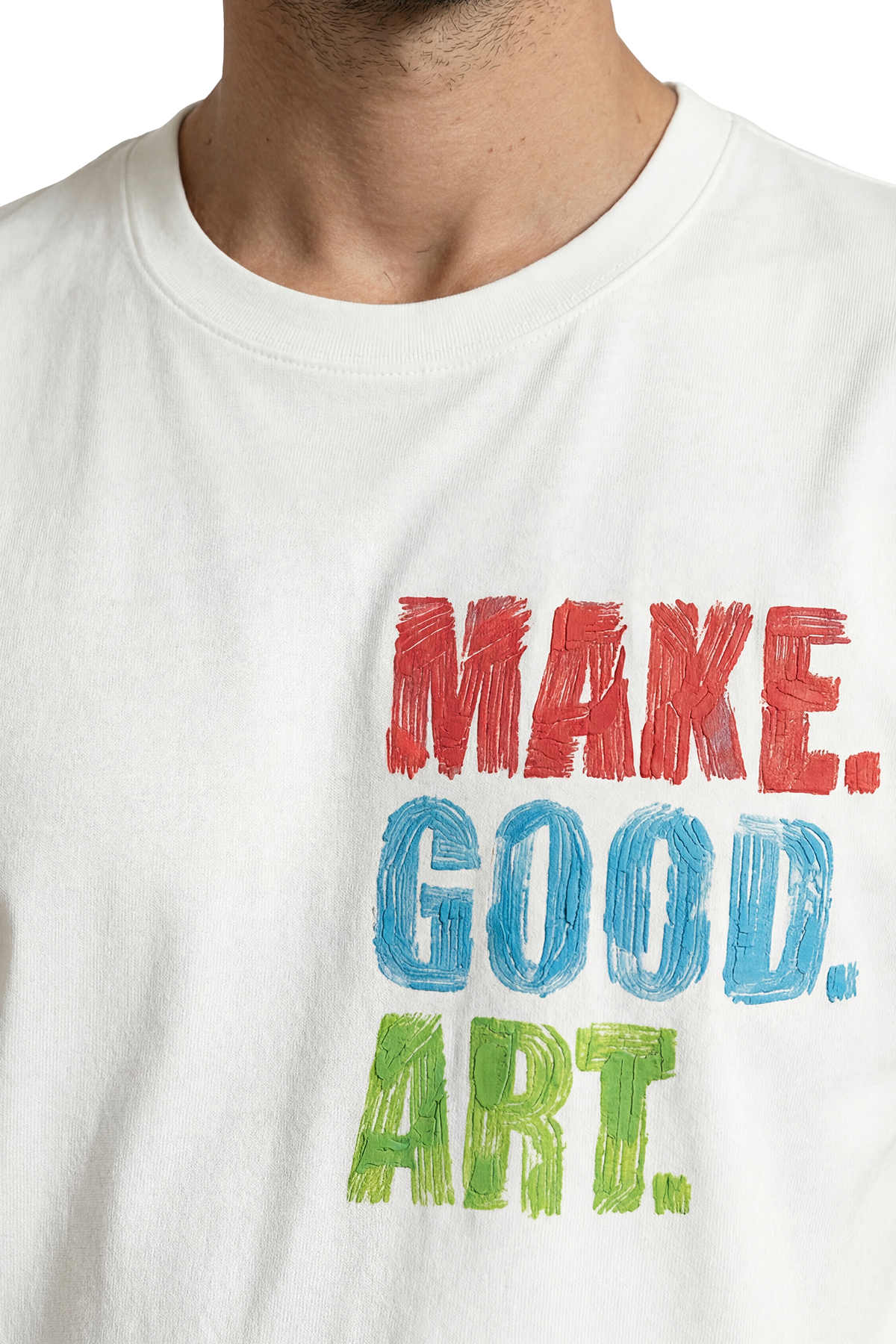 ''Make. Good. Art.'' Mottolu Renkli Fırça Efektli Sanatsal Tasarım Premium Erkek Tişört