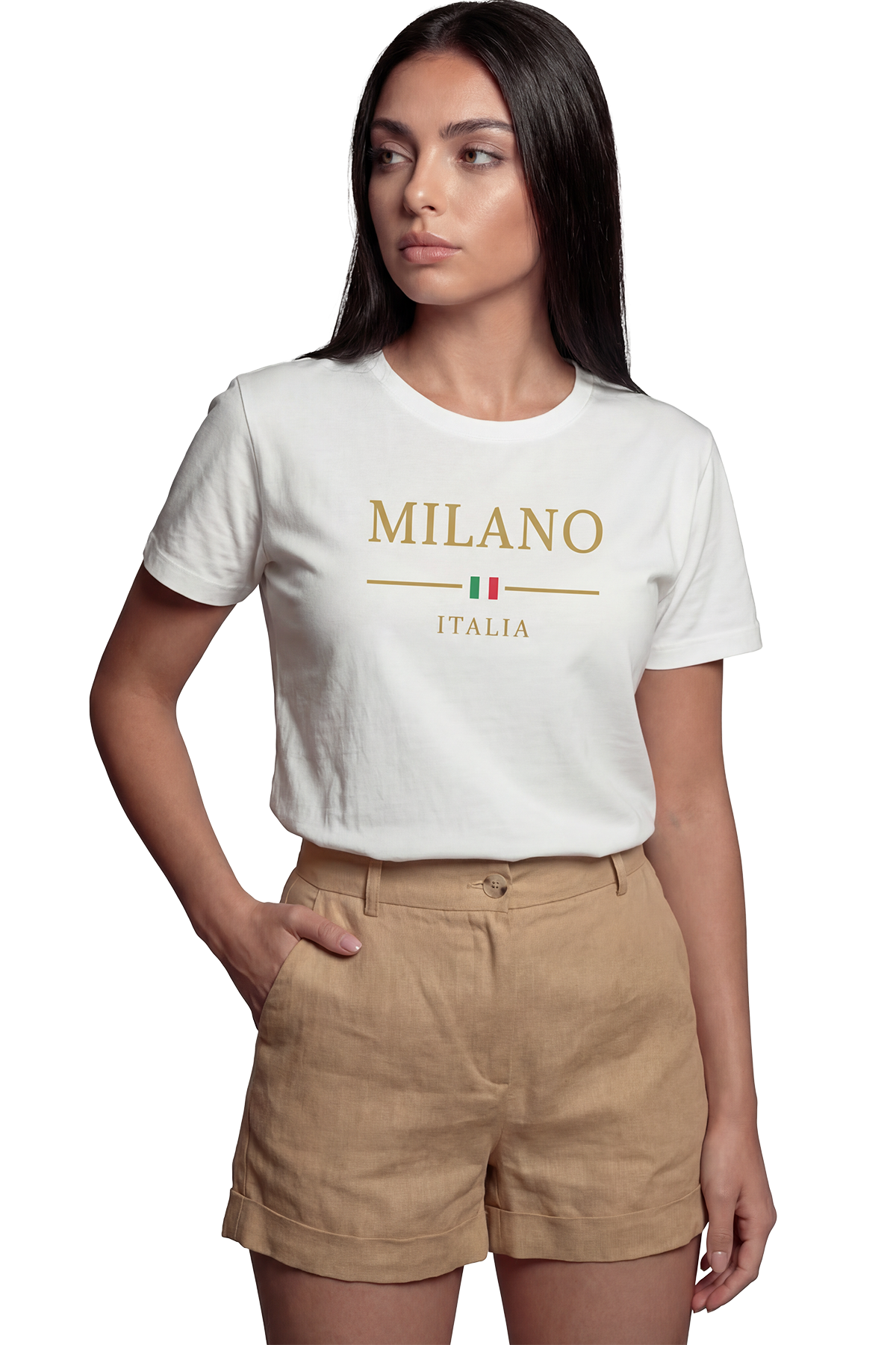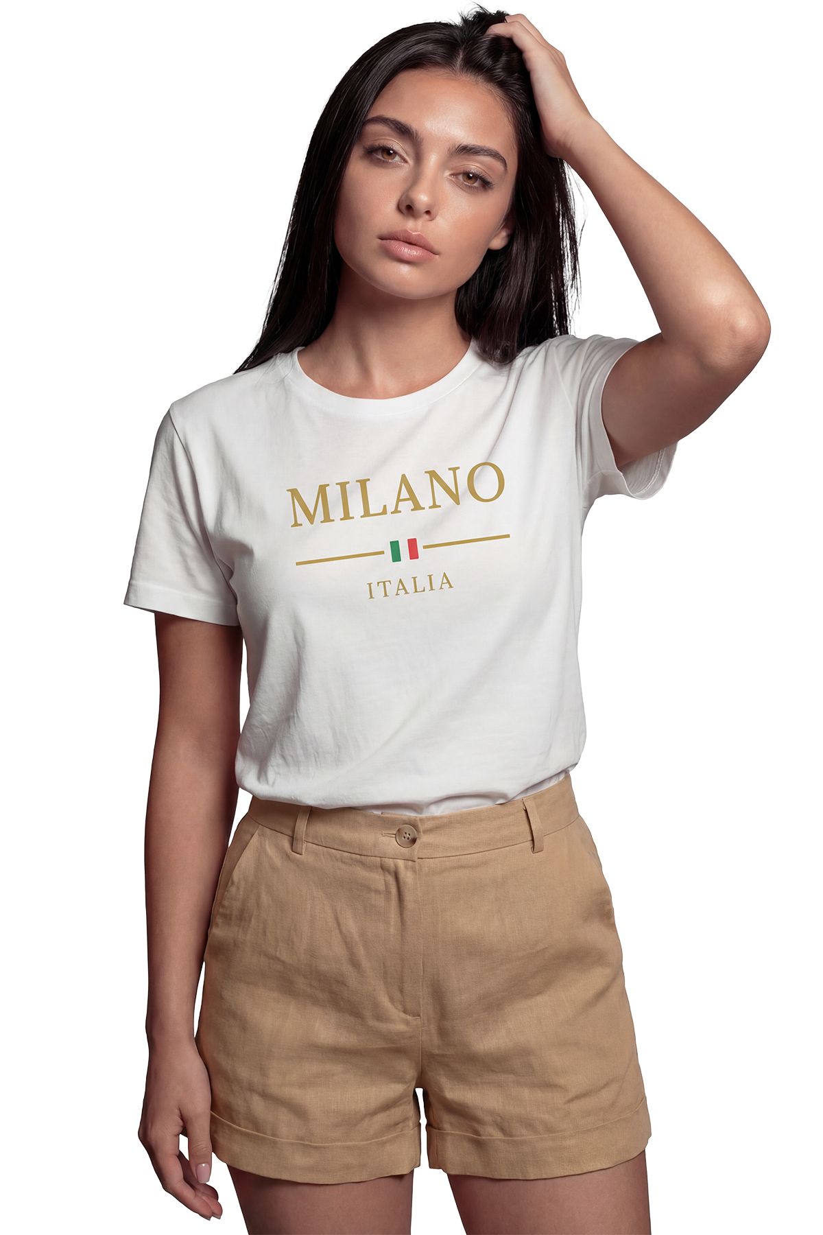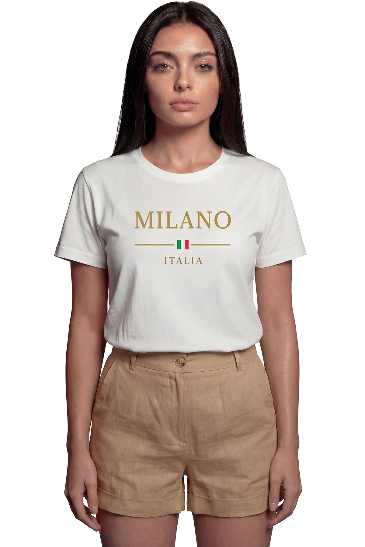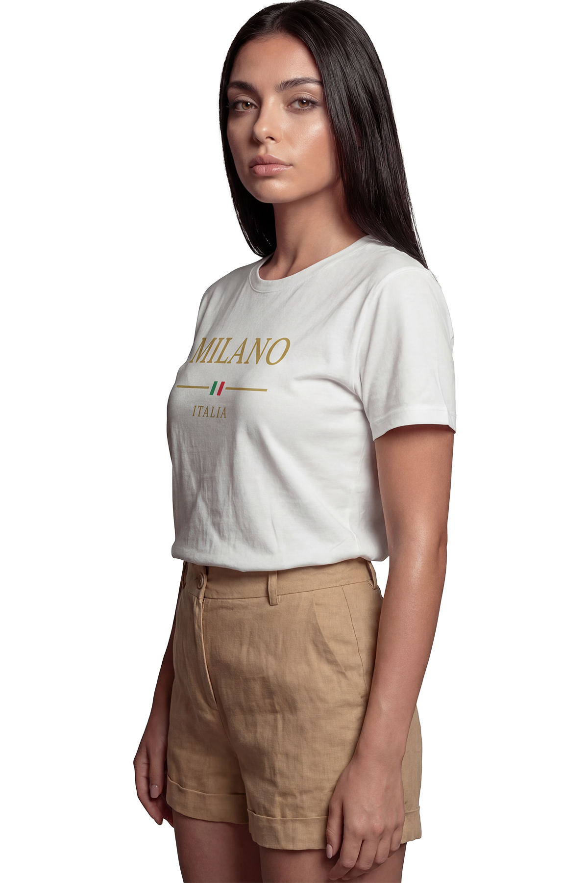 ''Milano Italia'' Gold Yazılı Minimalist Baskılı %100 Pamuk Rahat Kesim Premium Kadın Tişört