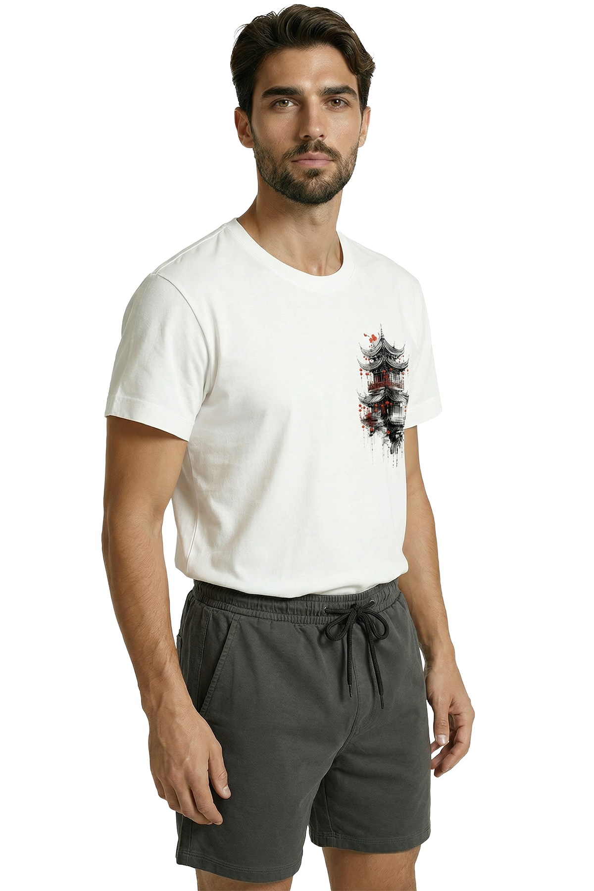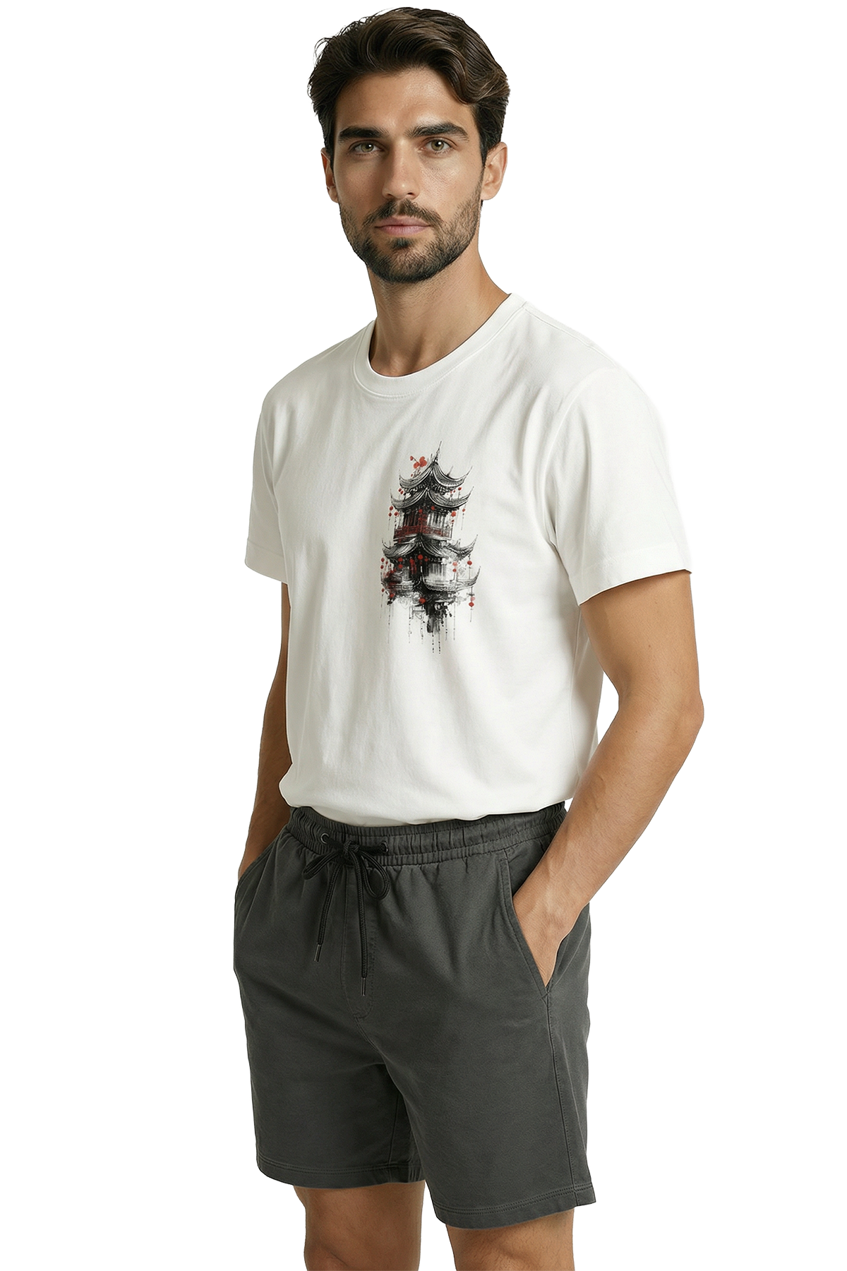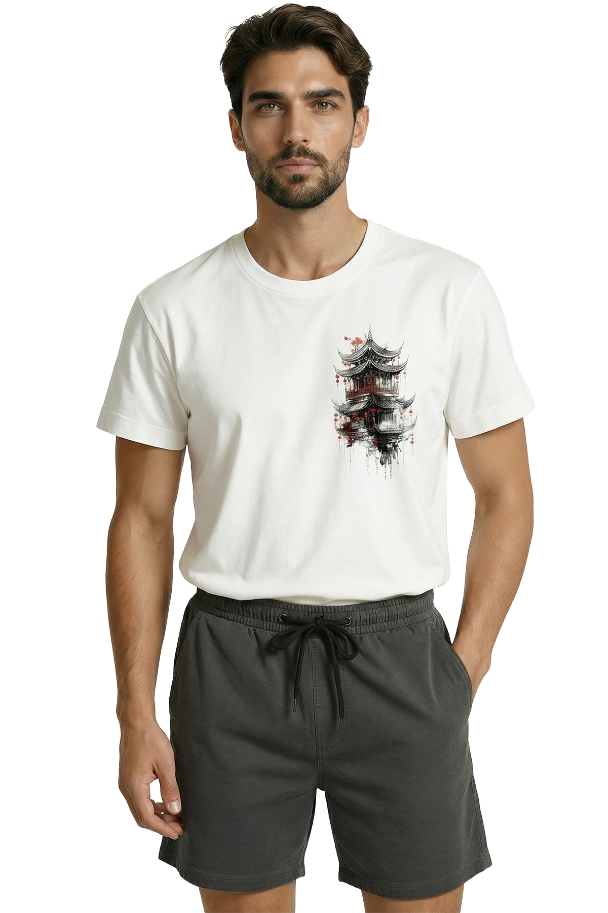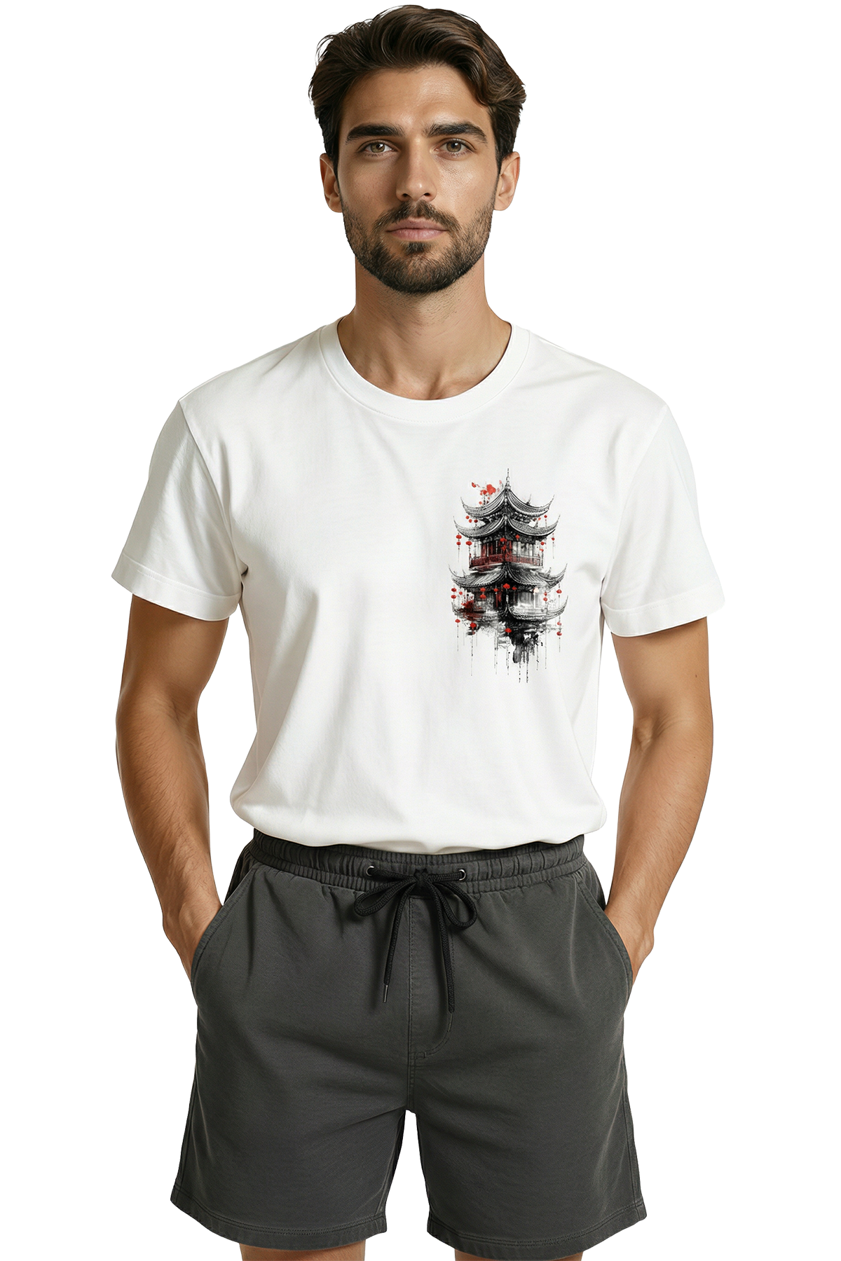 Uzak Doğu’nun binlerce yıllık mistik havasını, mimari zarafetini ve dinginliğini stilinize taşıyın. Geleneksel mürekkep sanatı (Sumi-e) tarzında çizilmiş bu etkileyici Pagoda tasarımı; siyahın asaletini, şansı ve yaşam enerjisini simgeleyen kırmızı fener detaylarıyla buluşturuyor. Hem ruhani bir derinlik arayanlar hem de estetik ve kültürel tasarımları seven erkekler için, felsefesi olan şık bir parça.