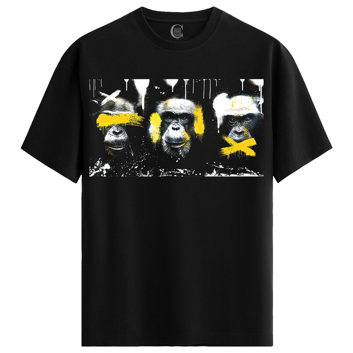 Monkey Graffiti - %100 Pamuklu Kadın Siyah Tişört - Premium Quality