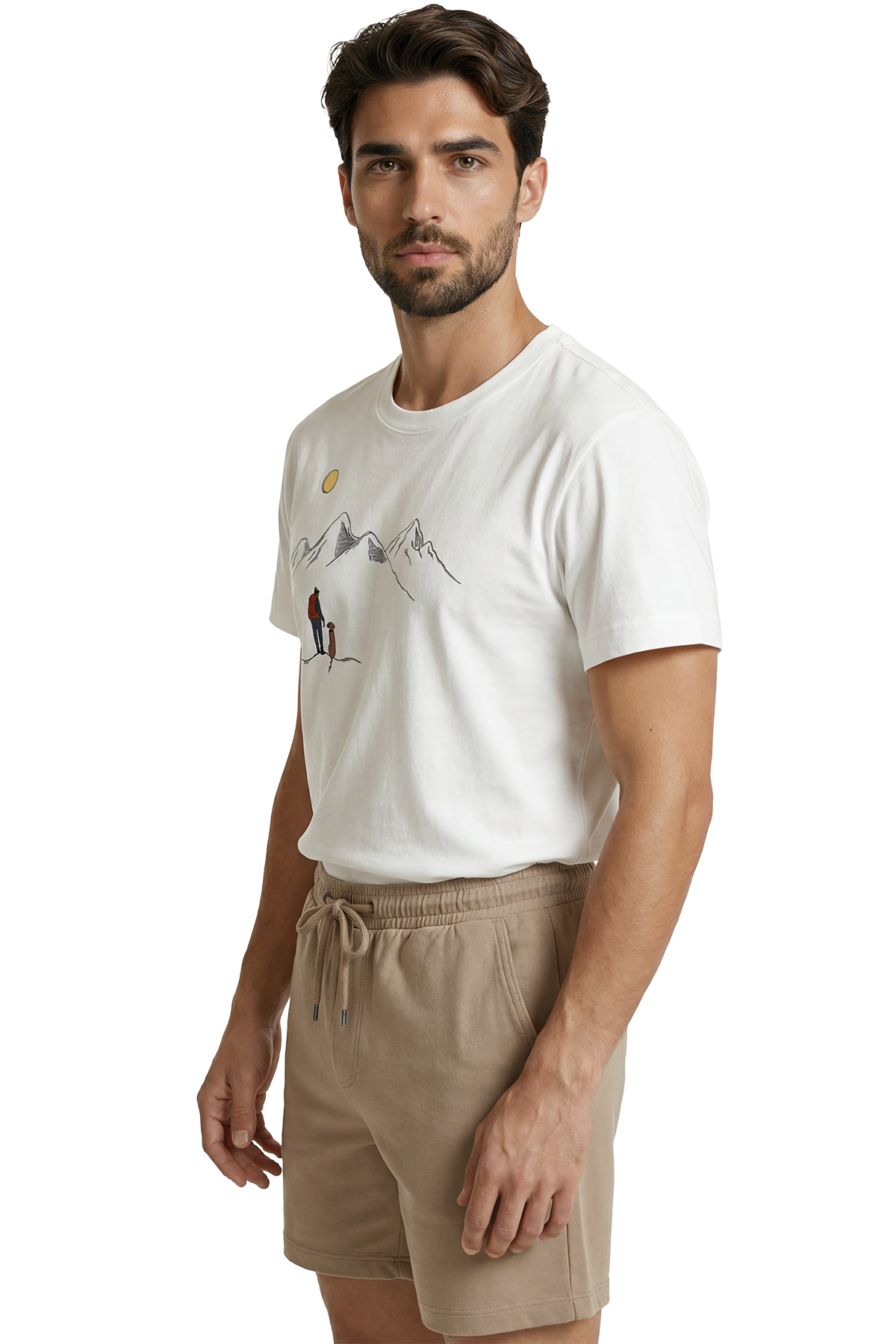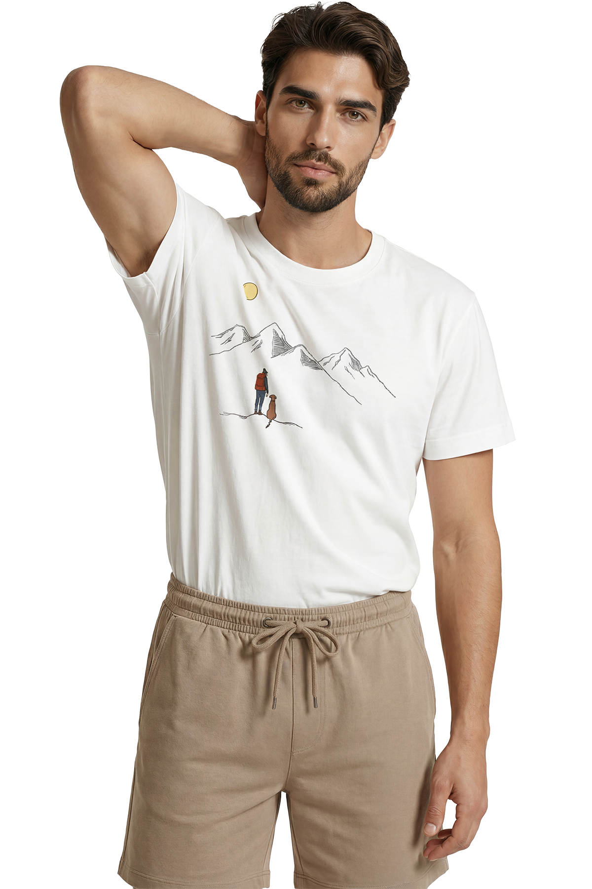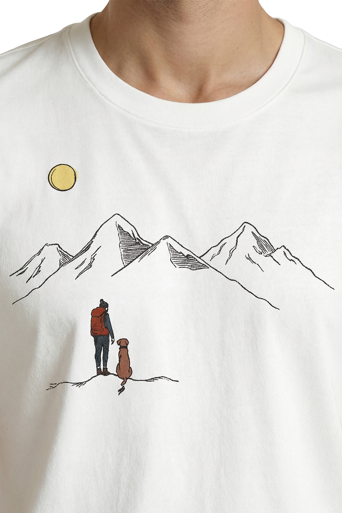 Gezgin ve Sadık Dostu Köpek Dağ Manzaralı Minimalist Tasarım Premium Erkek Tişört