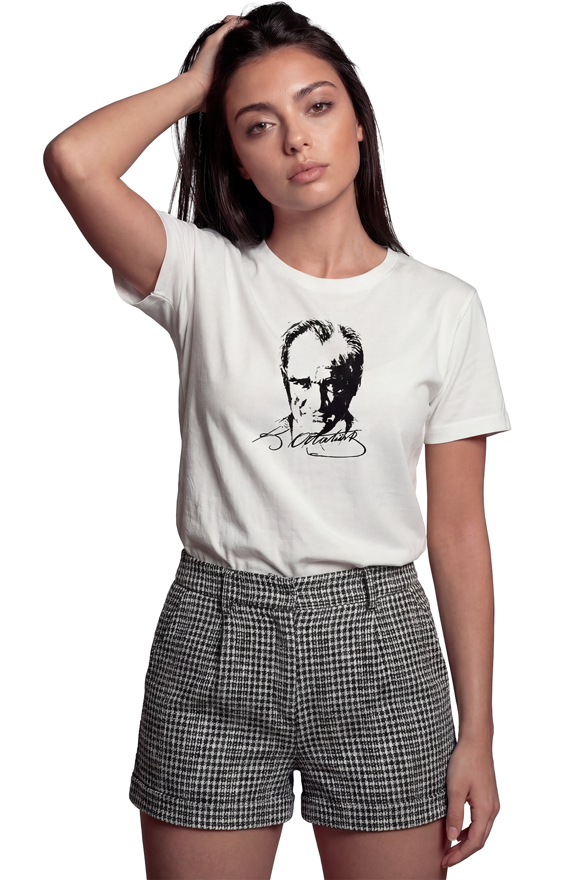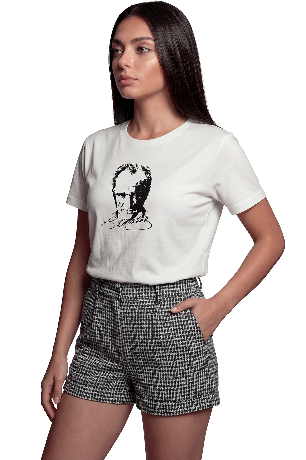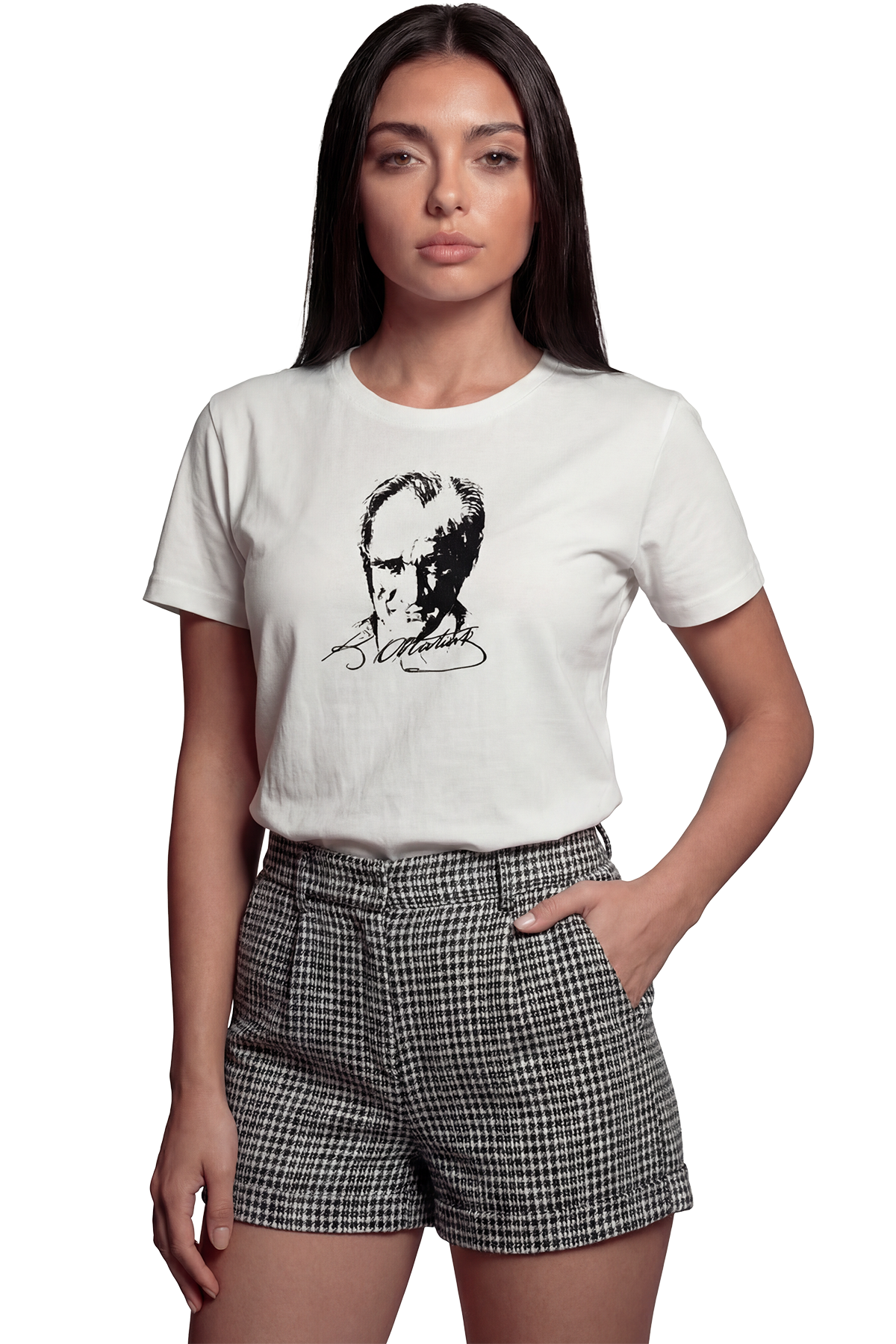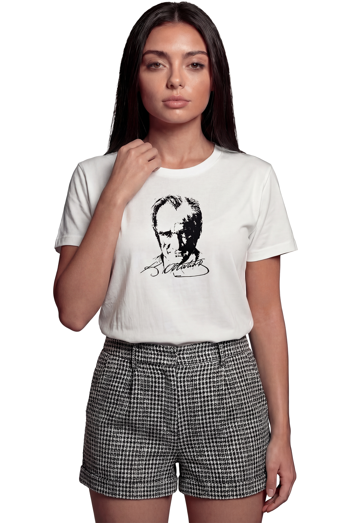 ''Mustafa Kemal Atatürk'' İmzalı Silüet Baskılı %100 Pamuk Rahat Kesim Premium Kadın Tişört