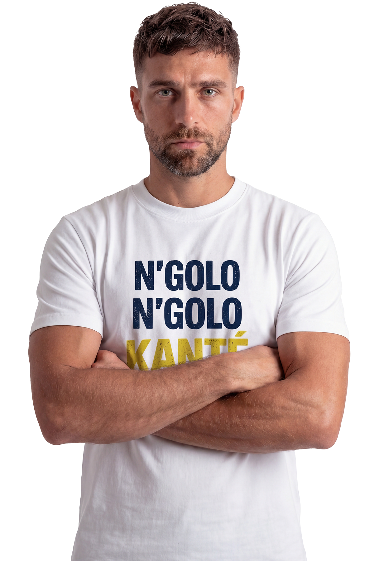 Tribünlerin Sesi: Efsane Tezahürat Futbol dünyasının en sevilen isimlerinden N'Golo Kanté için bestelenen ve tüm dünyada yankılanan o meşhur tezahüratı üzerinizde taşıyın! "N'GOLO N'GOLO KANTÉ" şeklindeki tekrarlı tipografik tasarım, tribünlerin coşkusunu ve ritmini yansıtıyor. Lacivert ve sarı renklerin uyumu, eskitme (grunge) dokulu baskı stiliyle birleşerek hem sportif hem de sokak modasına uygun, vintage bir hava katıyor.