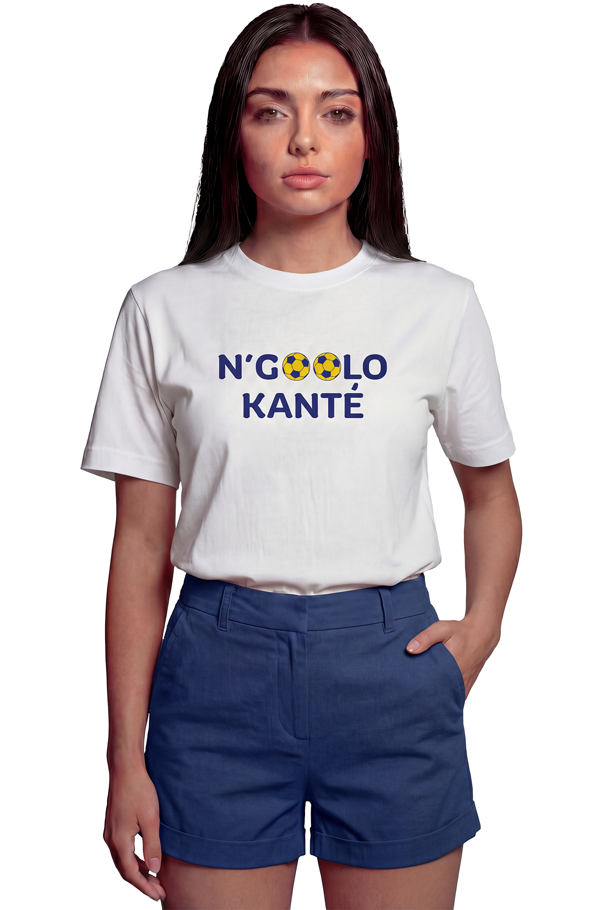 Orta Sahanın Dinamosu: Enerji ve Tutku Futbol dünyasının en sevilen, çalışkan ve sempatik yıldızına eğlenceli bir gönderme! "N'GOOLO KANTÉ" yazısındaki "OO" harflerinin futbol toplarıyla resmedildiği bu tasarım, oyunun neşesini ve bitmek bilmeyen enerjiyi simgeliyor. Tribün ruhunu günlük şıklıkla birleştirmek isteyen kadınlar için sportif ve dinamik bir parça.