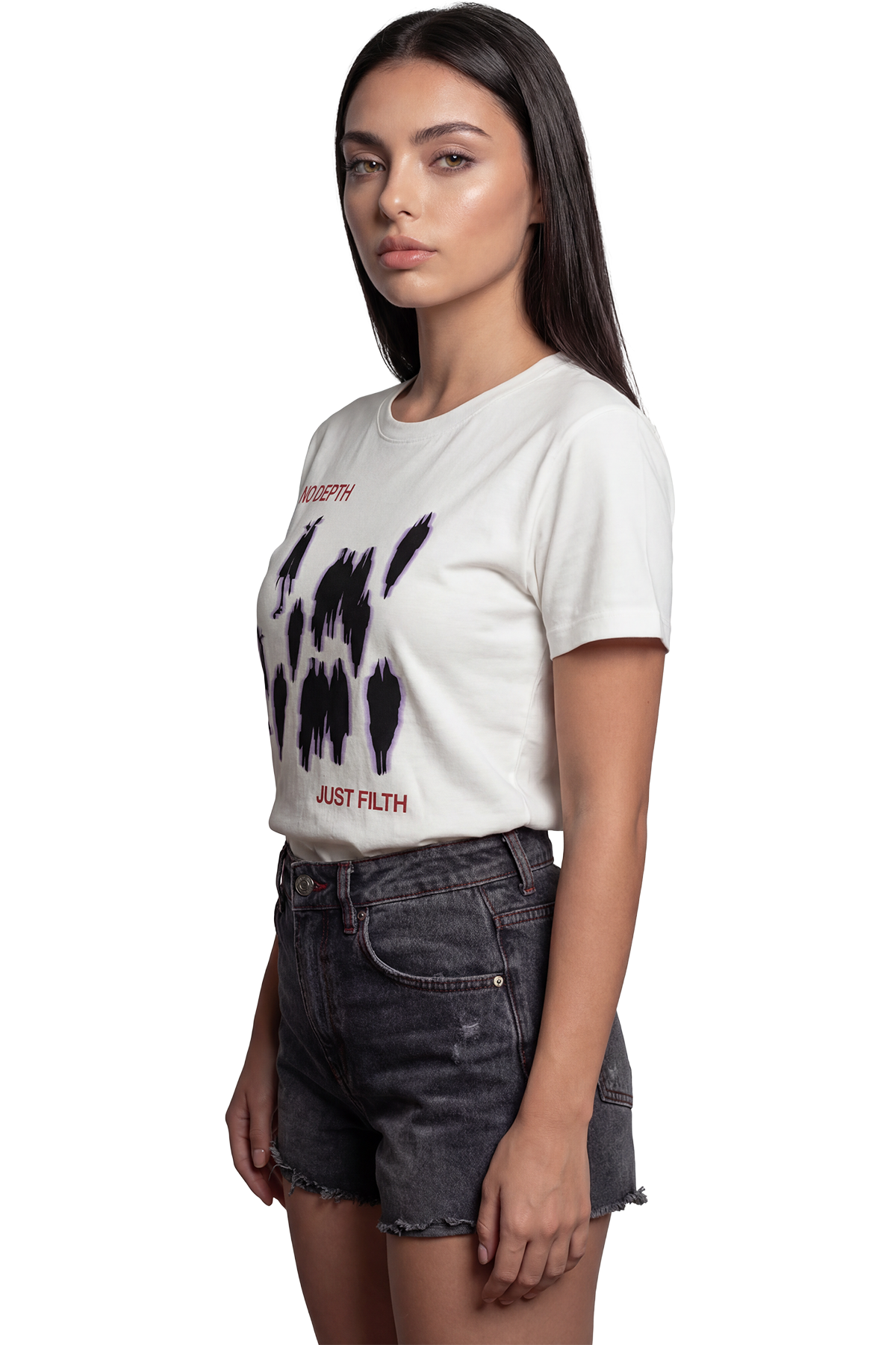 ''No Depth Just Filth'' Yazılı Baskılı %100 Pamuk Rahat Kesim Premium Kadın Tişört