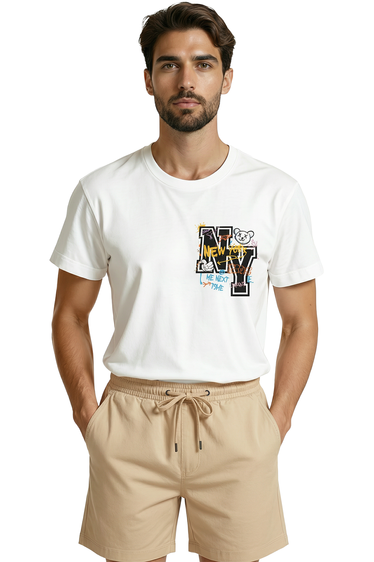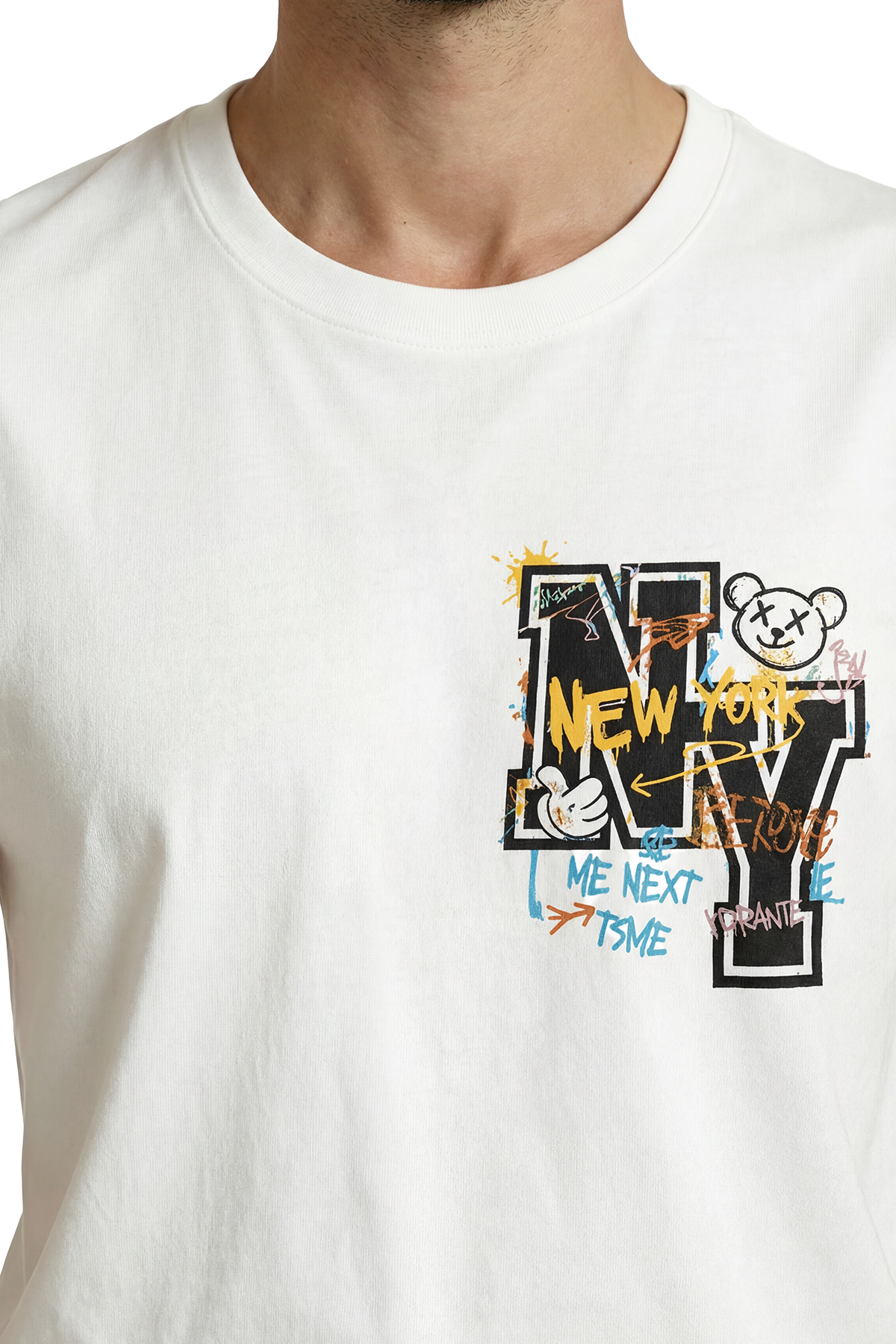 Sanatsal Baskı (DTG): "Yapıştırma" hissi veren naylon baskıları unutun. Kullandığımız son teknoloji DTG (Direct to Garment) yöntemiyle boya, kumaş liflerine işler. Bu sayede, graffiti detaylarının canlı renkleri ve "NY" logosunun netliği kumaşla bütünleşir, baskı hava alır ve plastik hissi vermez.