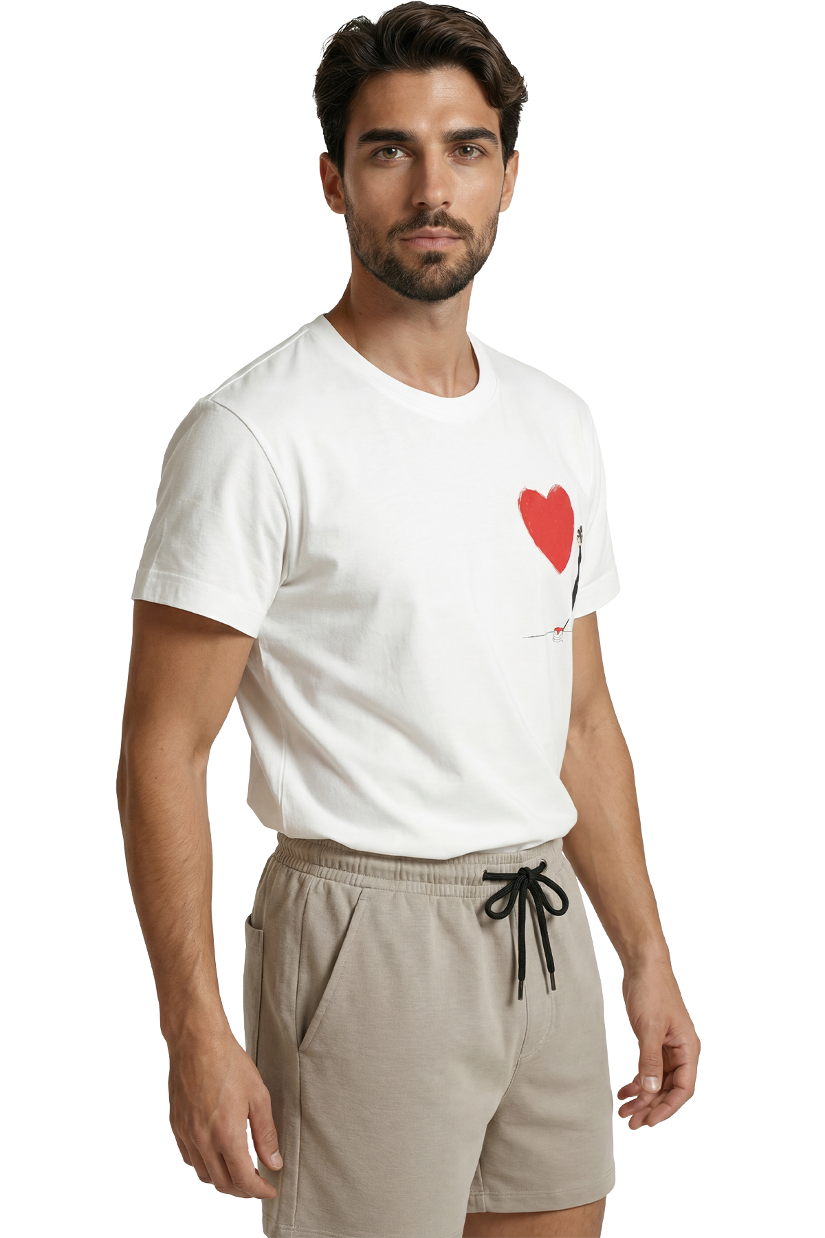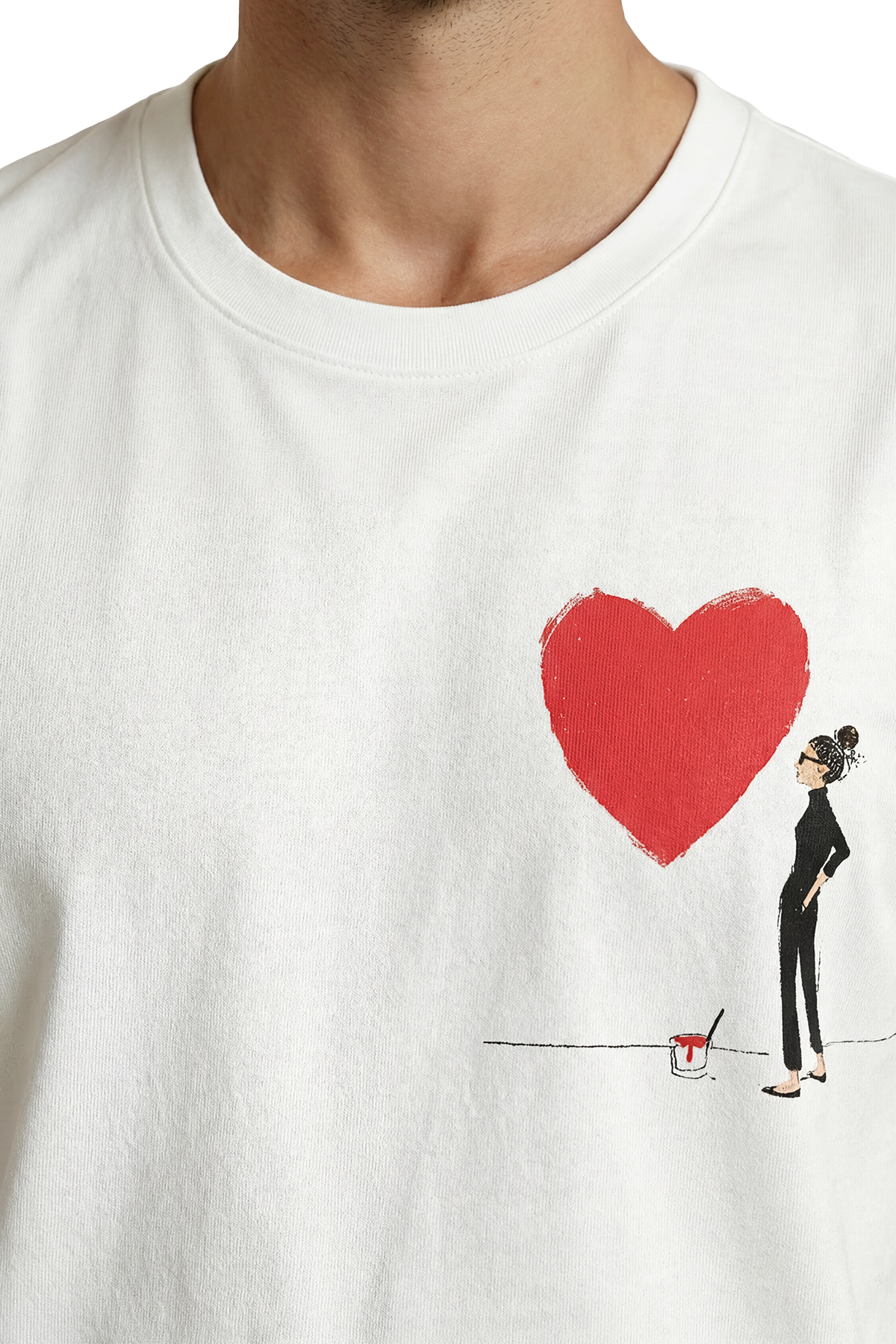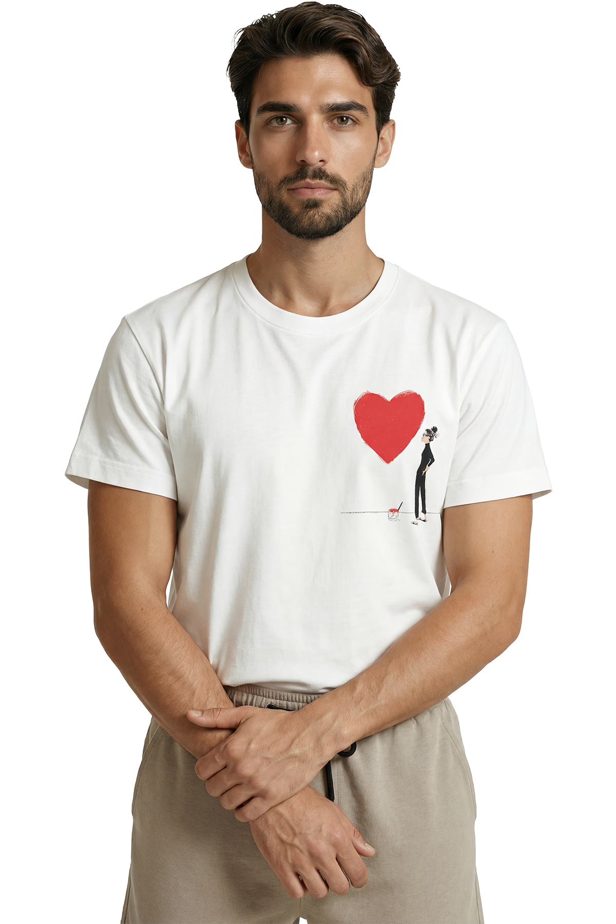 Sanatsal Kırmızı Kalp Çizen Figür Minimalist Baskılı Premium Erkek Tişört