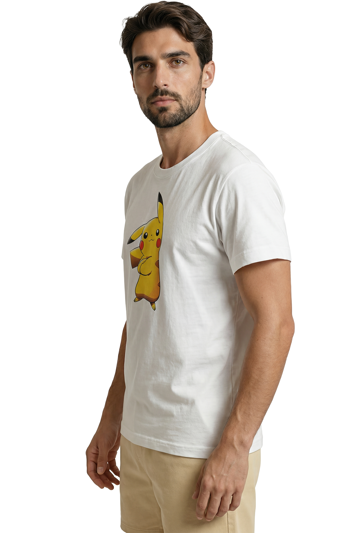 Kolları Bağlı Havalı Pikachu Baskılı Anime Temalı Premium Erkek Tişört