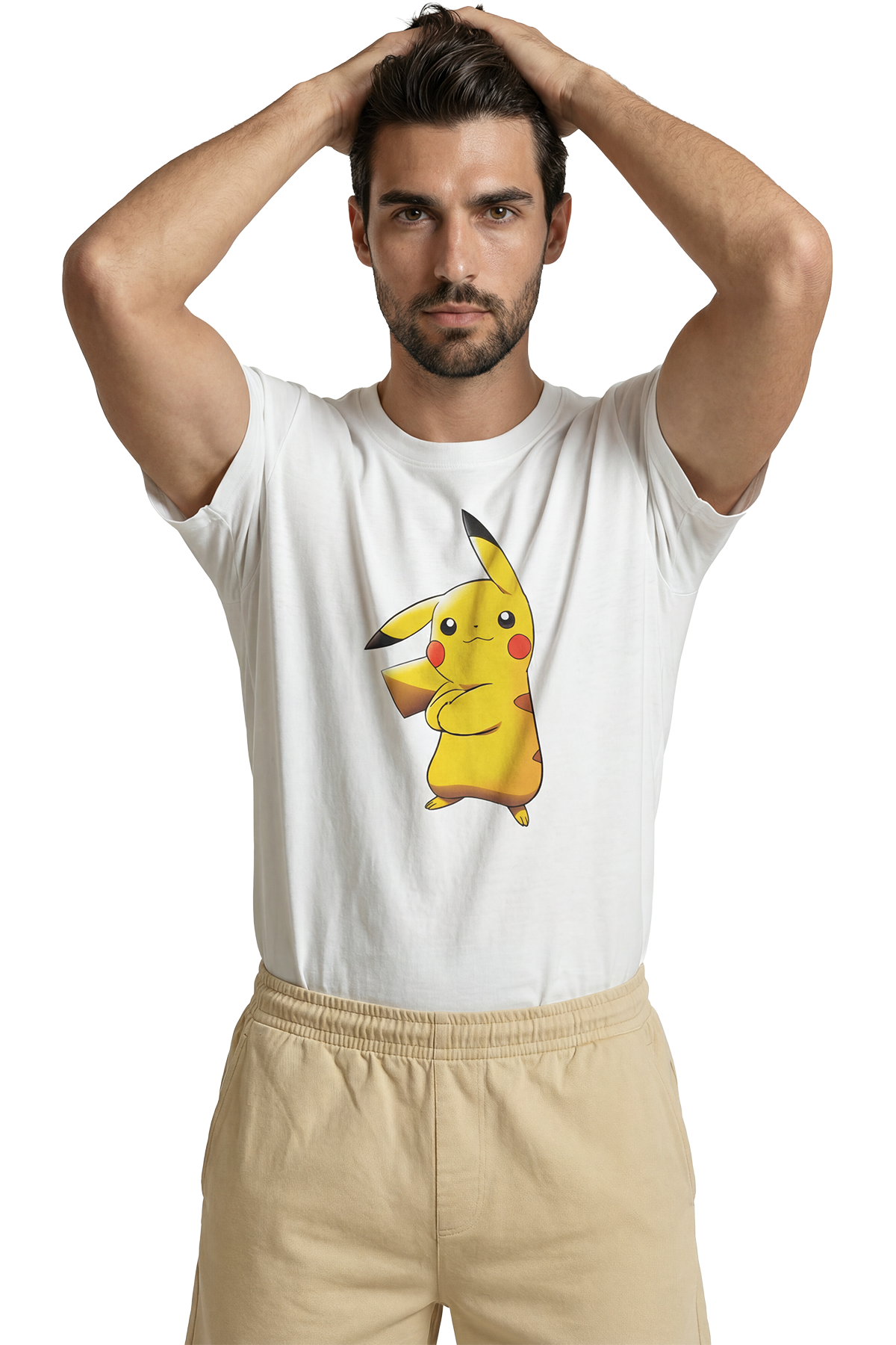 Çocukluğumuzun kahramanı, anime dünyasının en ikonik yüzü Pikachu; bu kez en karizmatik haliyle karşınızda! Kollarını bağlamış, kendine güvenen ve "cool" bir duruş sergileyen bu tasarım; 90'lar ruhunu ve anime tutkusunu modern bir stille birleştiriyor. Canlı sarı rengi ve detaylı gölgelendirmeleriyle dikkat çeken bu tişört; hem gamerlar hem de içindeki çocuğu kaybetmeyen stil sahibi erkekler için enerji dolu bir seçenek.