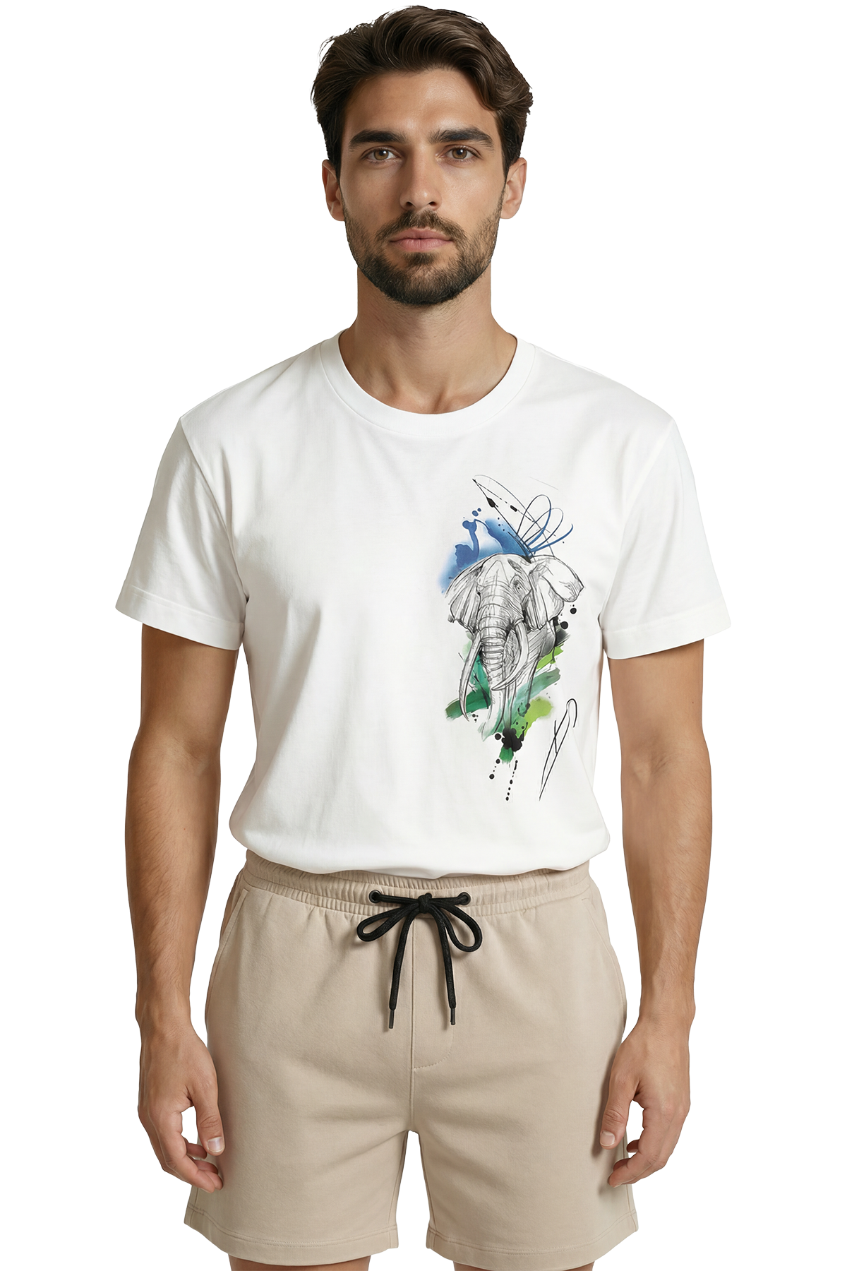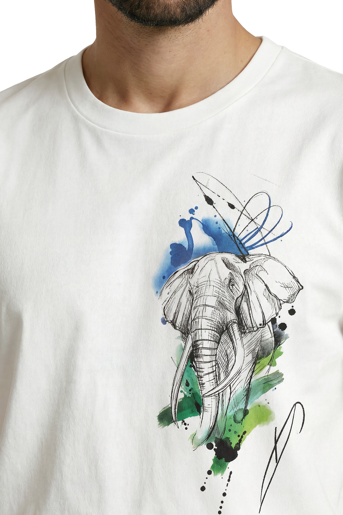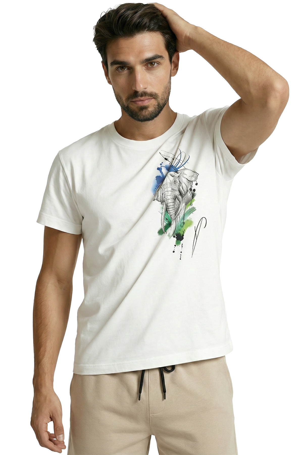 Sanatsal Fil Eskizi ve Sulu Boya Efektli Modern Tasarım Premium Erkek Tişört