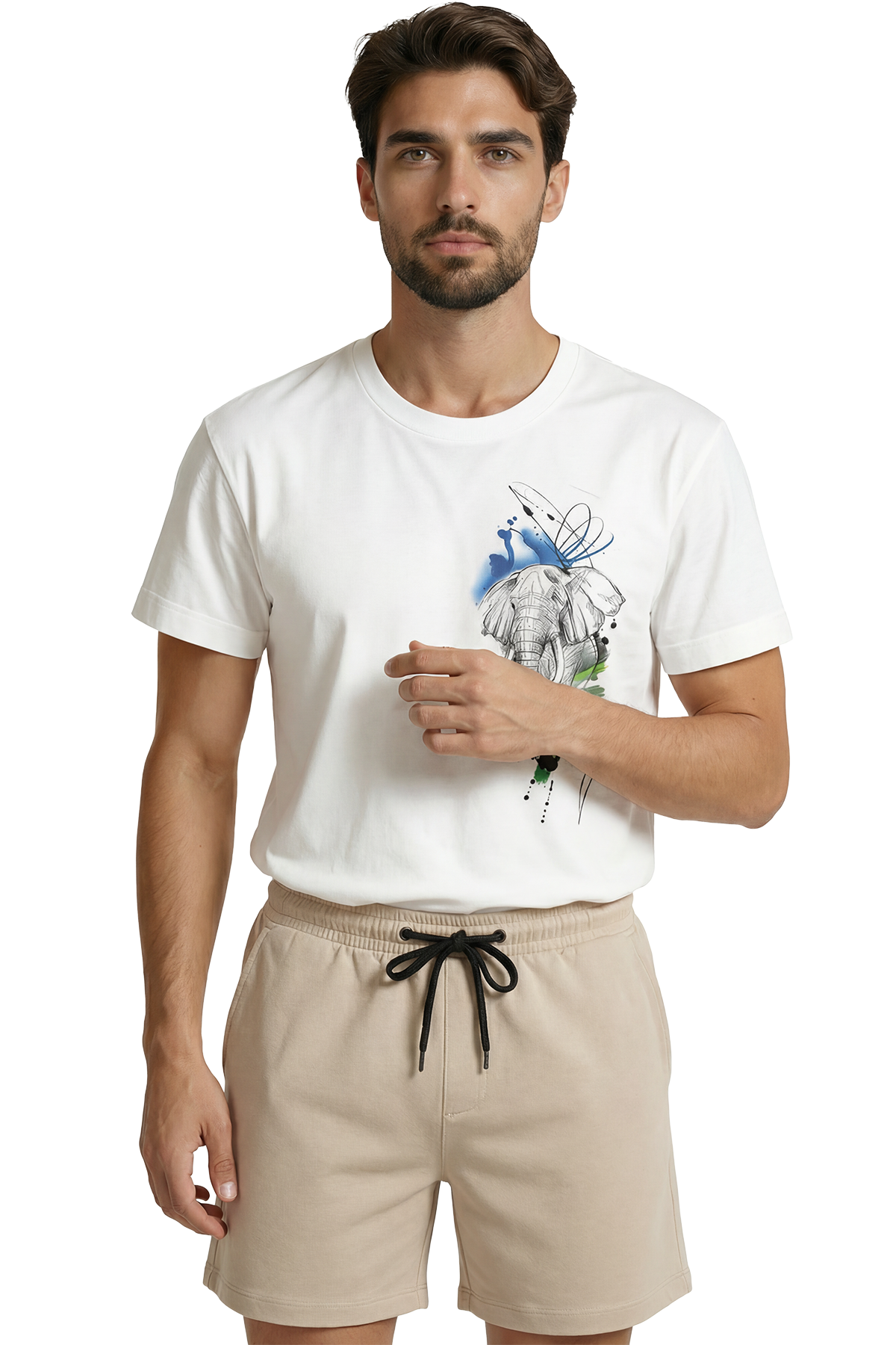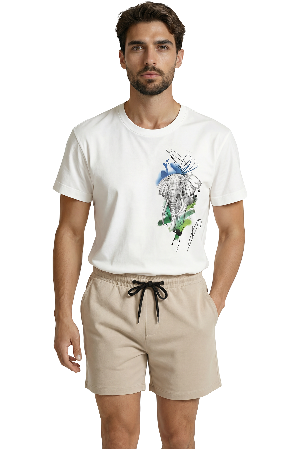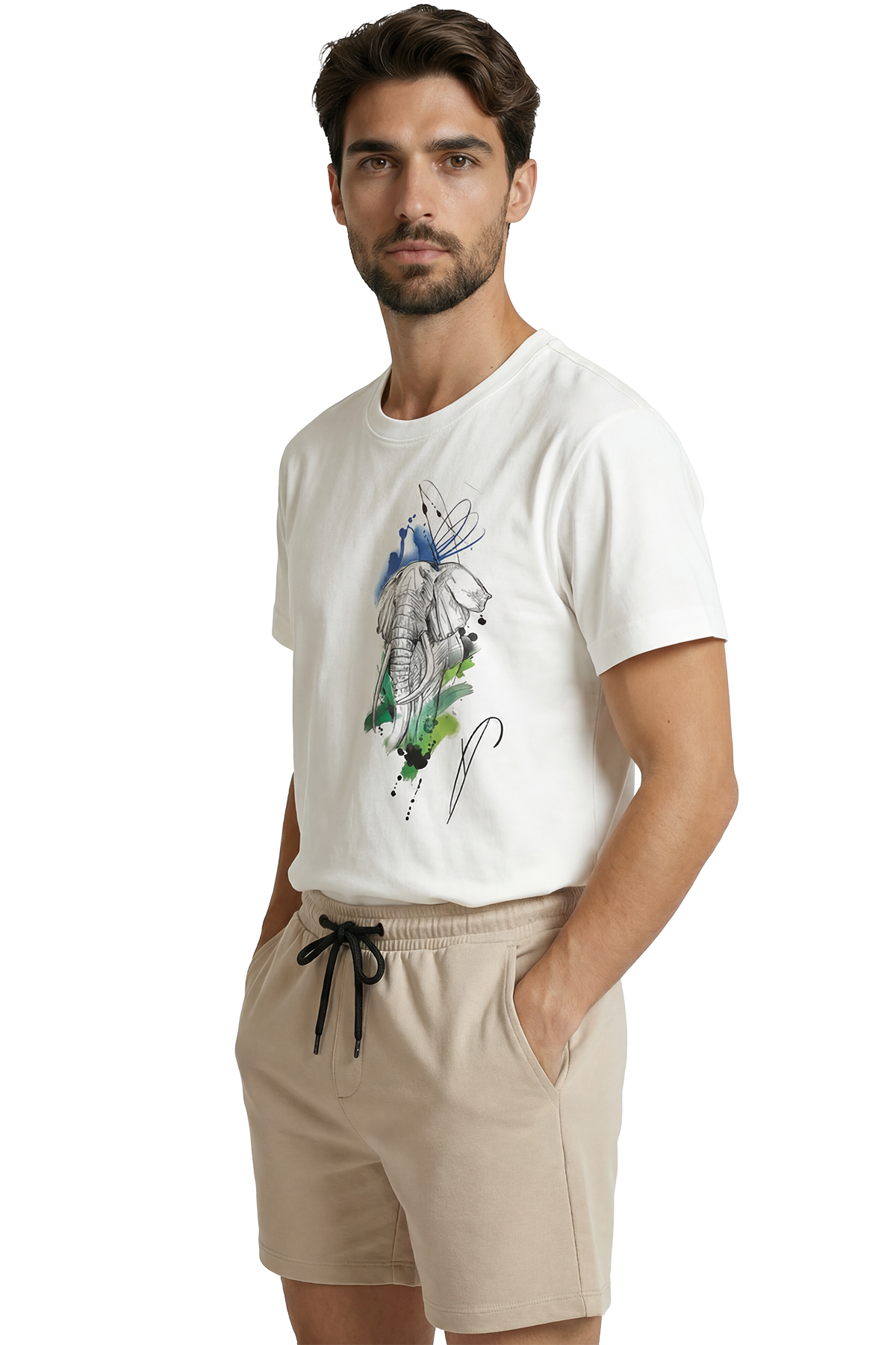 Sanatsal Fil Eskizi ve Sulu Boya Efektli Modern Tasarım Premium Erkek Tişört