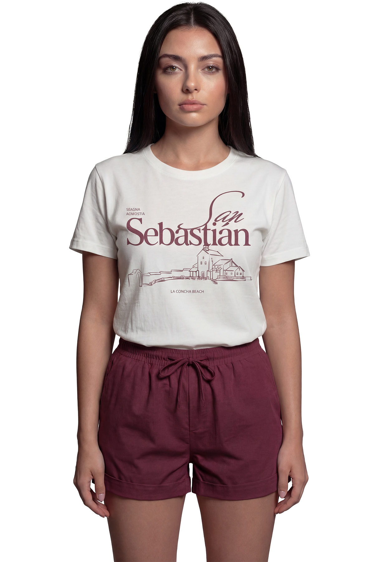 İspanyol Esintisi: Seyahat ve Minimalizm İspanya'nın gözde sahil şehri San Sebastián'a ve ikonik La Concha Plajı'na ithafen tasarlanan bu tişört, zarif çizimler ve dikkat çekici tipografiyle şehir ruhunu yansıtıyor. Seyahat tutkunları ve minimalist, vintage poster estetiğini sevenler için mükemmel bir parça.