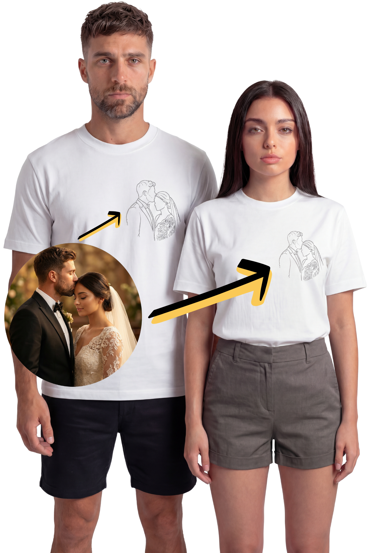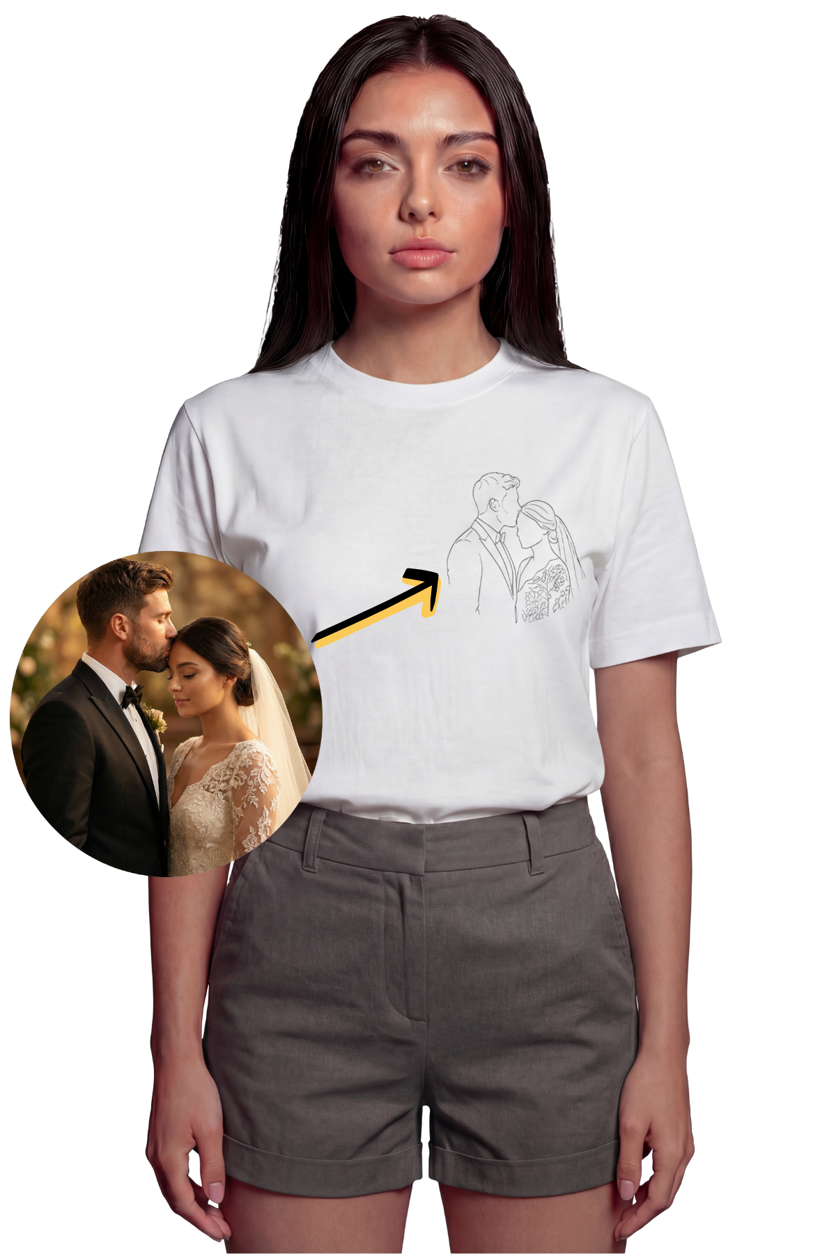 En Güzel Anınız Kalbinizin Üzerinde: Eşsiz ve Romantik Bu Sevgililer Günü'nde sıradan hediyelerin ötesine geçin! En sevdiğiniz fotoğrafınızı, minimalist ve sanatsal bir Line Art (Çizgi Sanatı) tasarımına dönüştürüyoruz. Düğün fotoğrafınız, ilk tatiliniz ya da en özel anınız; usta ellerde çizilerek tişörtünüzün üzerinde ölümsüzleşiyor. Sadece size özel, duygusal değeri yüksek ve sanat eseri niteliğinde bir hediye.