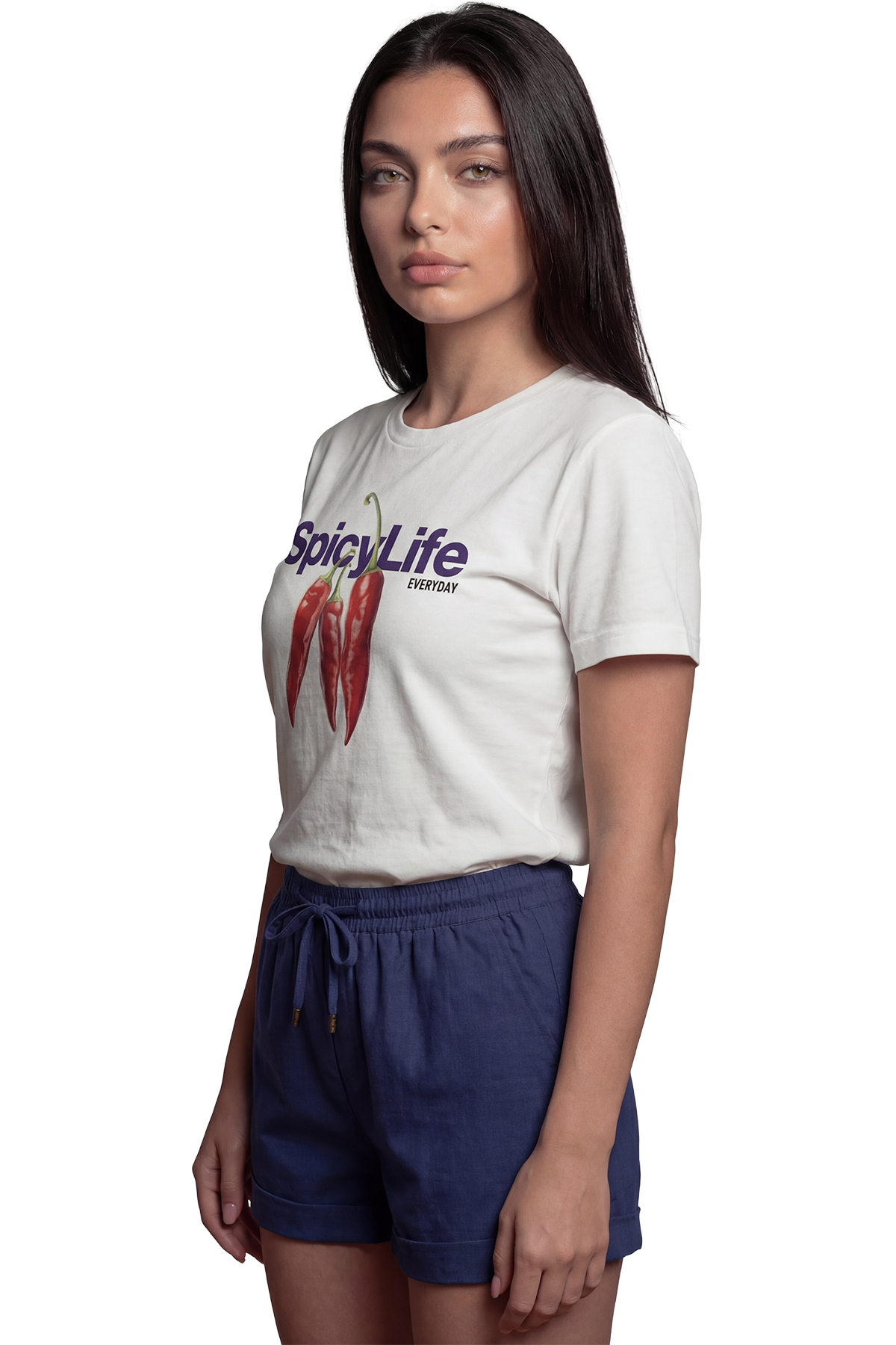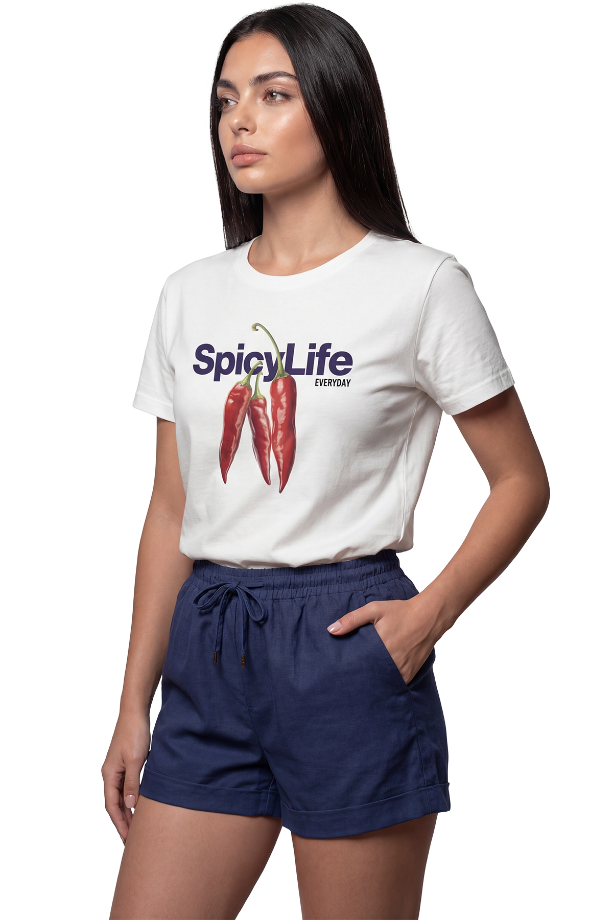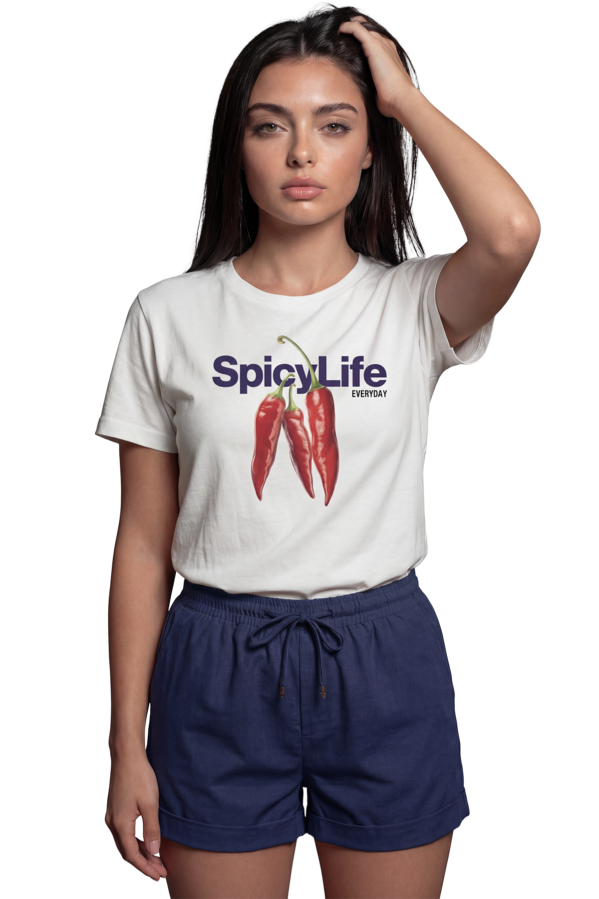 ''Spicy Life'' Biber İllüstrasyonlu Baskılı %100 Pamuk Rahat Kesim Premium Kadın Tişört