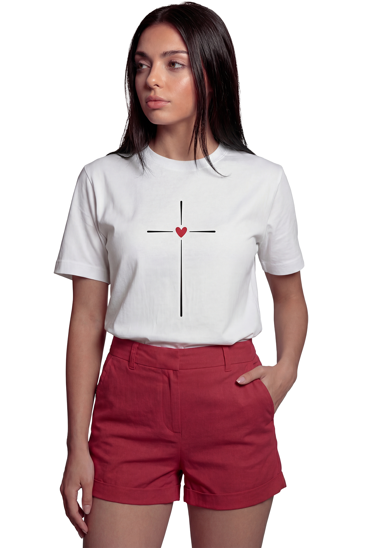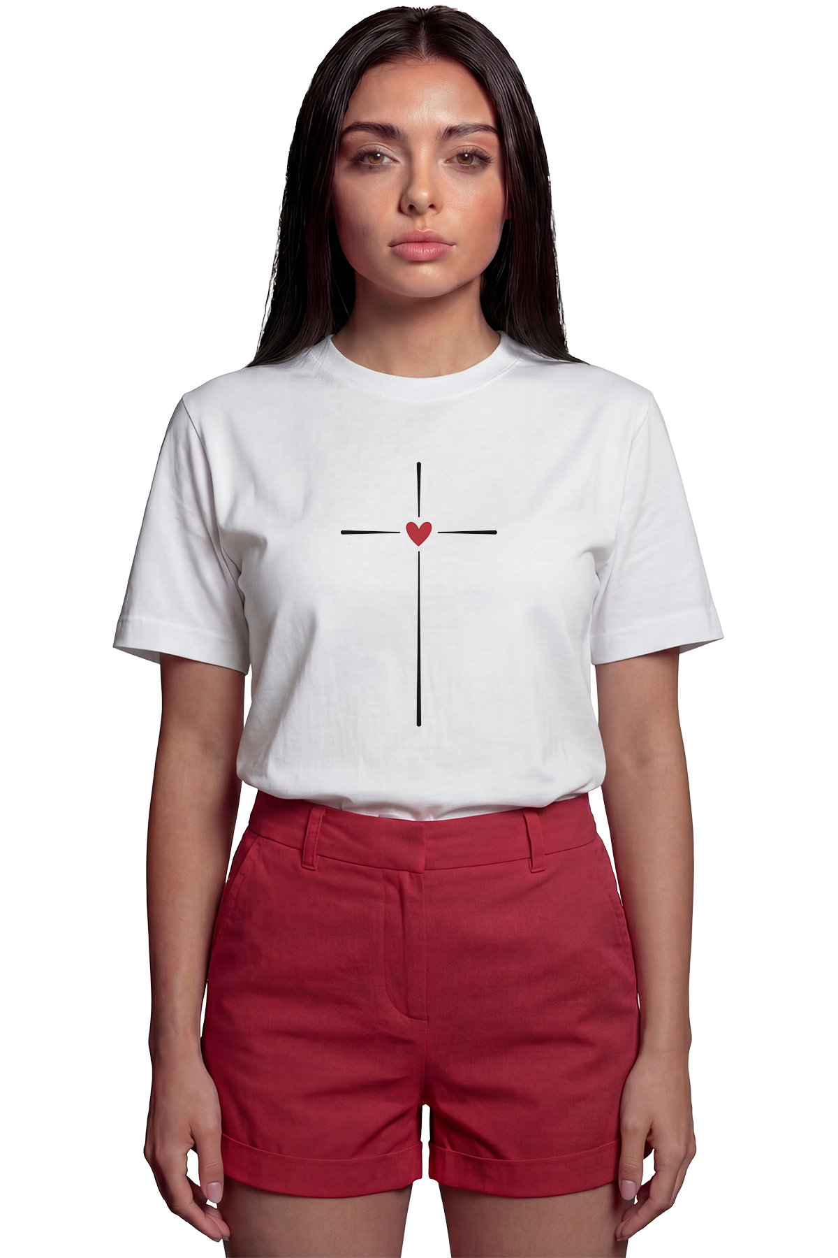 Nefes Alan Teknoloji: Tasarım, DTG (Direct to Garment) teknolojisiyle uygulanmıştır. Siyah hedef çizgileri ve canlı kırmızı kalp detayı kumaşla bütünleşir, plastik hissi vermez ve hava alır.