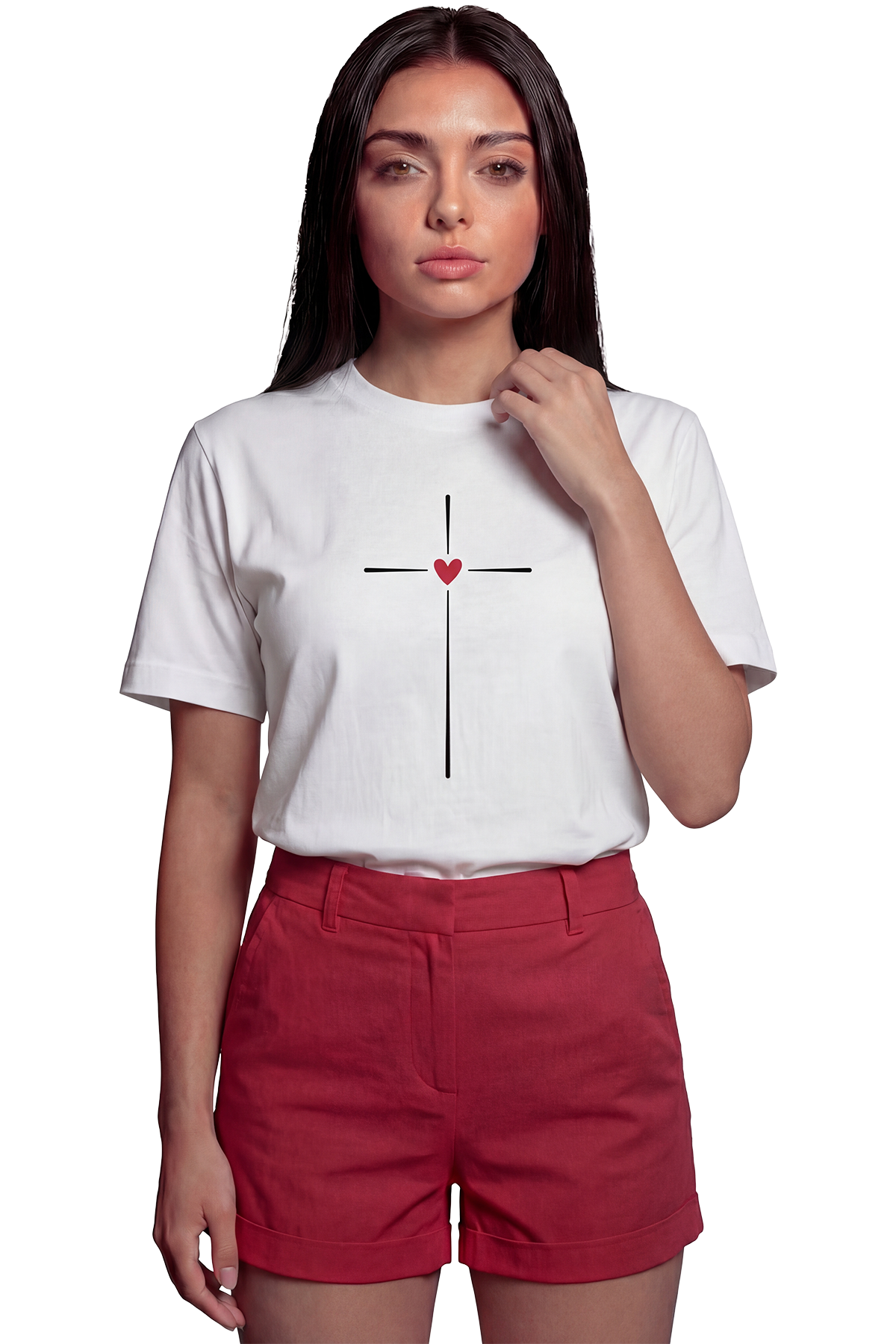 ''Target Love'' Hedef ve Kalp Baskılı %100 Pamuk Rahat Kesim Premium Kadın Tişört