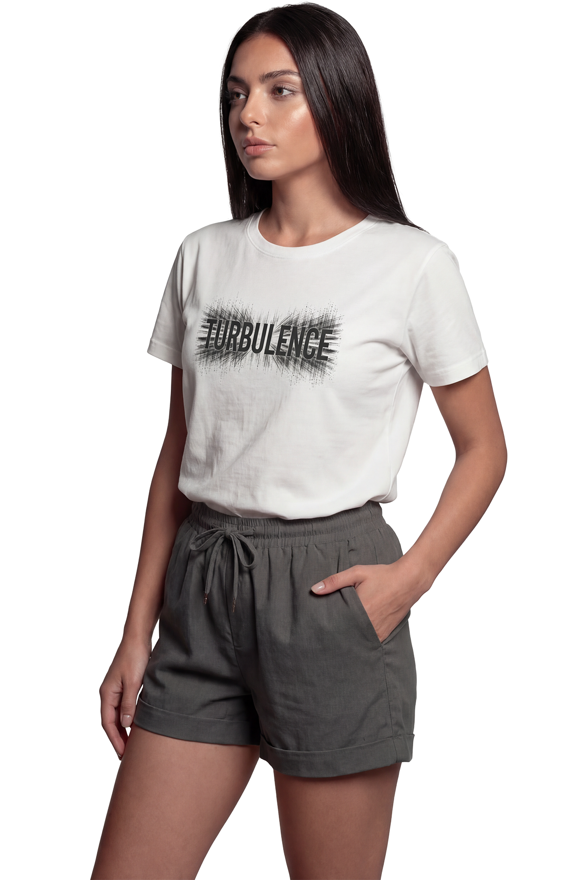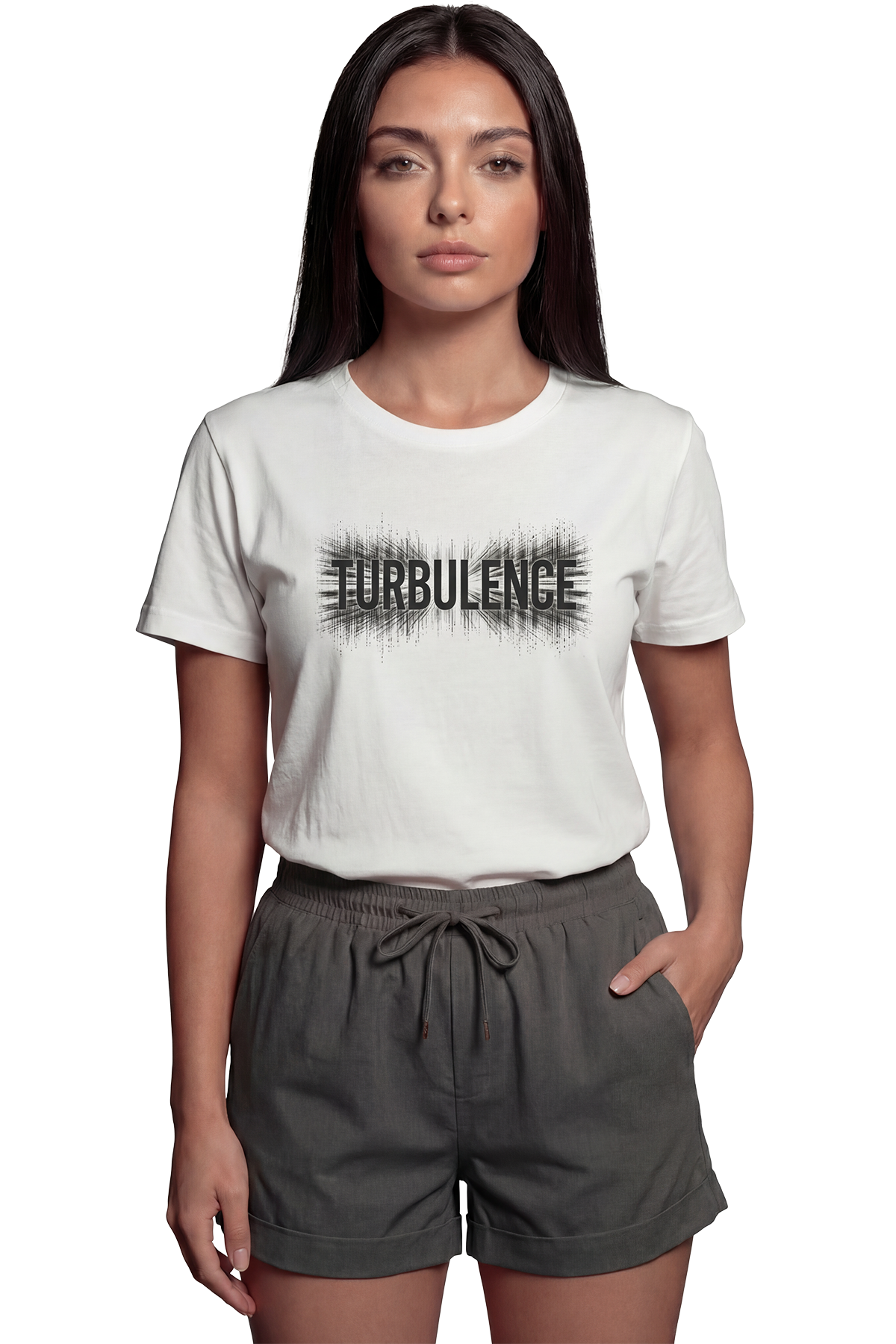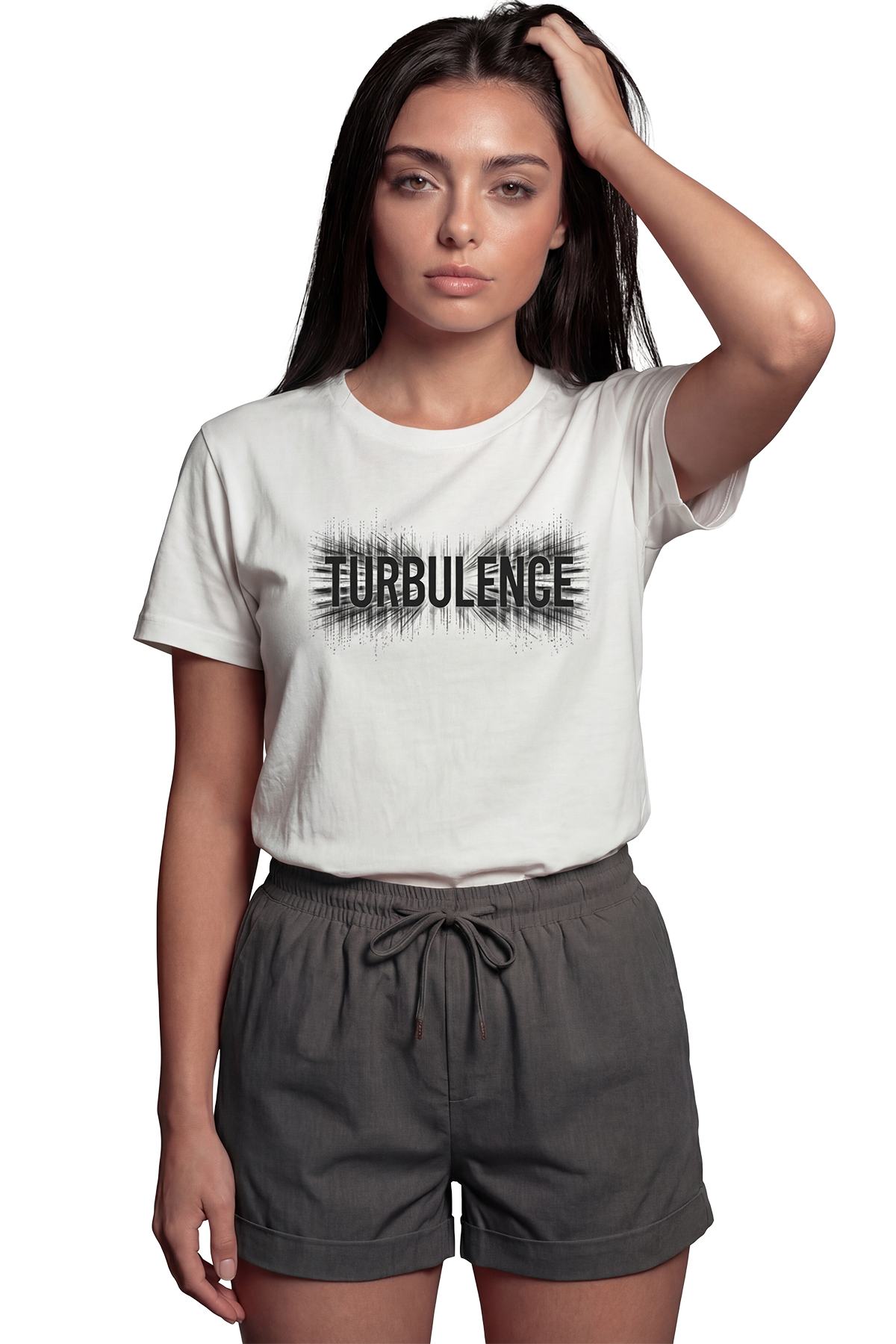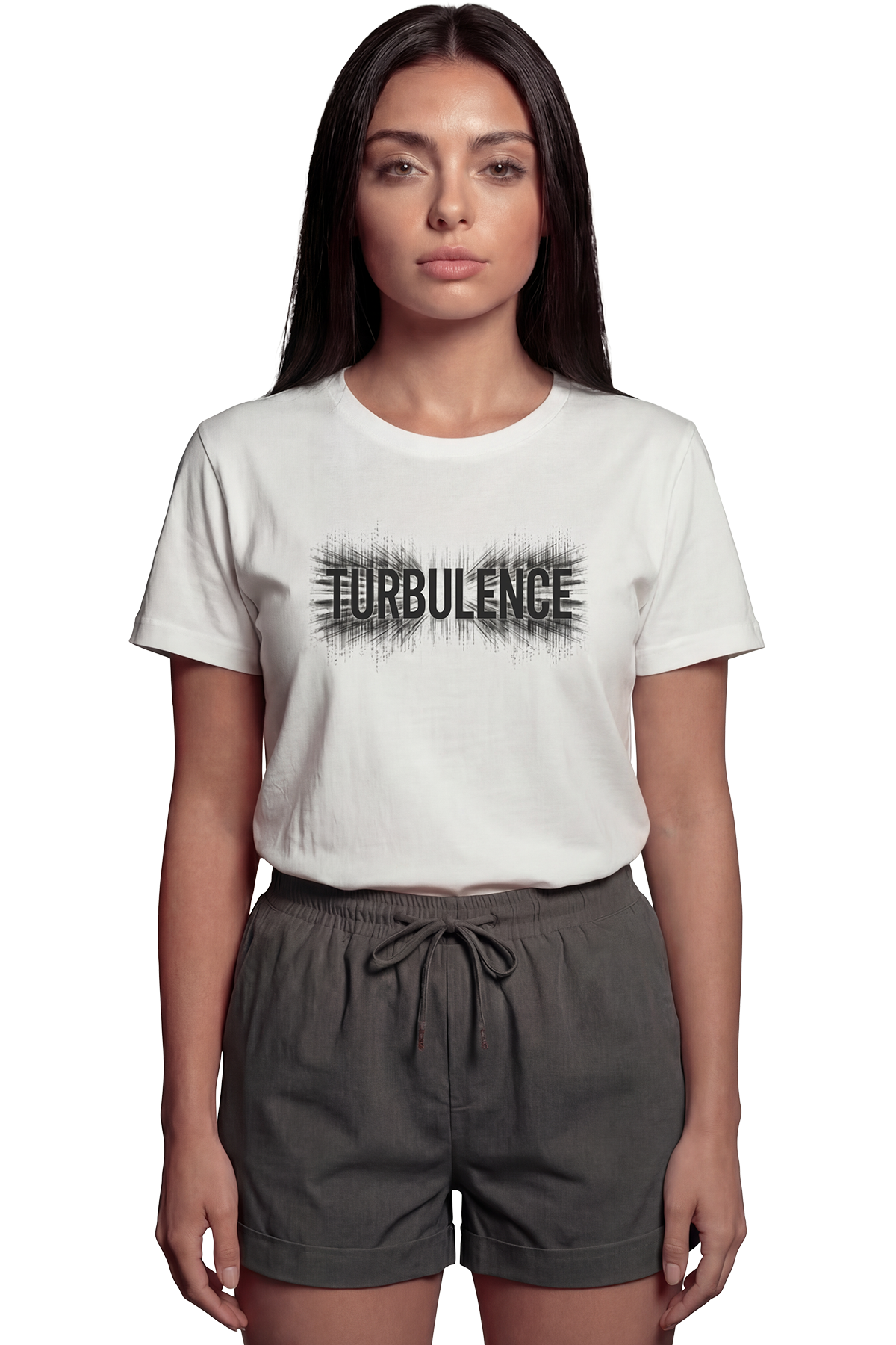 ''Turbulence'' Grafik Yazı Baskılı %100 Pamuk Rahat Kesim Premium Kadın Tişört
